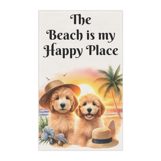 Doodle Puppies Beach is my Happy Place Kitchen Towel