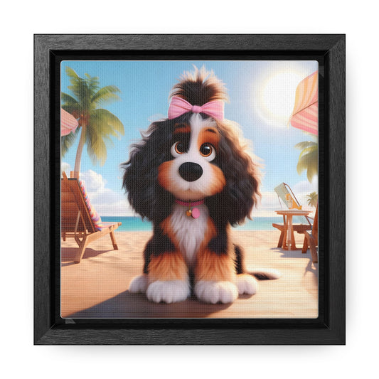 Bernedoodle Puppy, Cartoon Inspired - Wooden Gallery Canvas Picture - Square Frame - Nice!