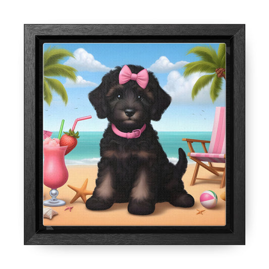 Phantom Doodle on Beach - Wooden Gallery Canvas Picture - Square Frame - Nice!