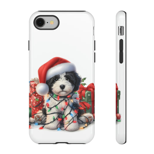 Black & White Doodle Christmas Puppy - Tough Cases for Apple iPhone, Samsung Galaxy, & Google Pixel