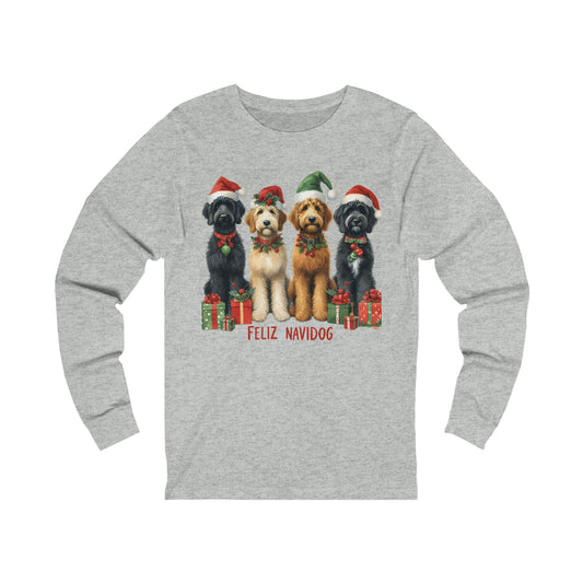 Doodles Feliz Navidog - Unisex Adult Long Sleeve T Shirt - Bella + Canvas