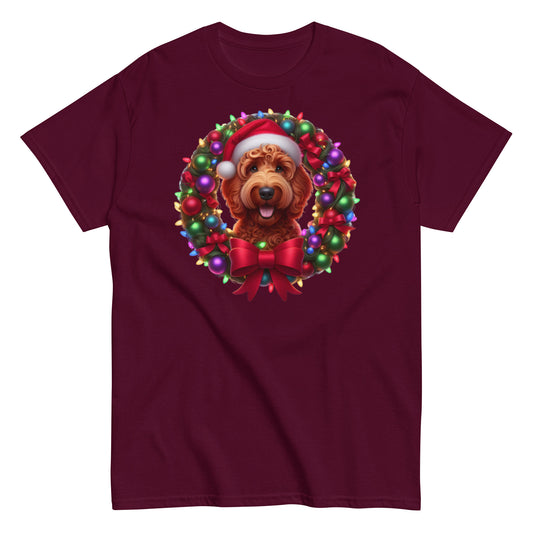 Red Christmas Doodle Wreath - Adult Unisex Classic Gildan T Shirt