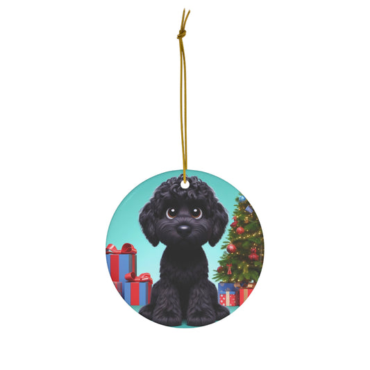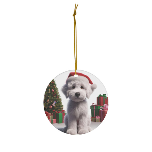 Christmas Doodle Puppy Ceramic Ornament, 4 Shapes