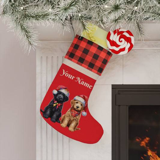 Black Doodle w/Lights Personalized Christmas Stocking