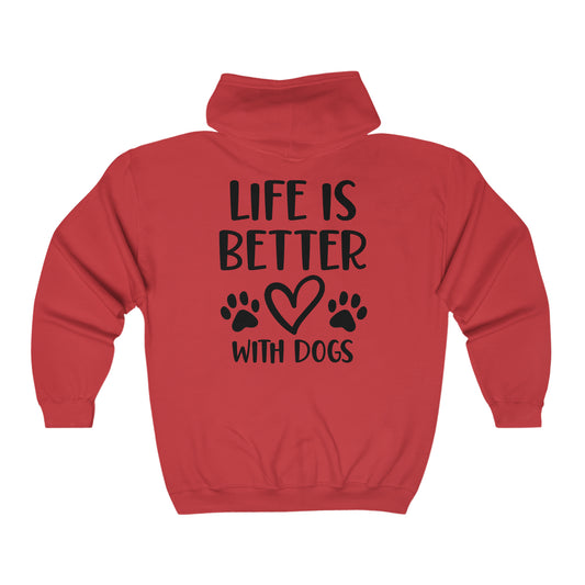Life is Better with Dogs Gildan Unisex Heavy Blend™ Full Zip Hooded Sweatshirt