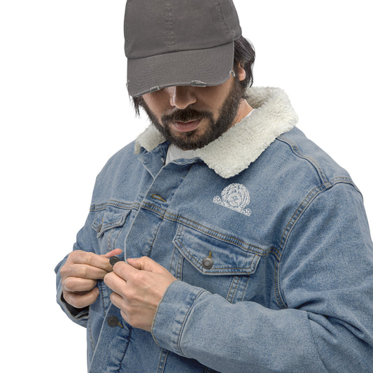 Doodle Embroidered Unisex Denim Sherpa Jacket