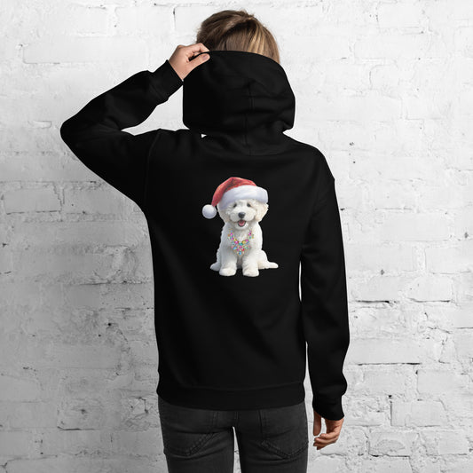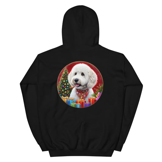White Santa Doodle Puppy Heavy Blend Unisex Hooded Sweatshirt