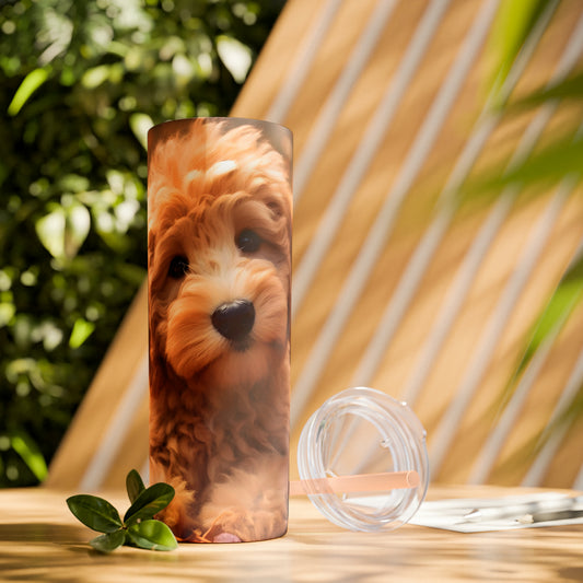 Fall Adorable Doodle Puppy Skinny Tumbler with Straw, 20oz