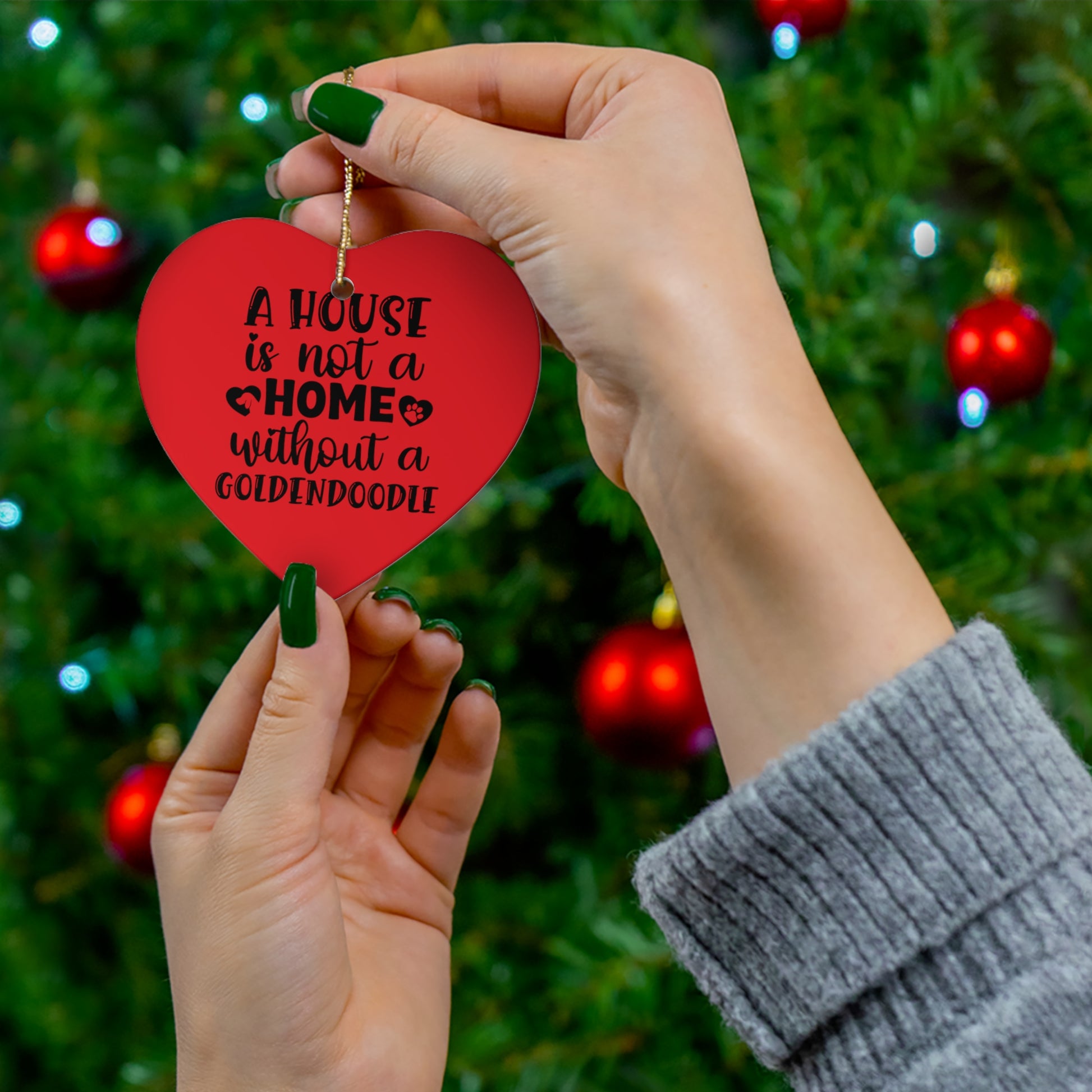A house is not a home without a Goldendoodle - Ceramic Ornament, 4 Shapes