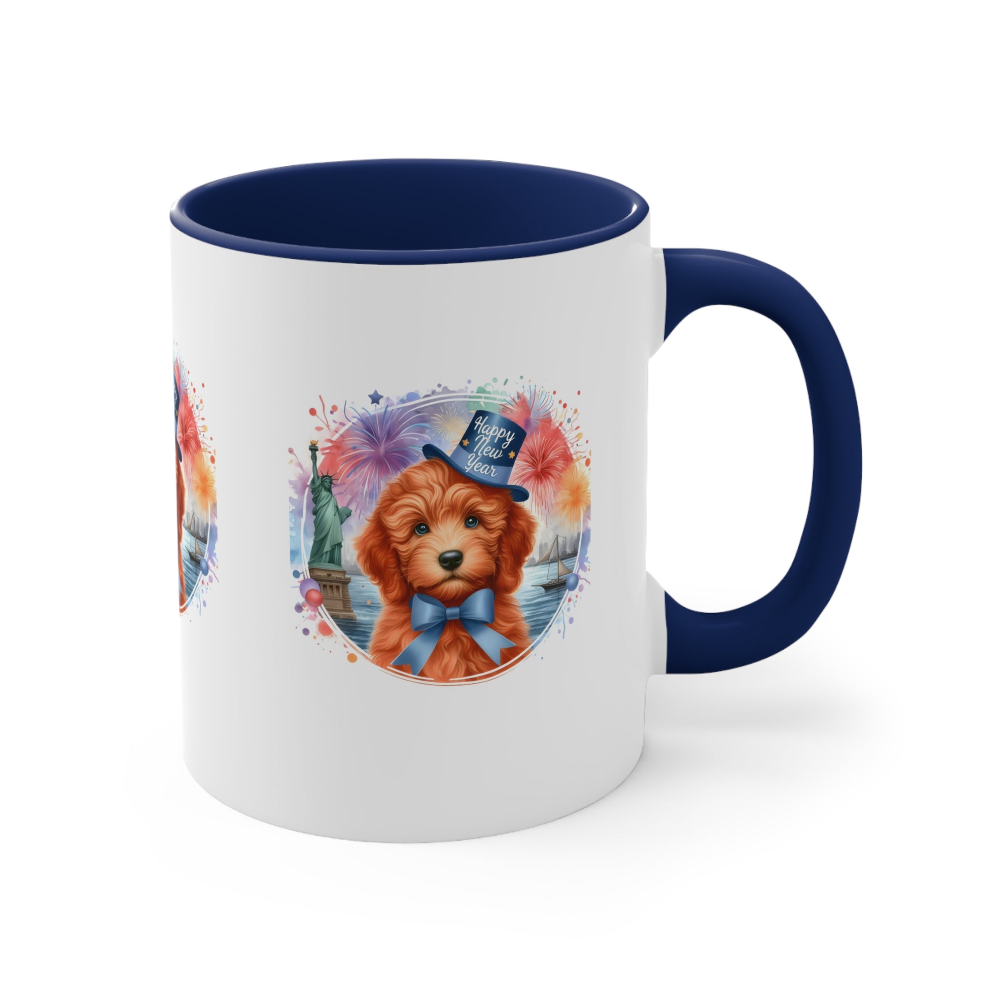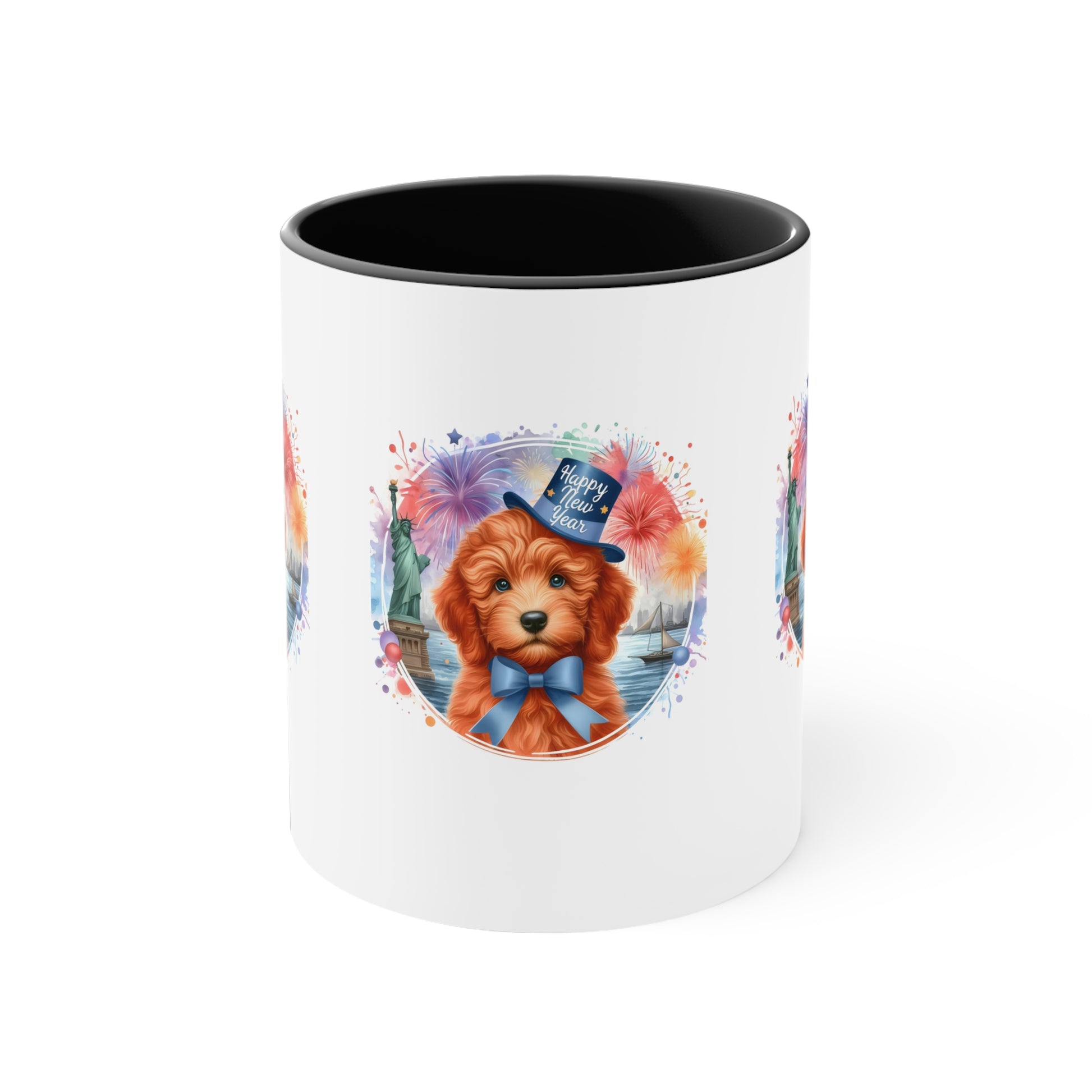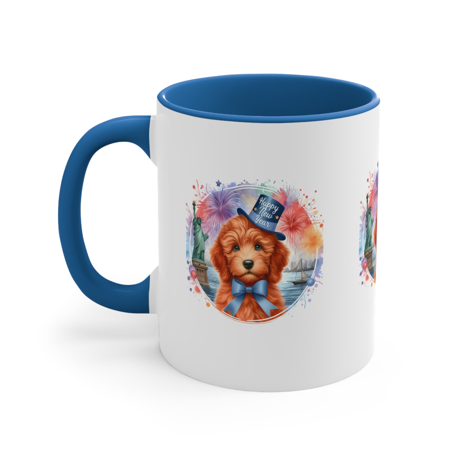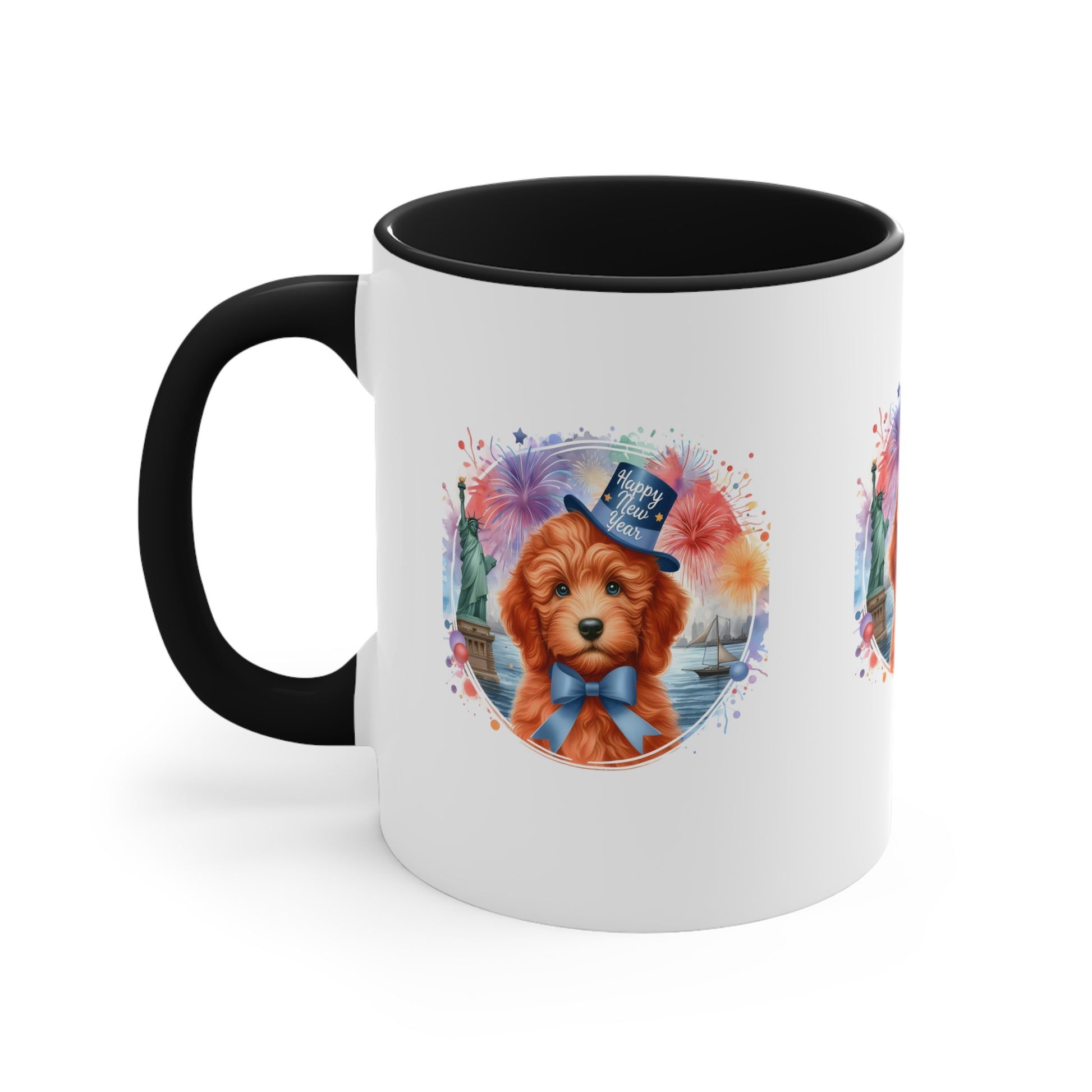 Apricot Doodle Happy New Year - Accent Coffee Mug, 11oz
