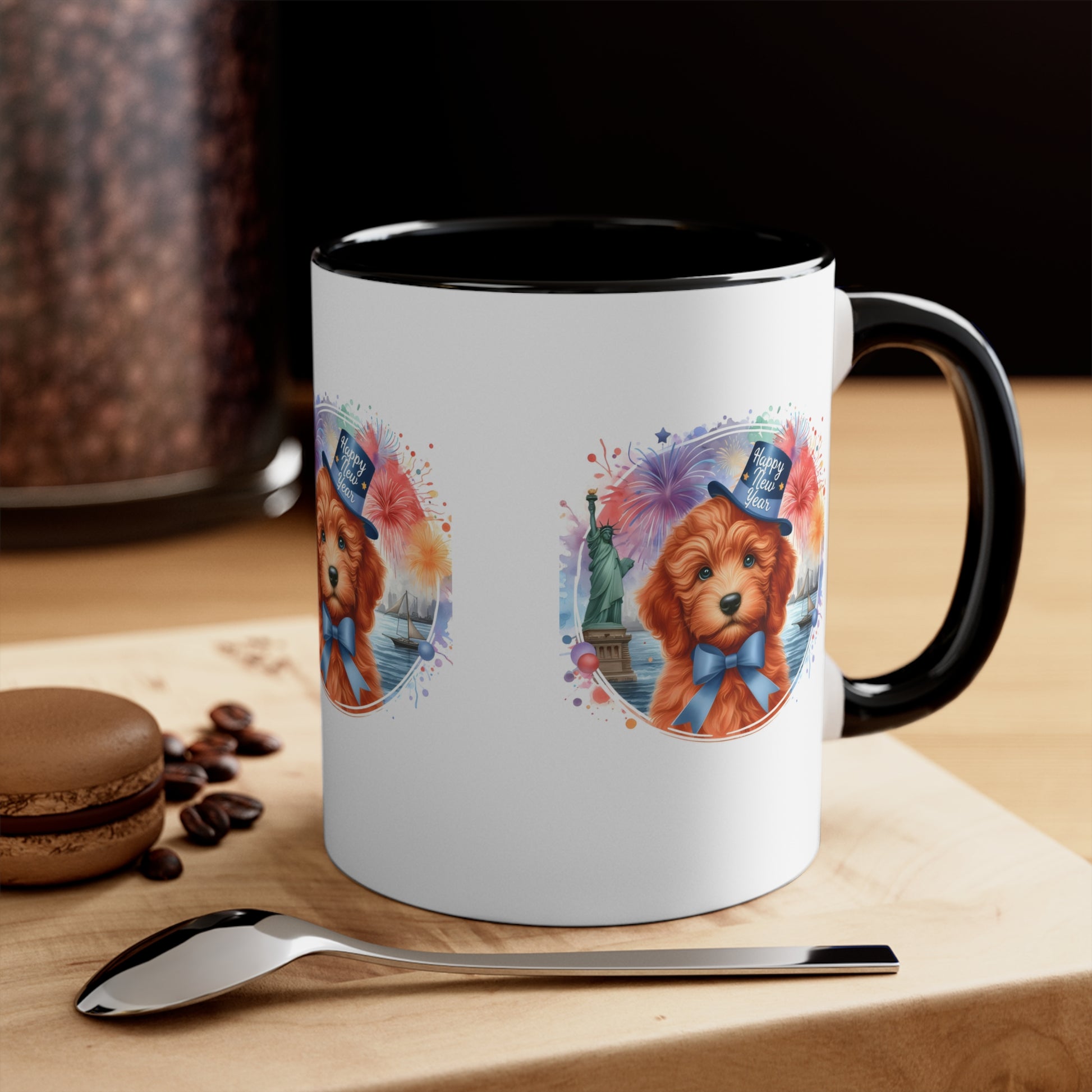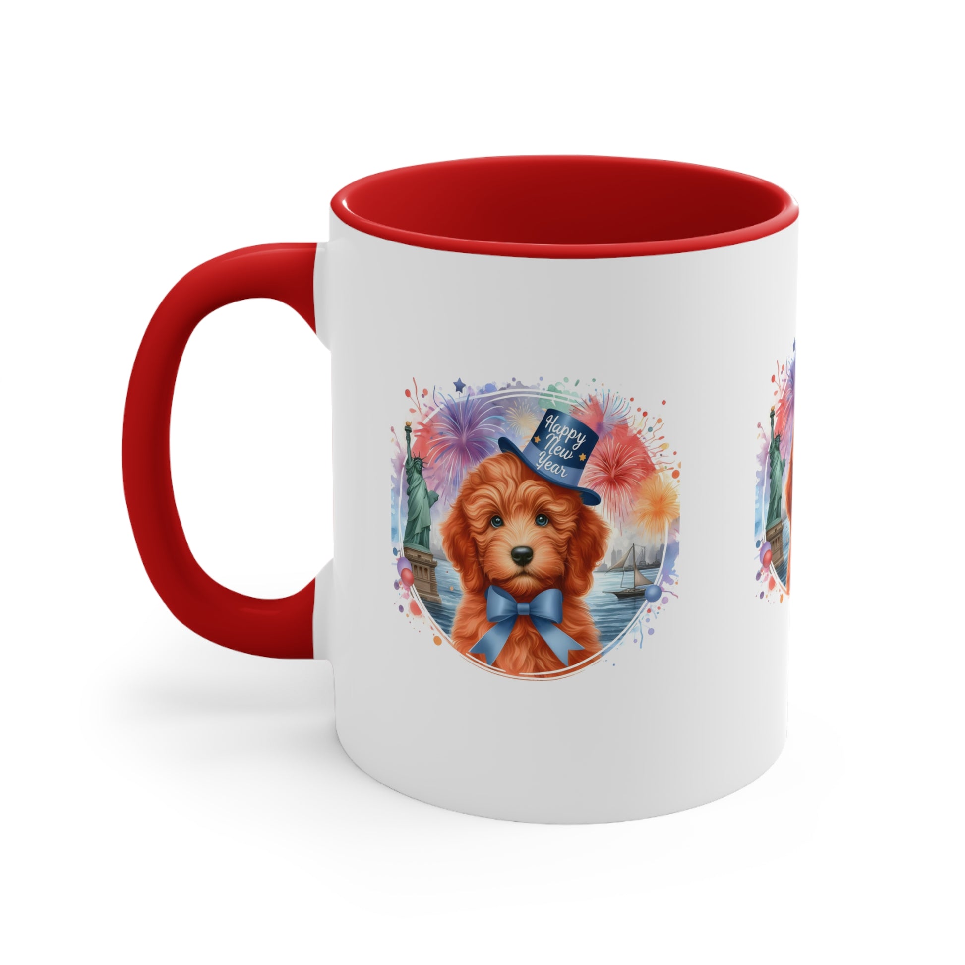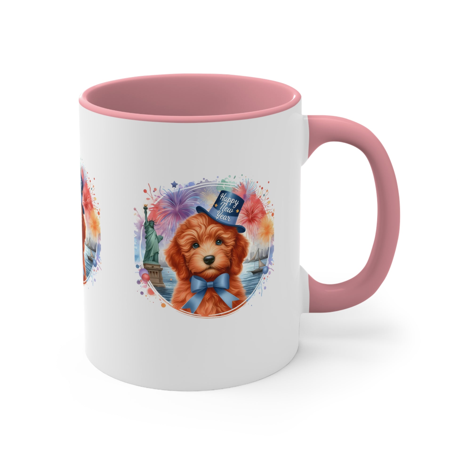 Apricot Doodle Happy New Year - Accent Coffee Mug, 11oz
