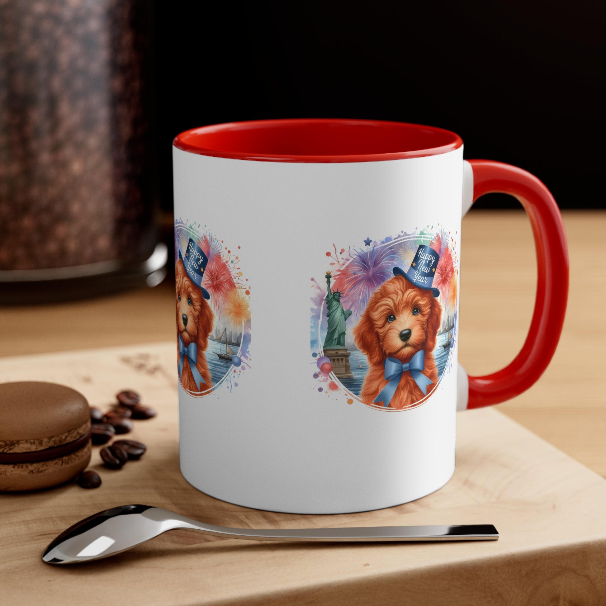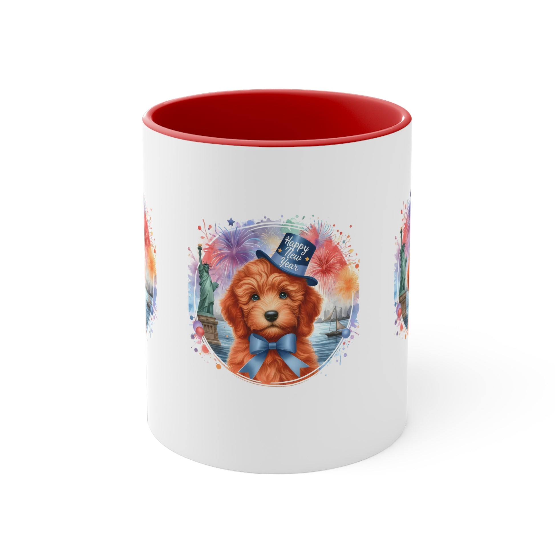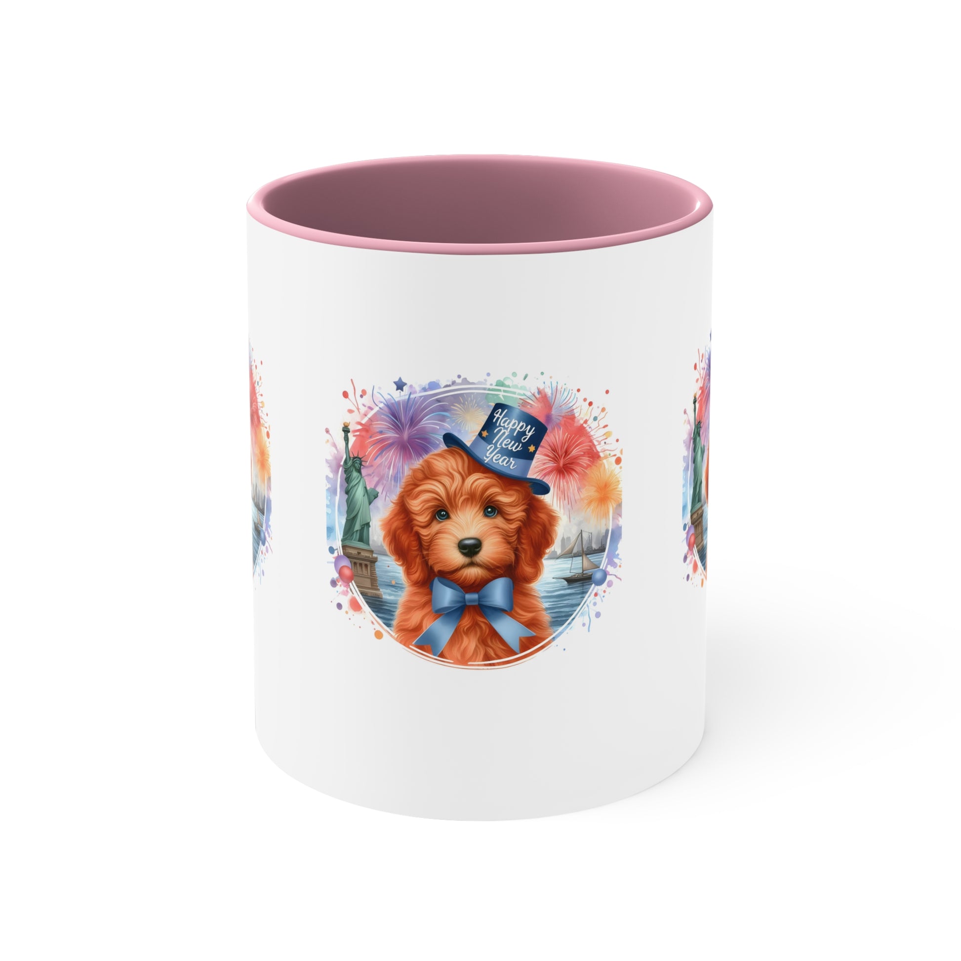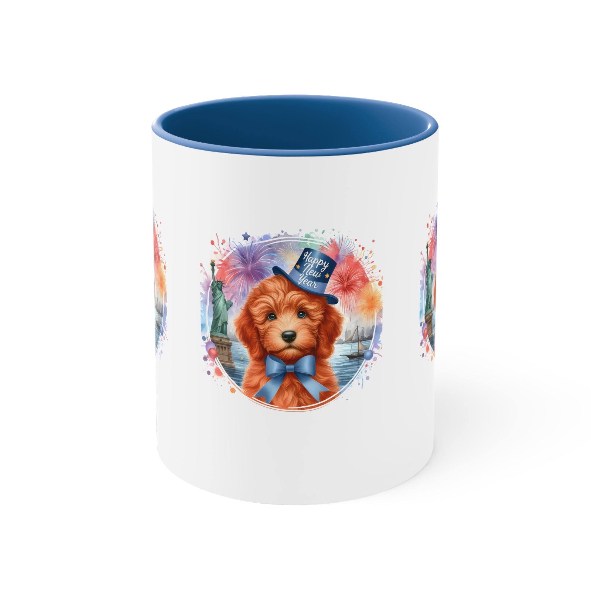Apricot Doodle Happy New Year - Accent Coffee Mug, 11oz