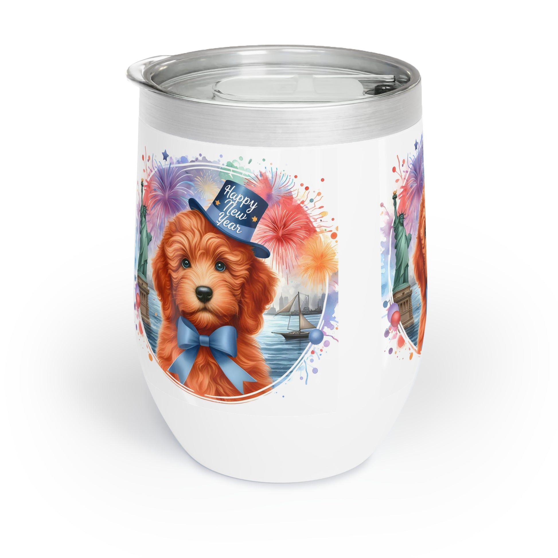 Apricot Doodle Happy New Year - Chill Wine Tumbler