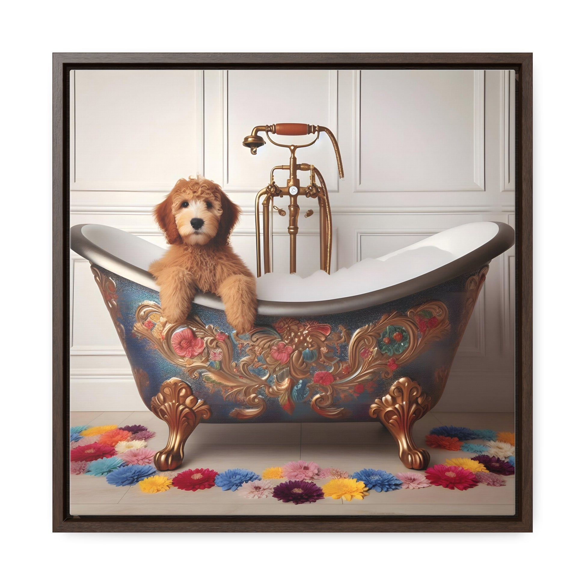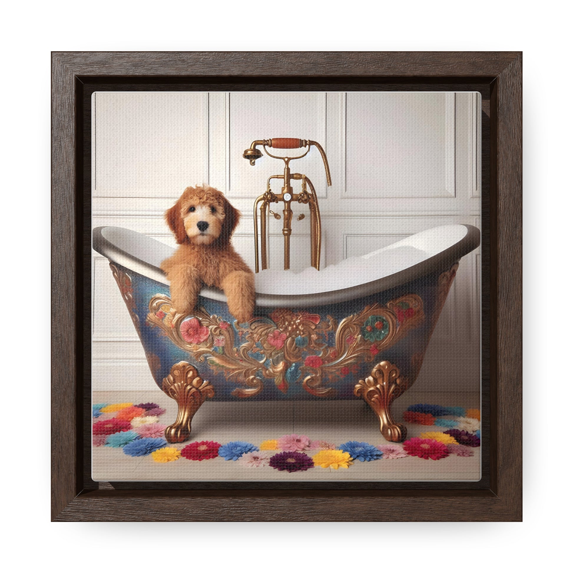 Apricot Doodle Puppy Gallery Canvas Picture - Wooden Square Frame - Nice!