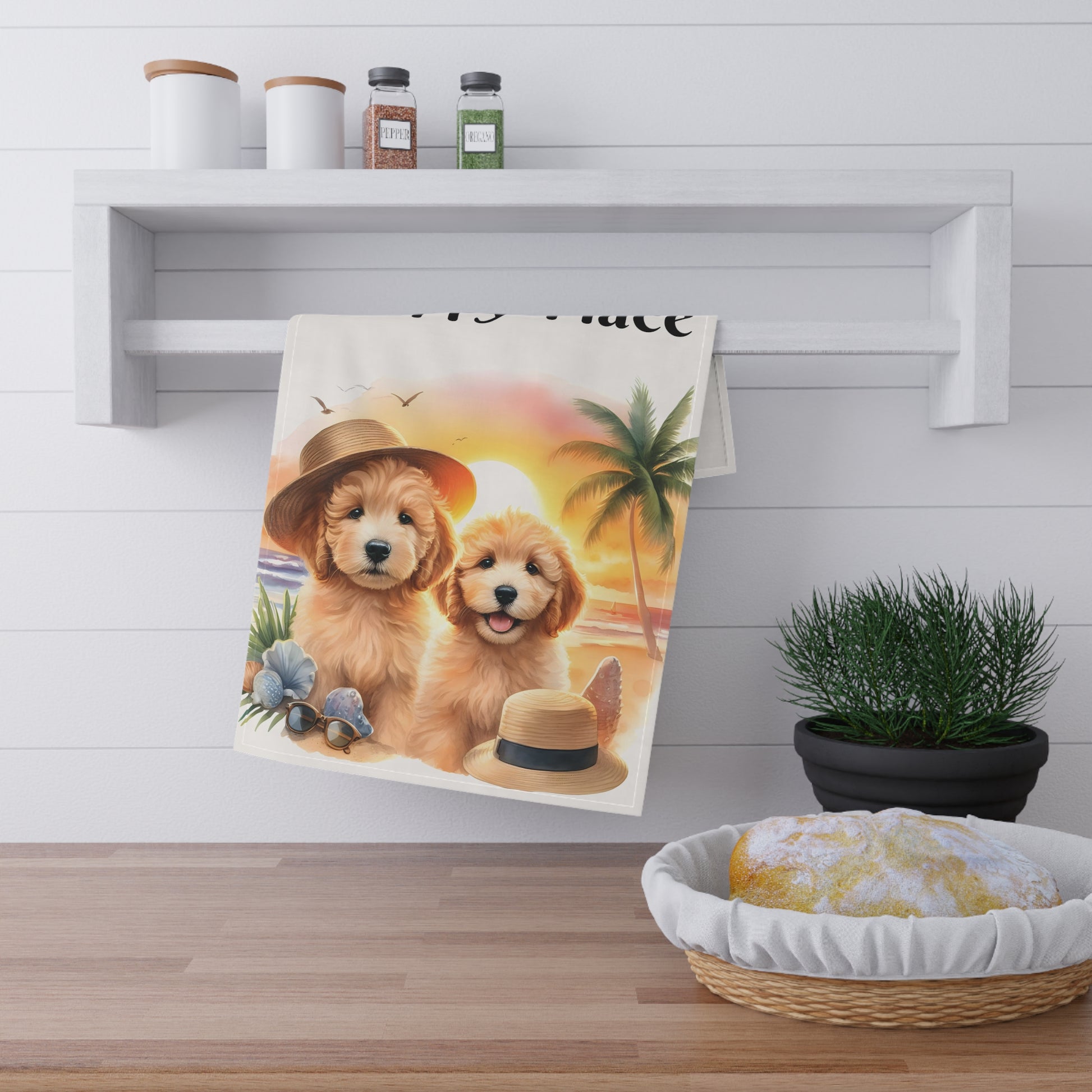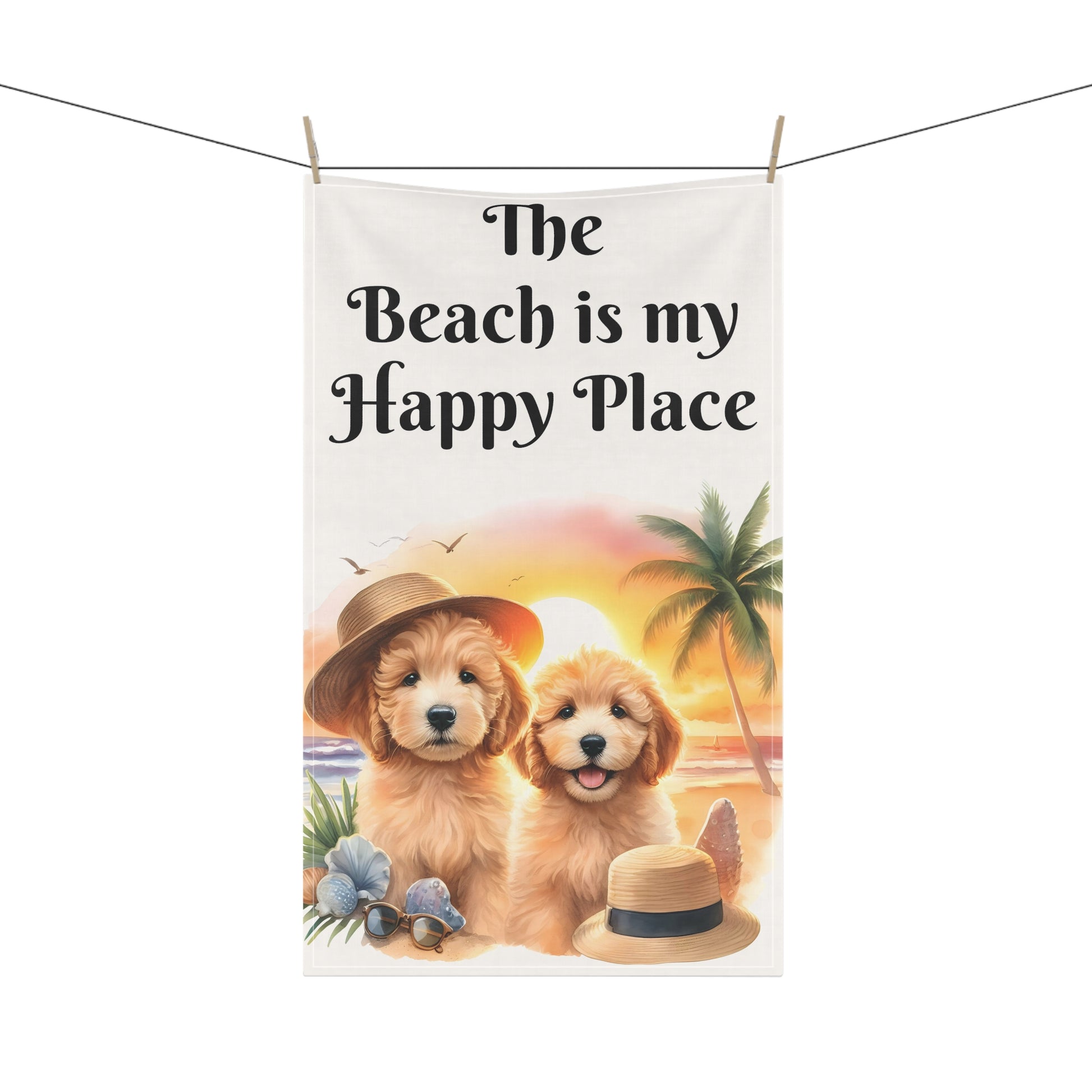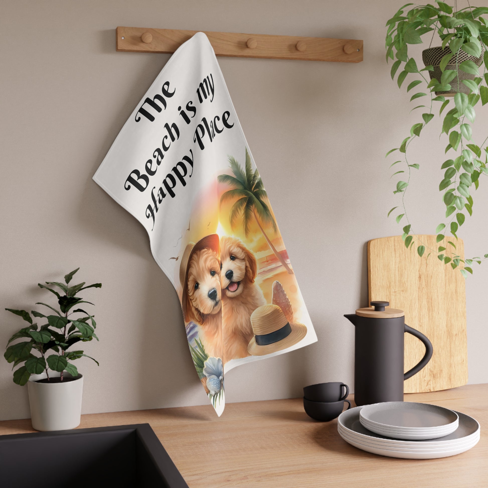 Doodle Puppies Beach is my Happy Place Kitchen Towel