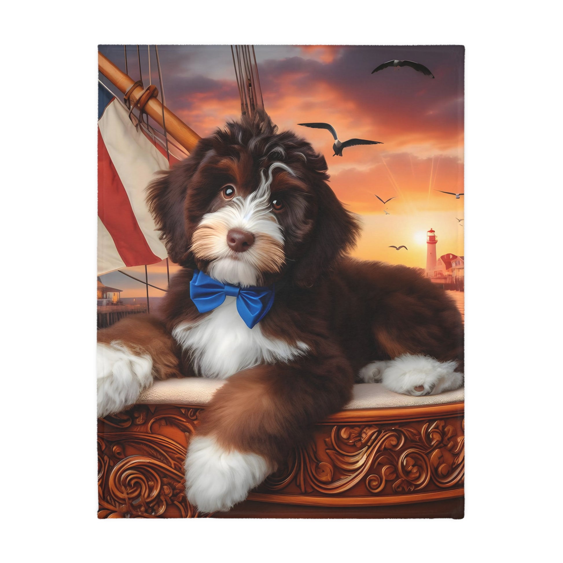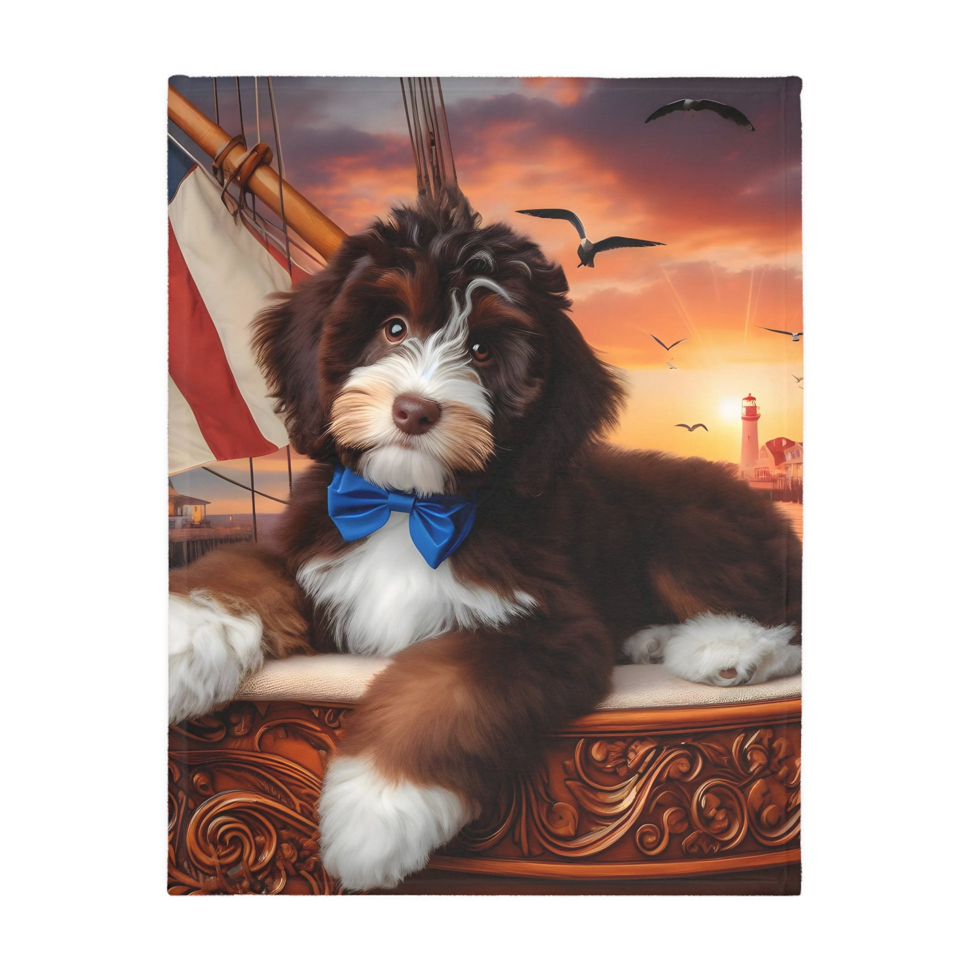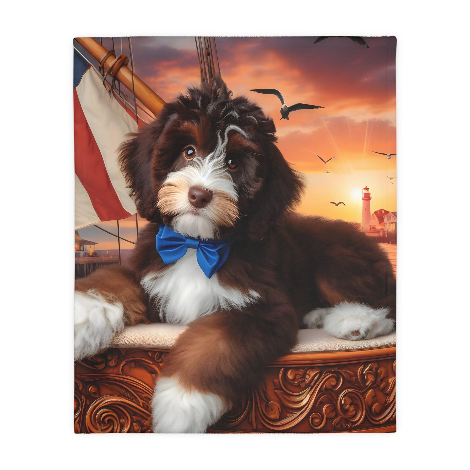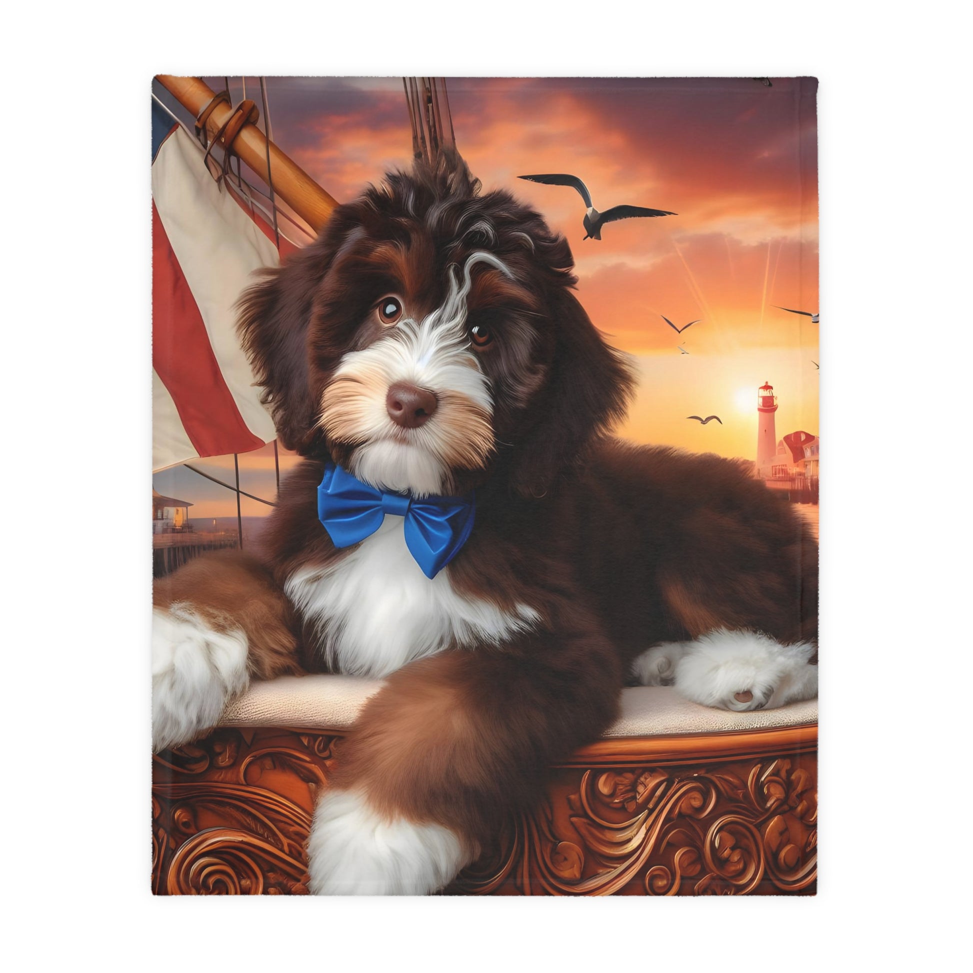 Bernedoodle on Sailboat - Velveteen MINKY Blanket (Two sided Print) - Nice!