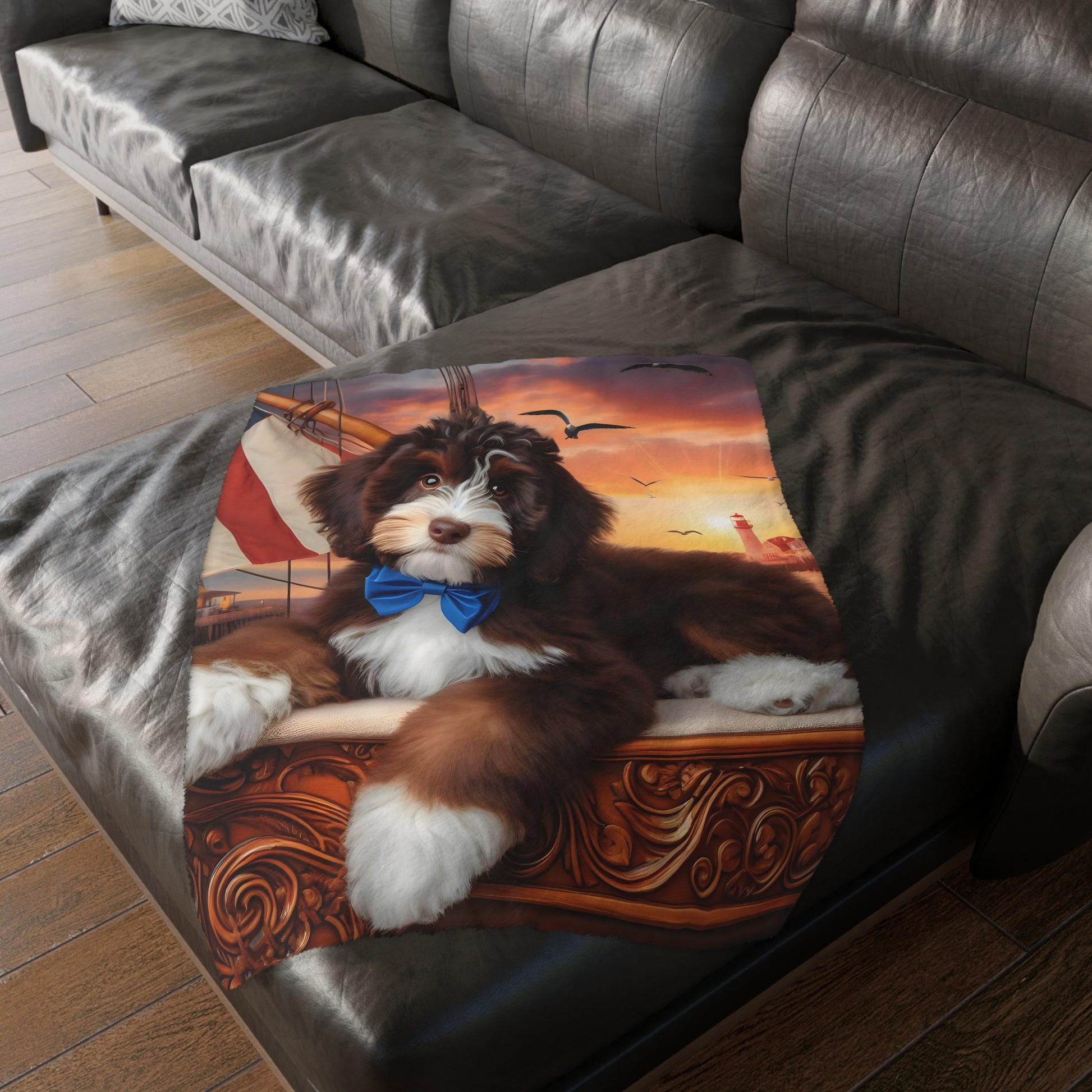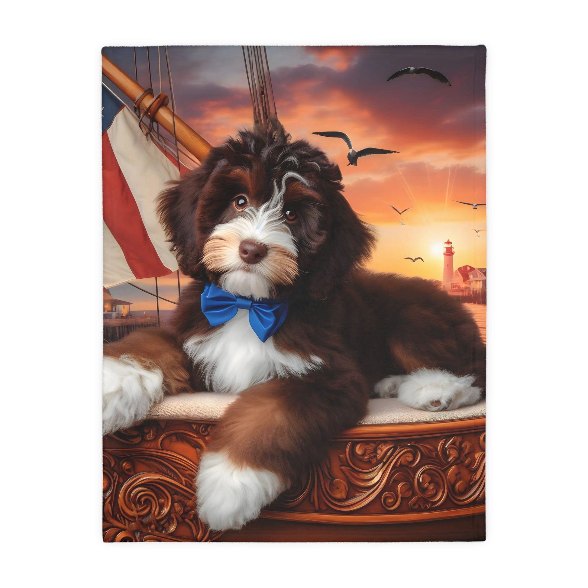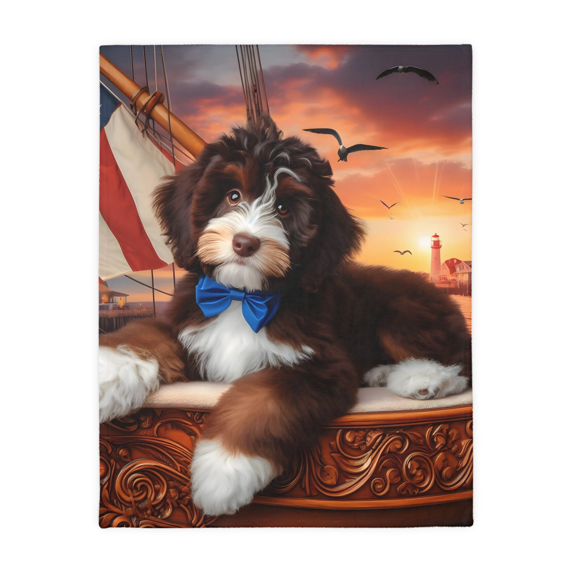 Bernedoodle on Sailboat - Velveteen MINKY Blanket (Two sided Print) - Nice!