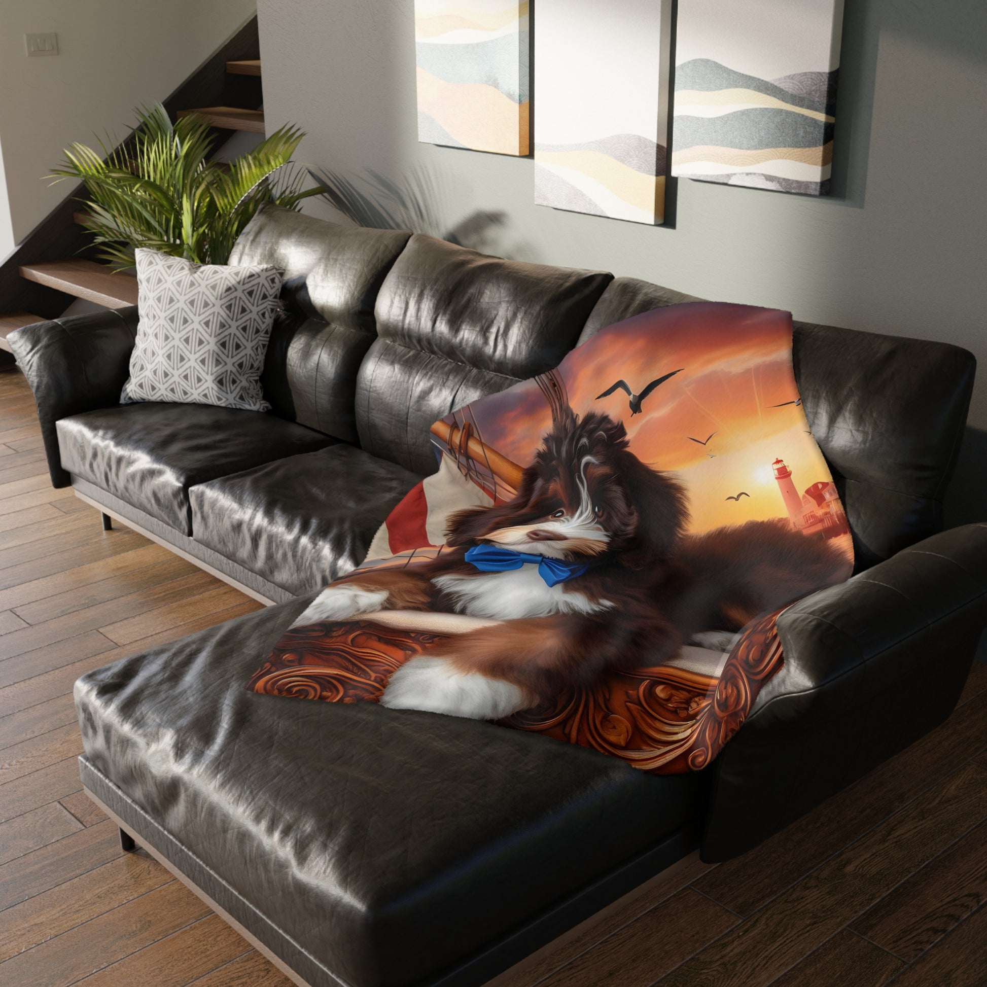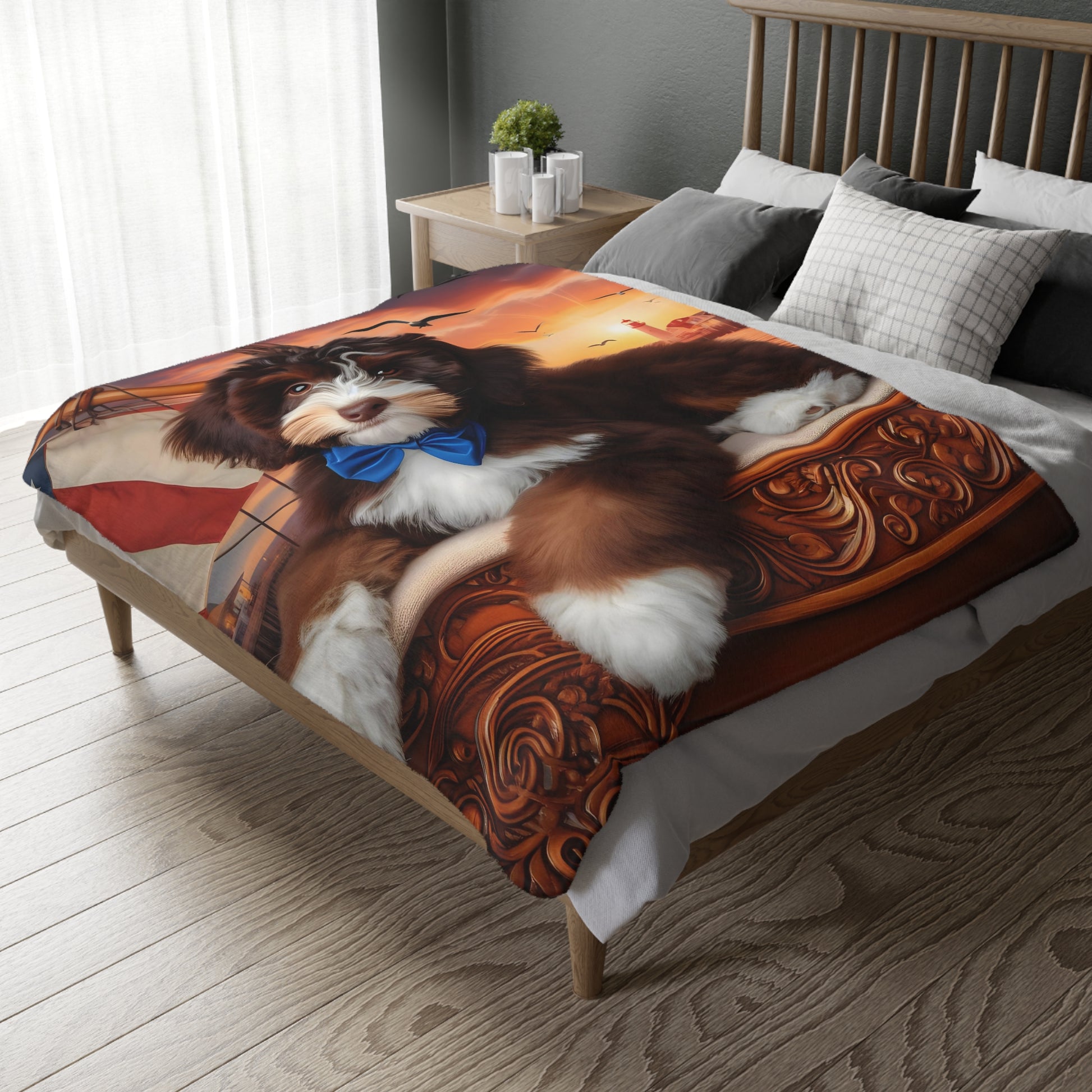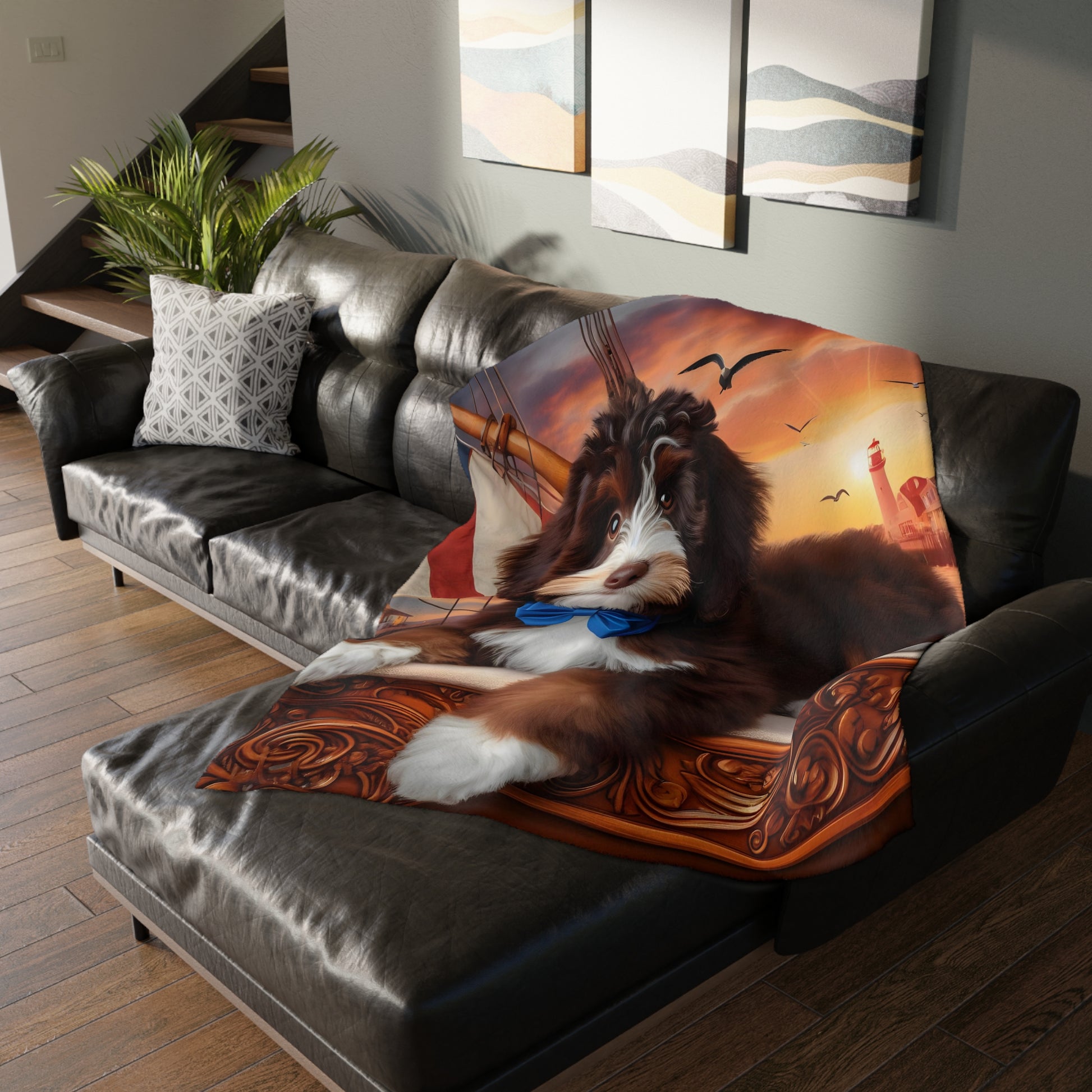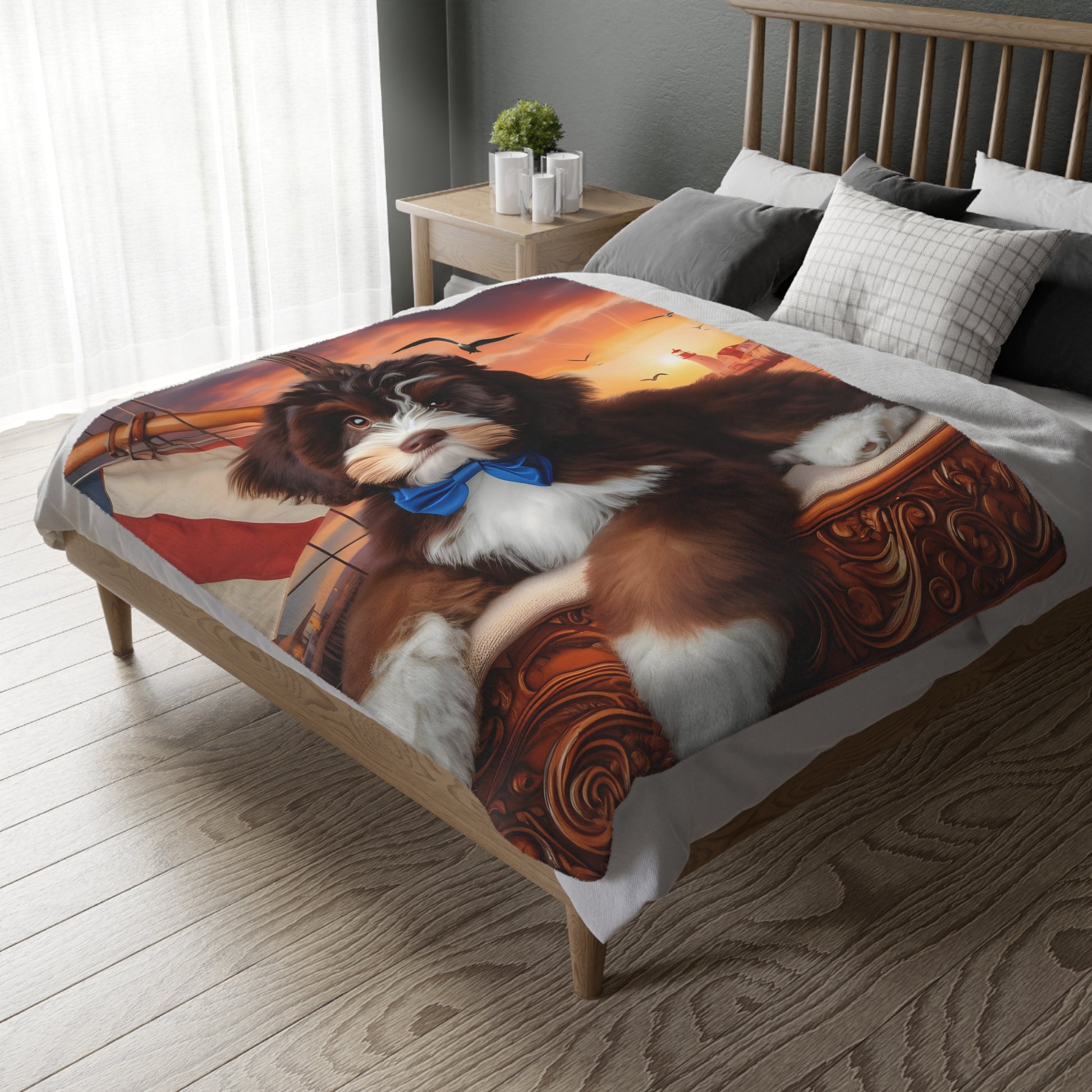 Bernedoodle on Sailboat - Velveteen MINKY Blanket (Two sided Print) - Nice!