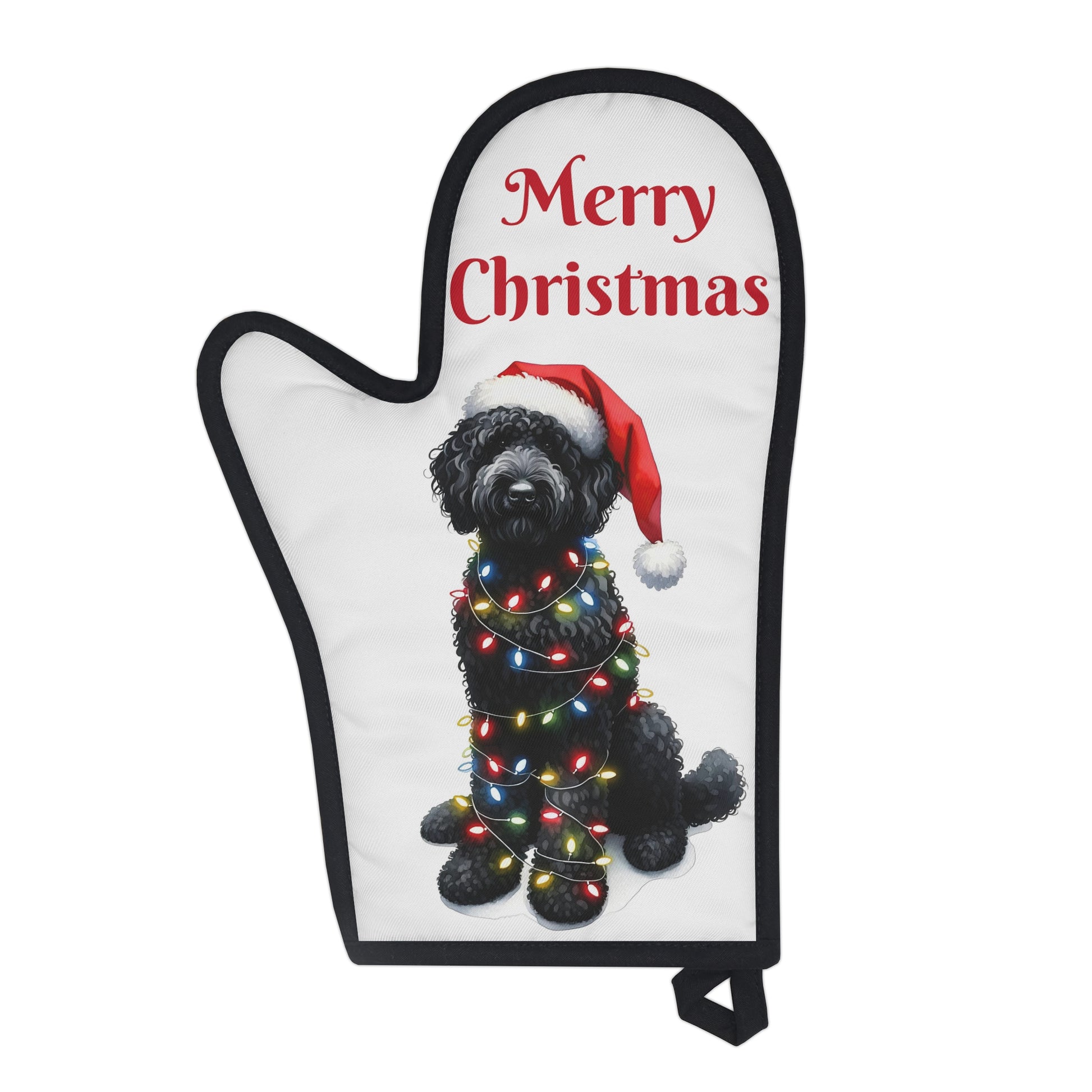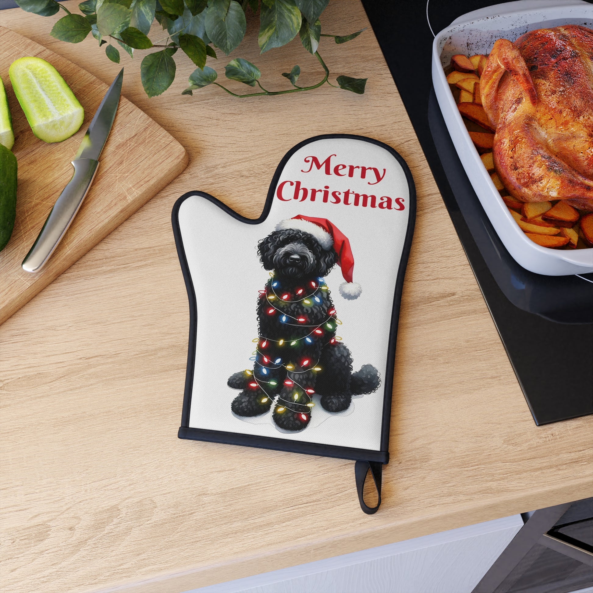 Black Christmas Doodle w/Lights Oven Glove Mitt