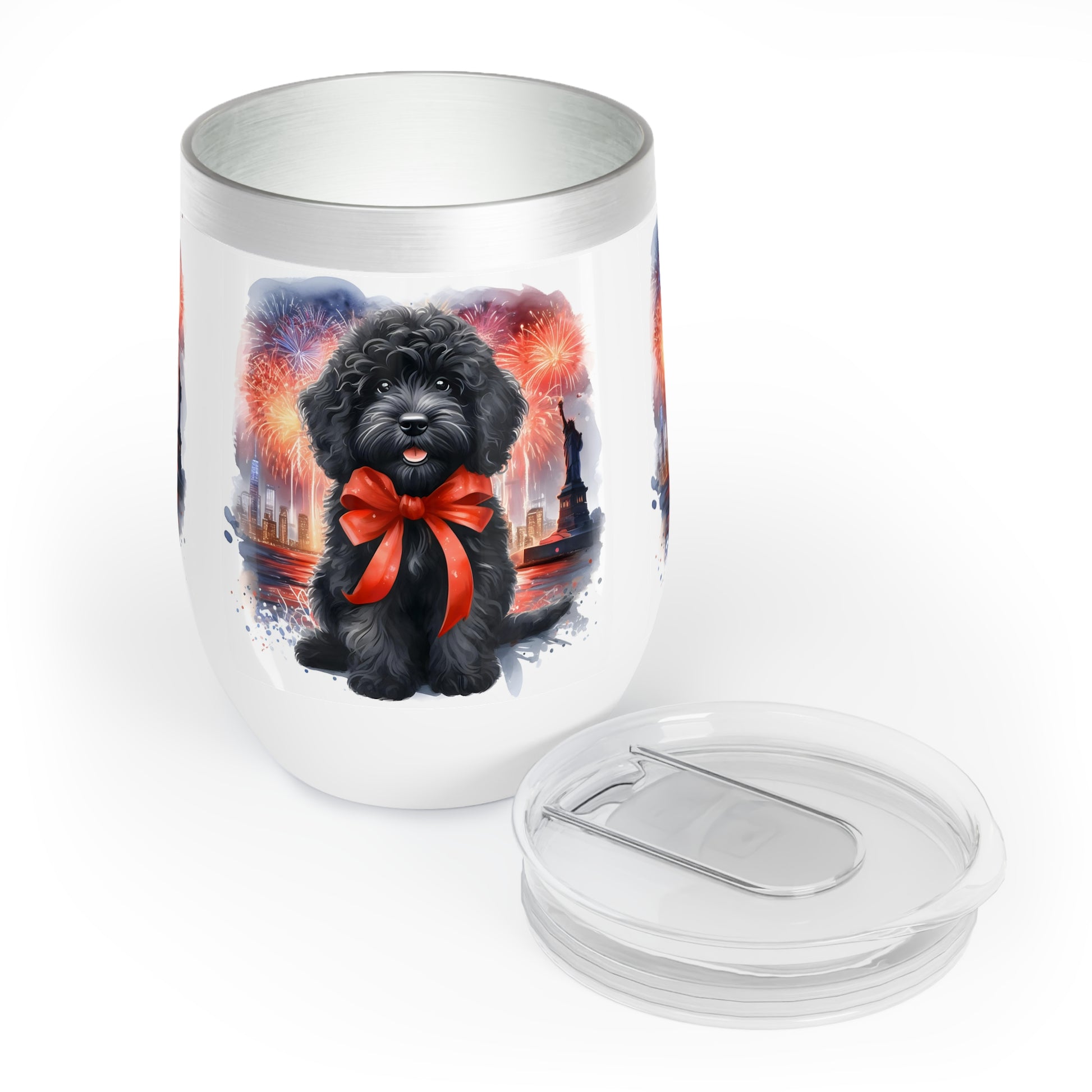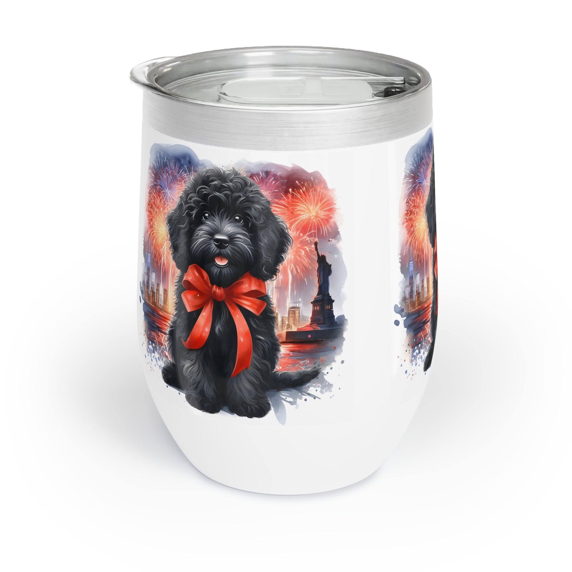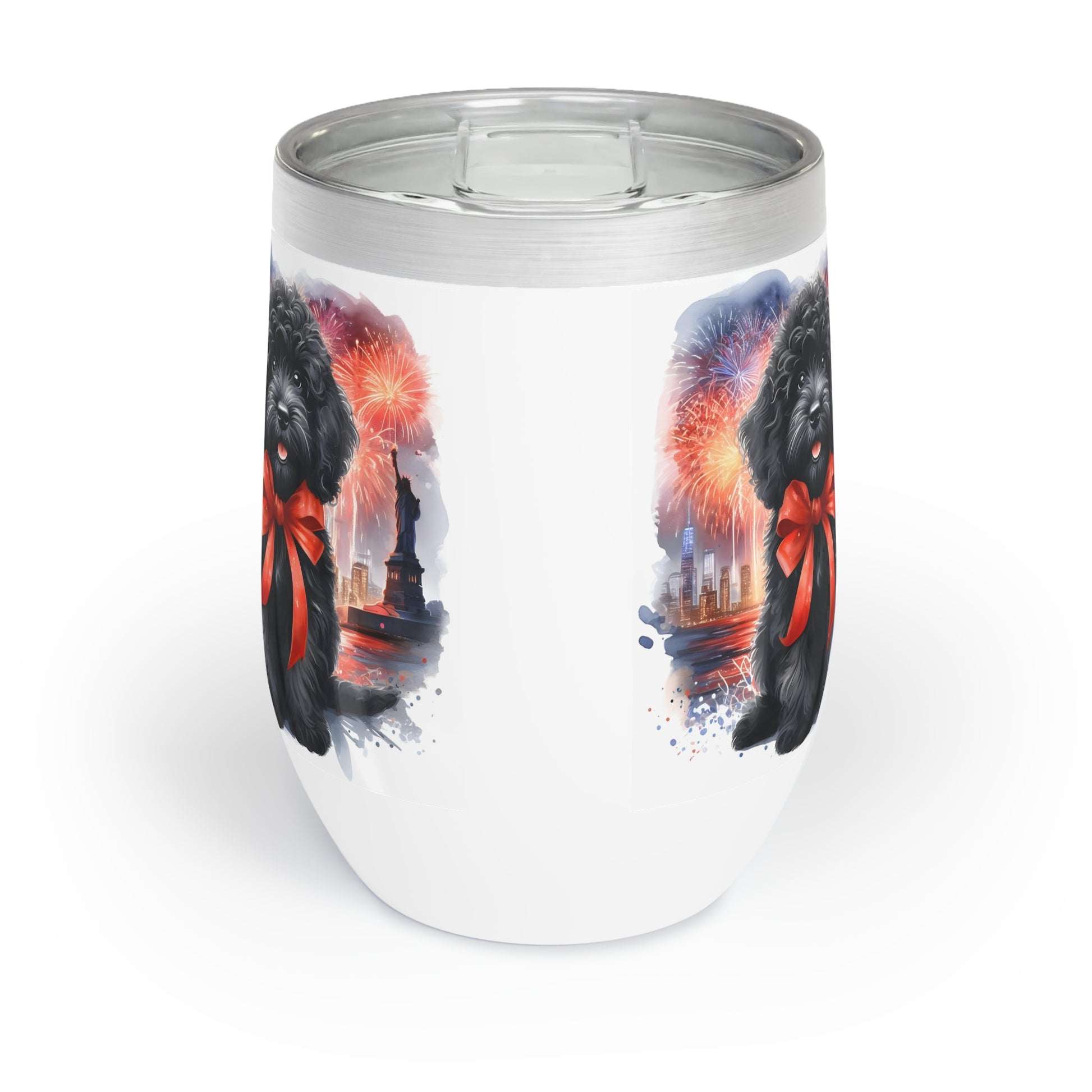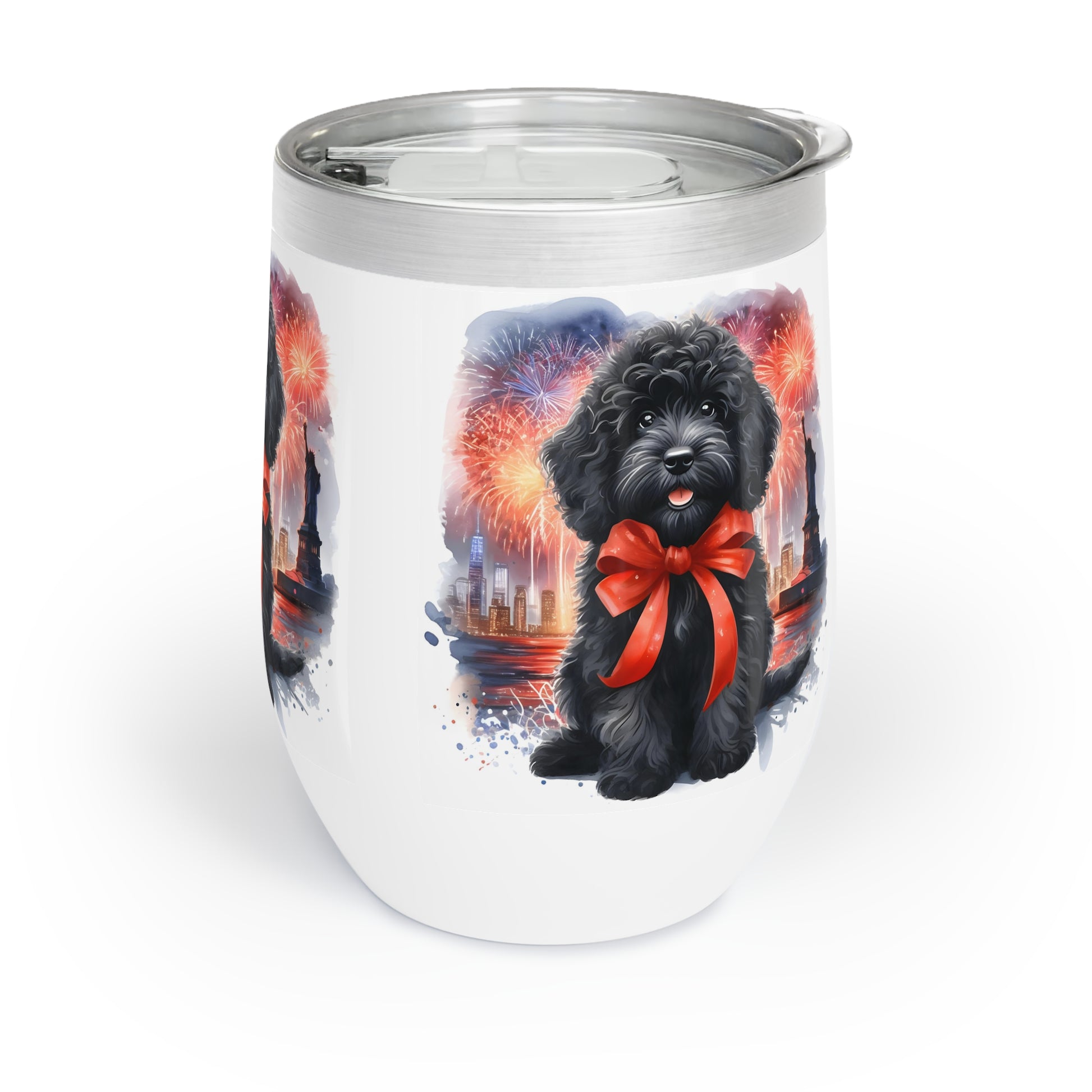Black Doodle Celebration with Fireworks - Chill Wine Tumbler