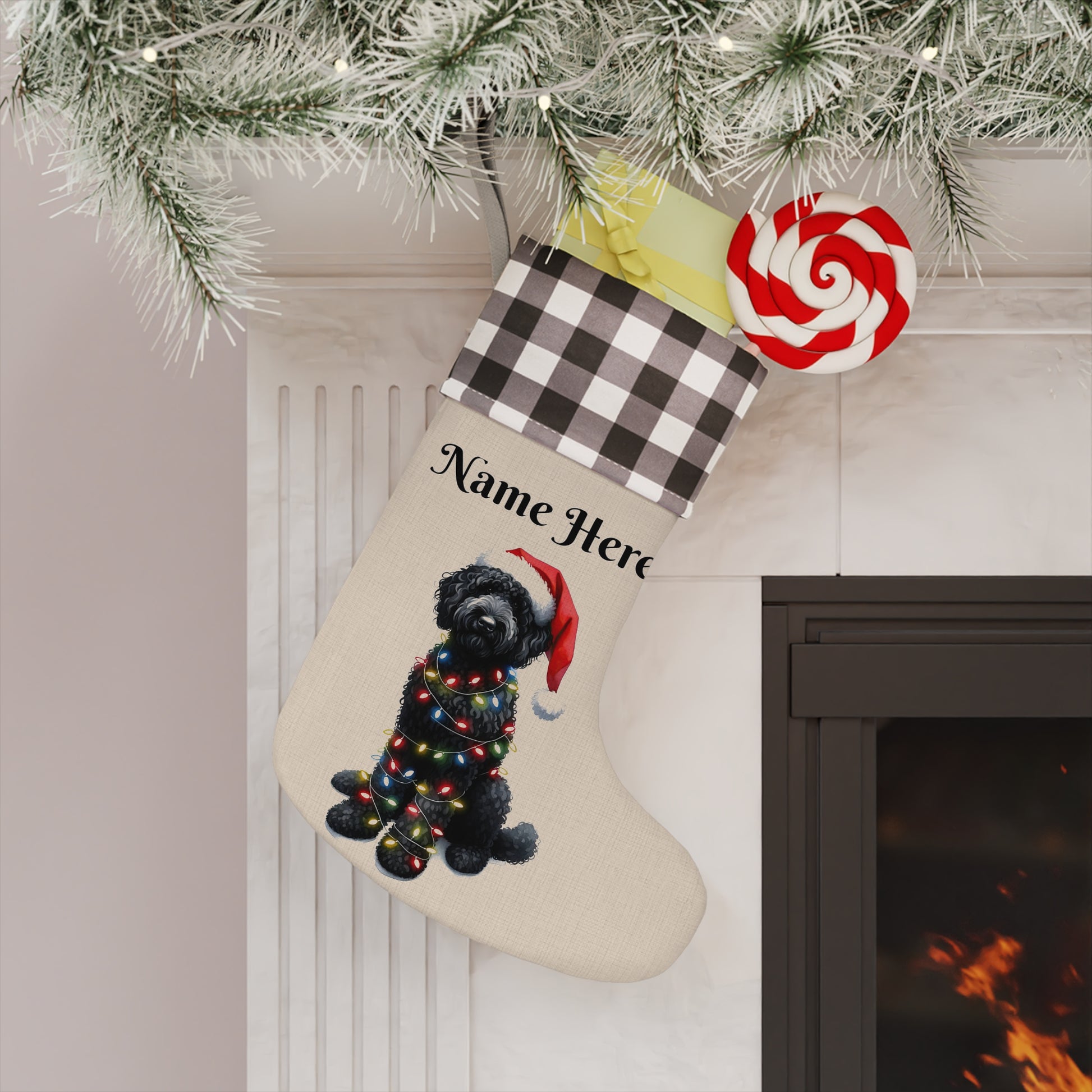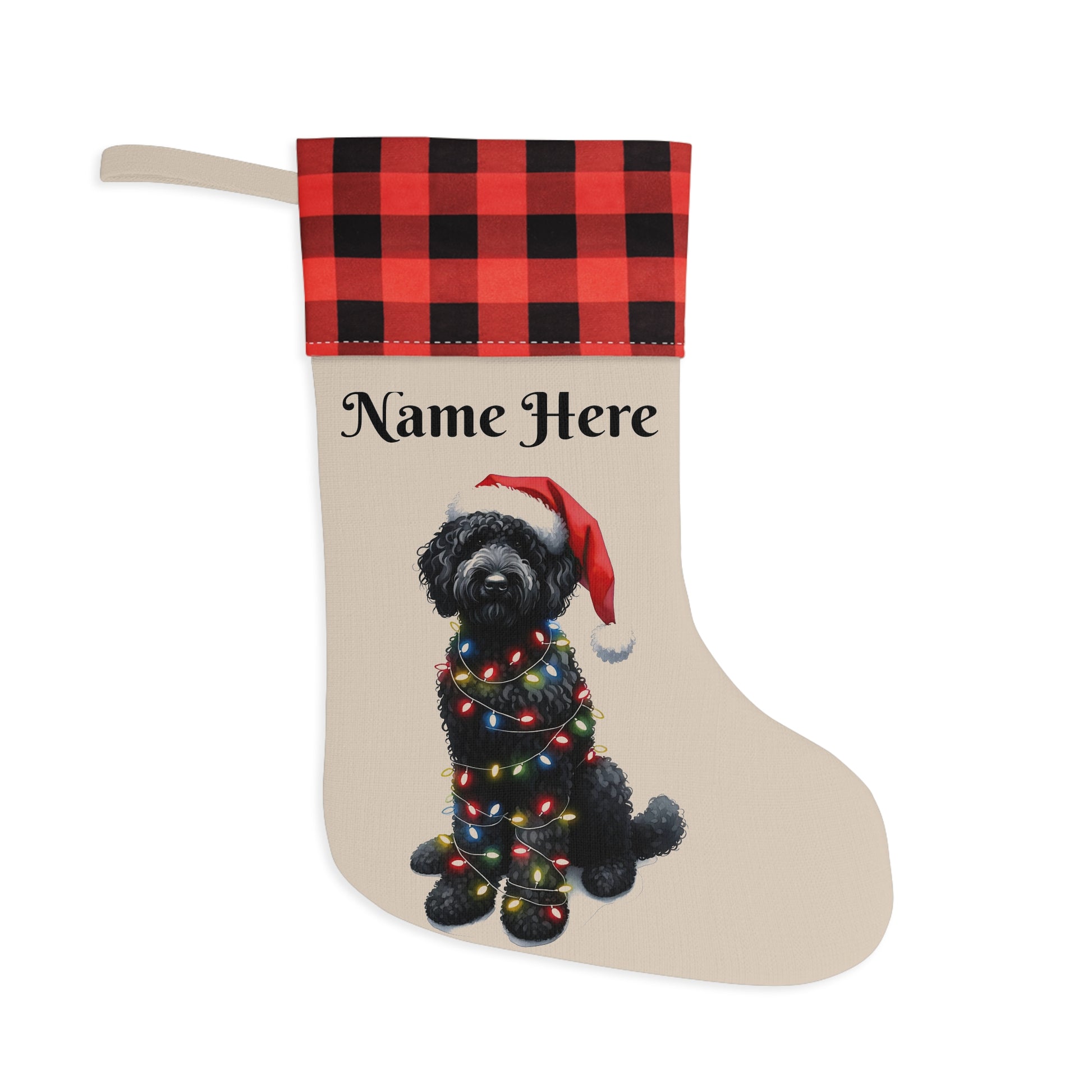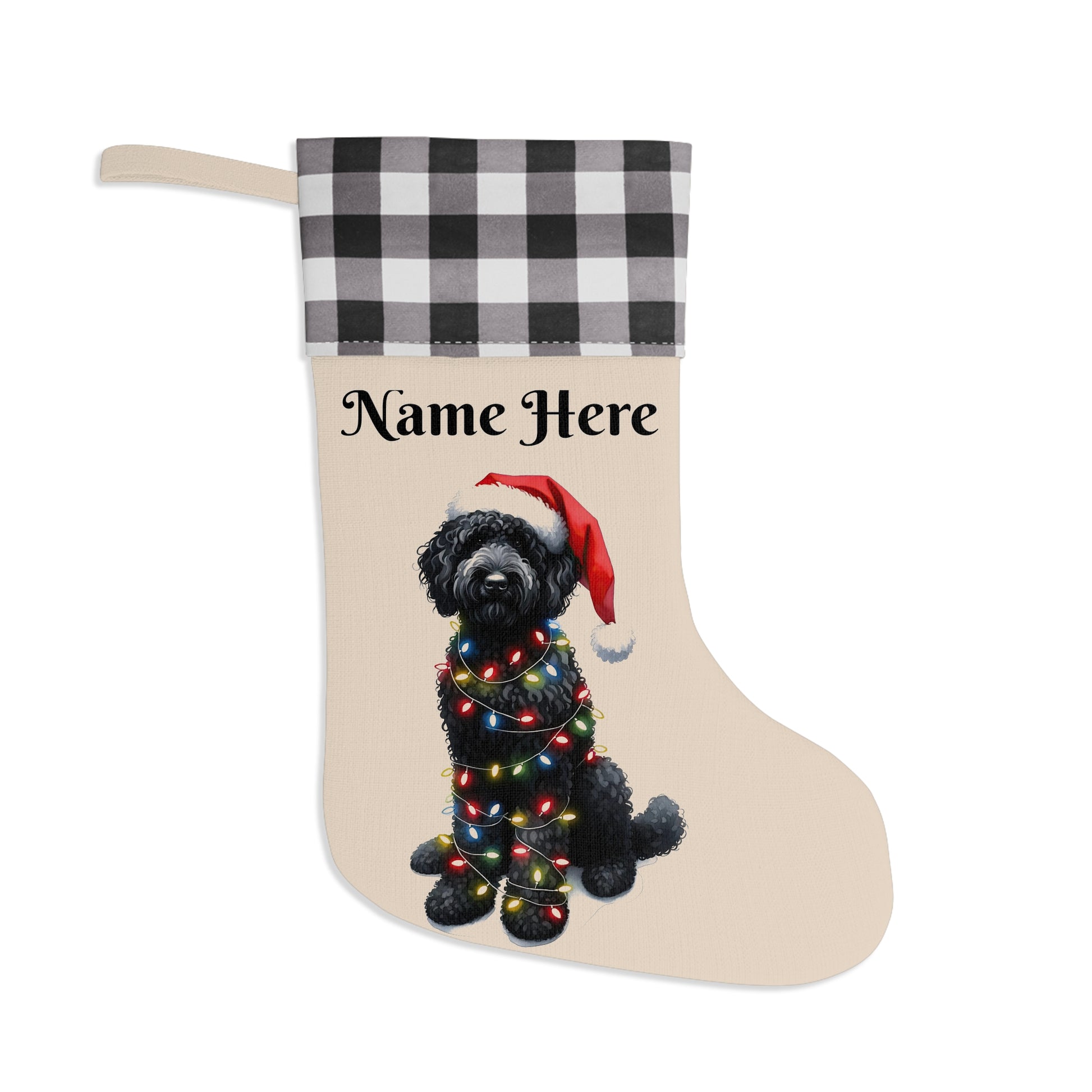 Black Doodle w/Lights Personalized Christmas Stocking
