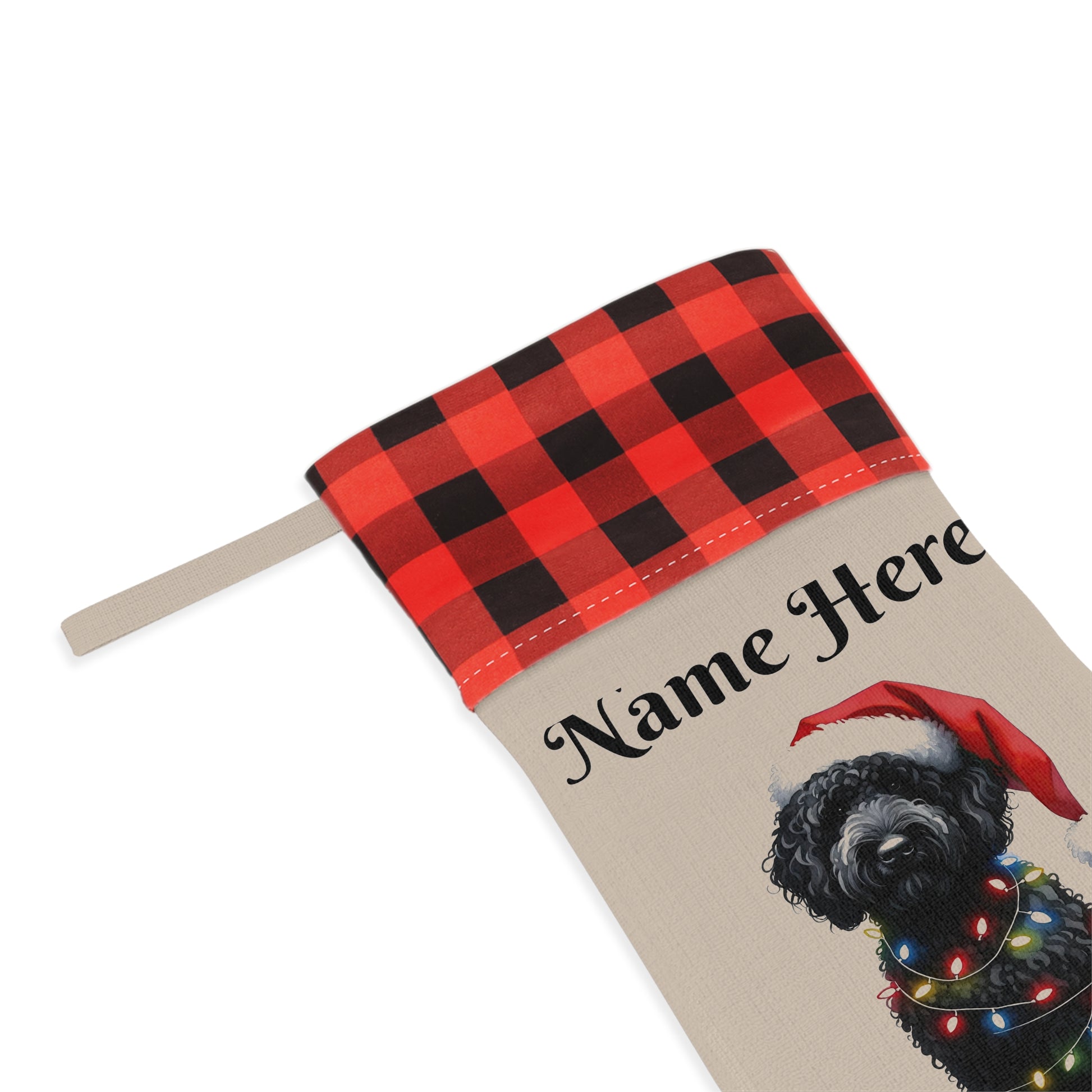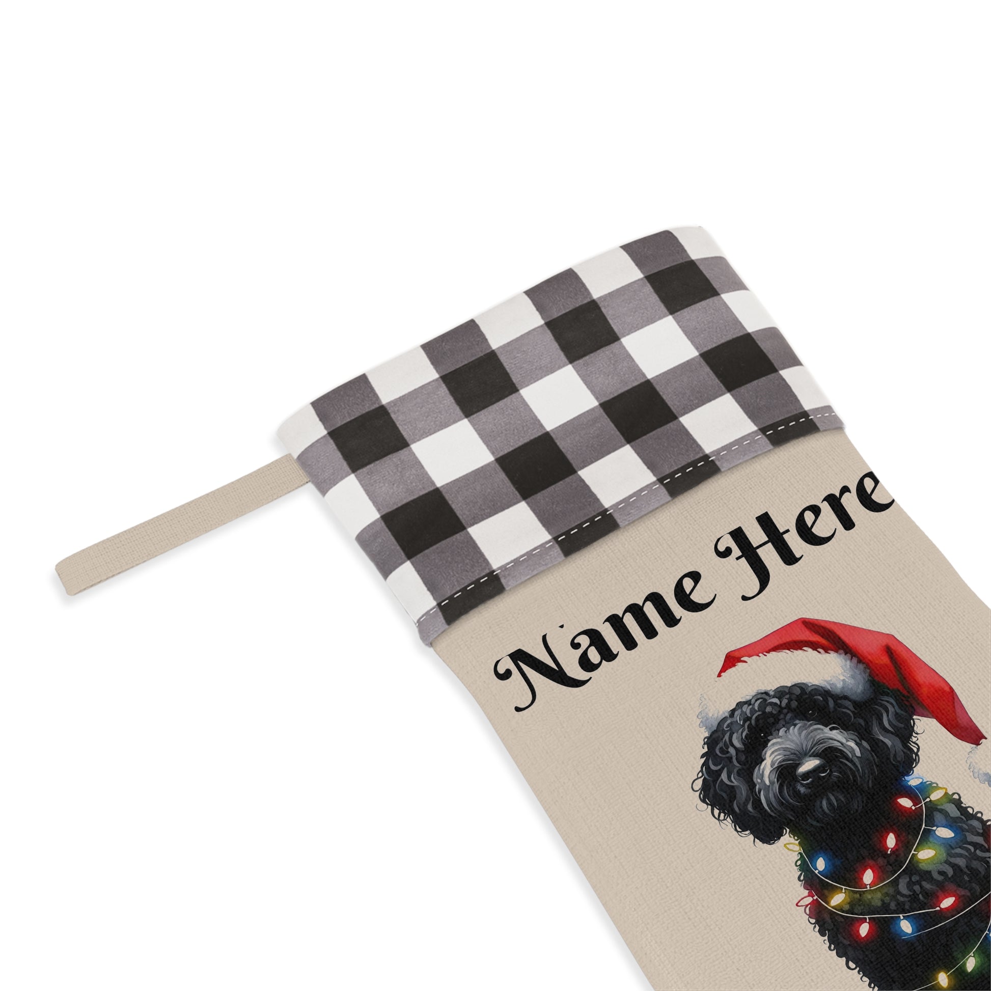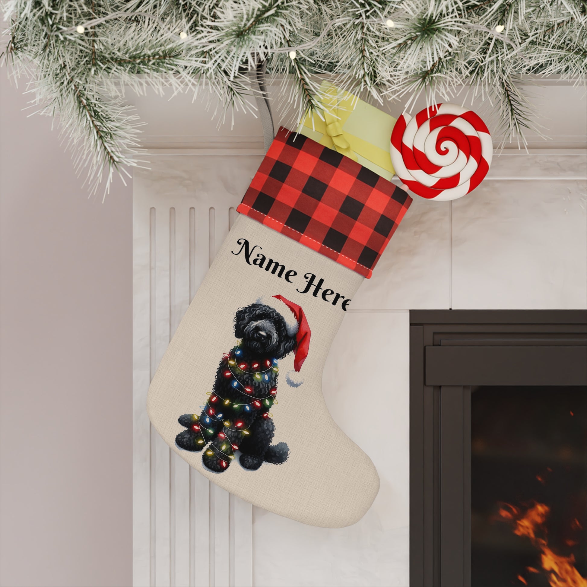 Black Doodle w/Lights Personalized Christmas Stocking