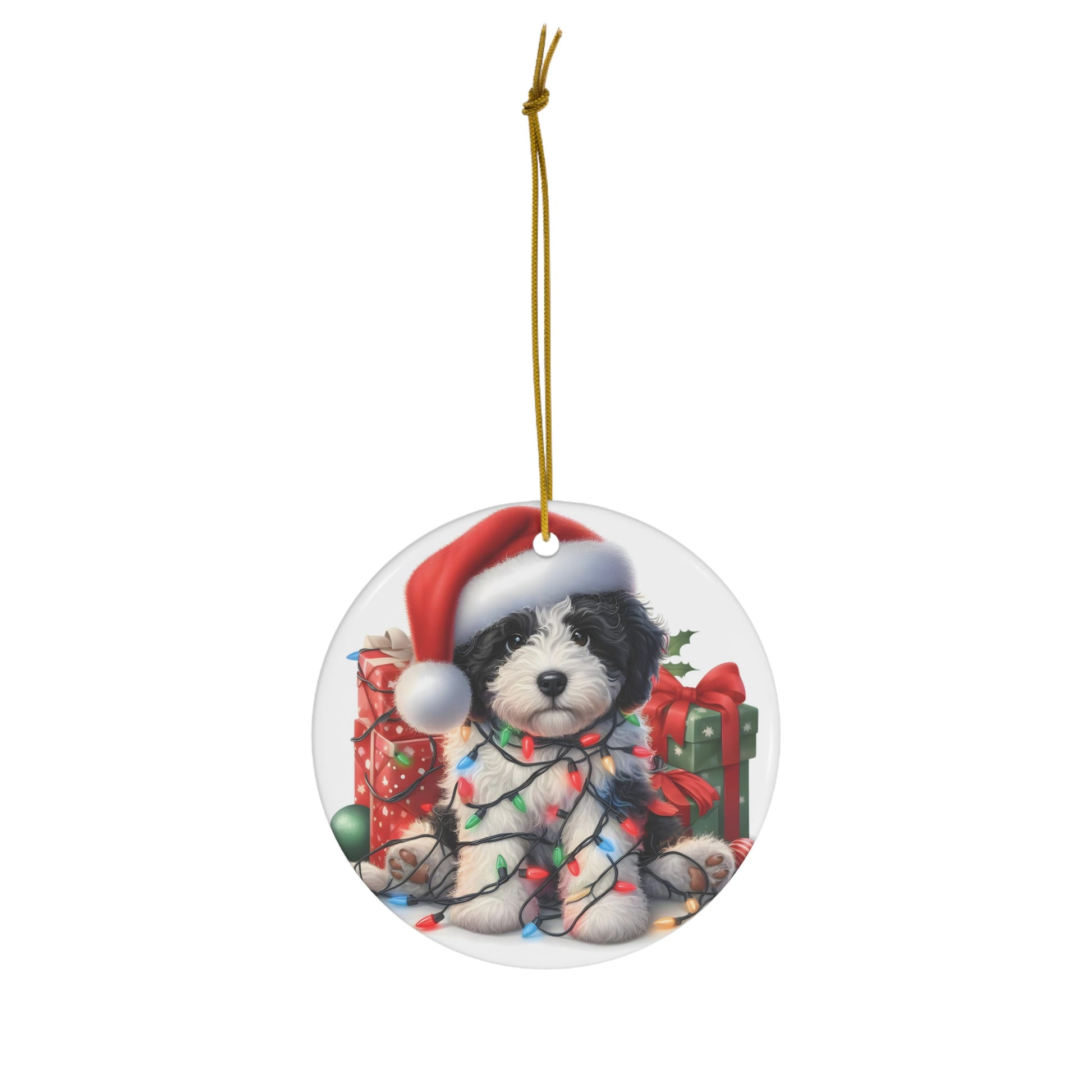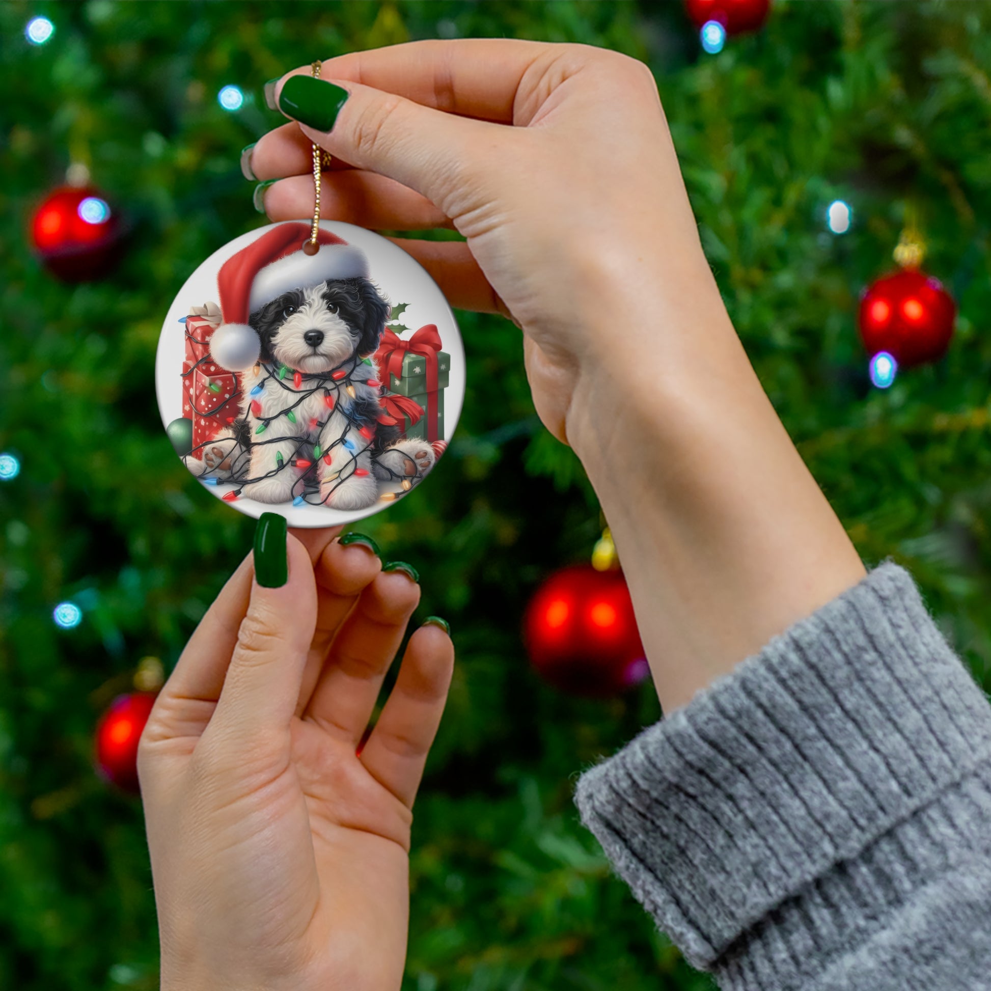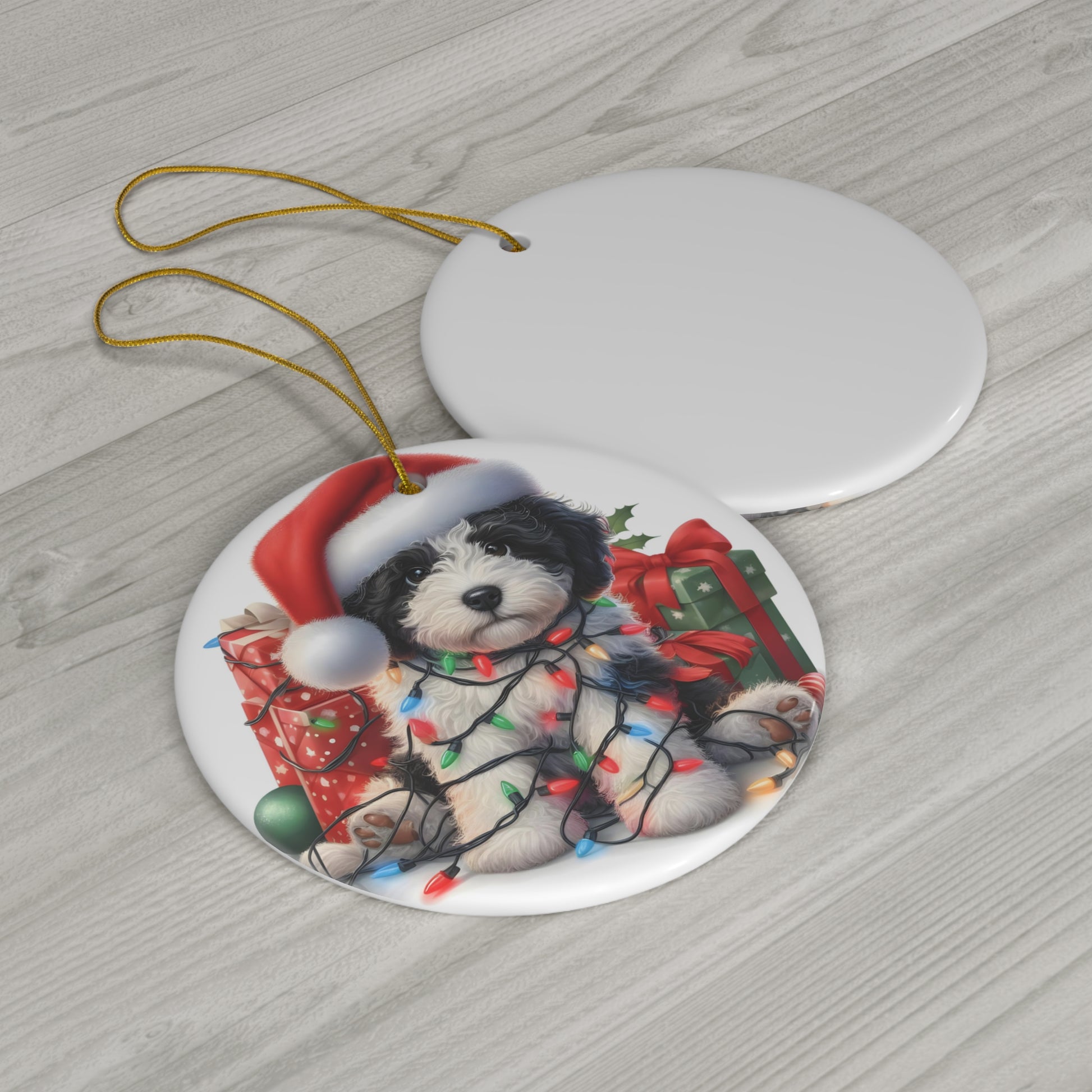 Black & White Doodle Christmas Puppy Ceramic Ornament