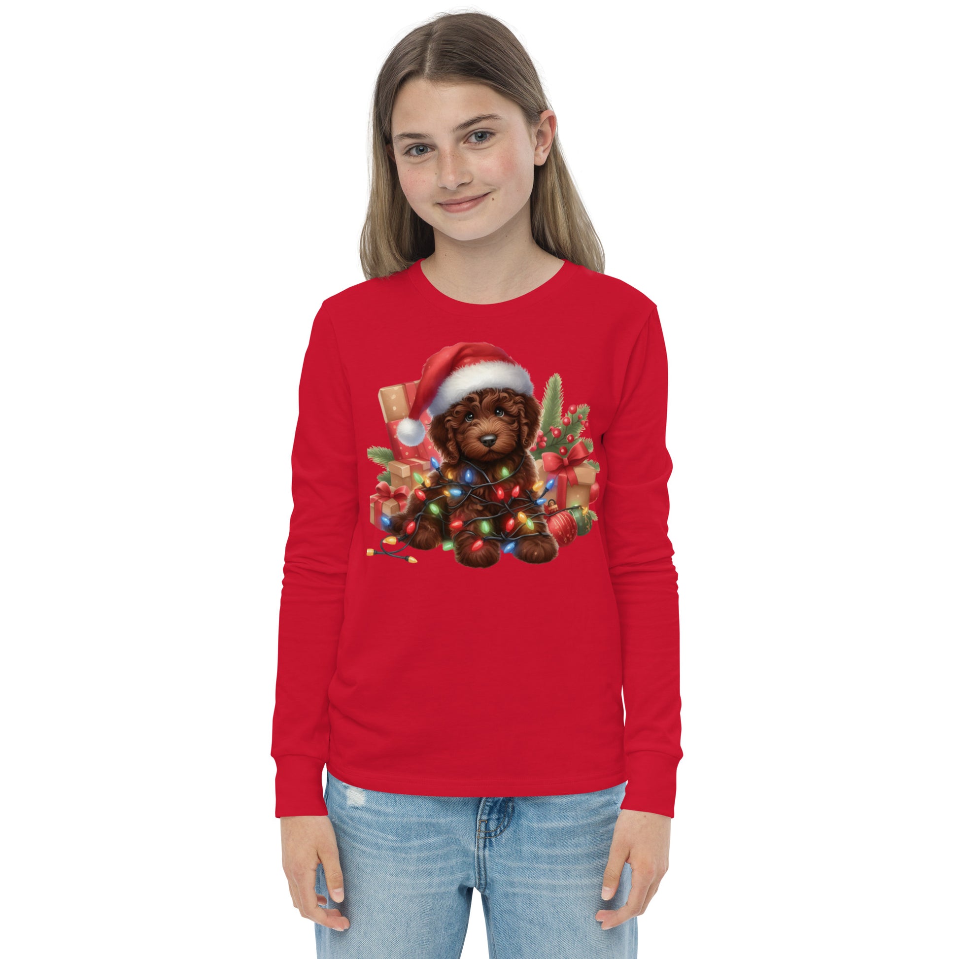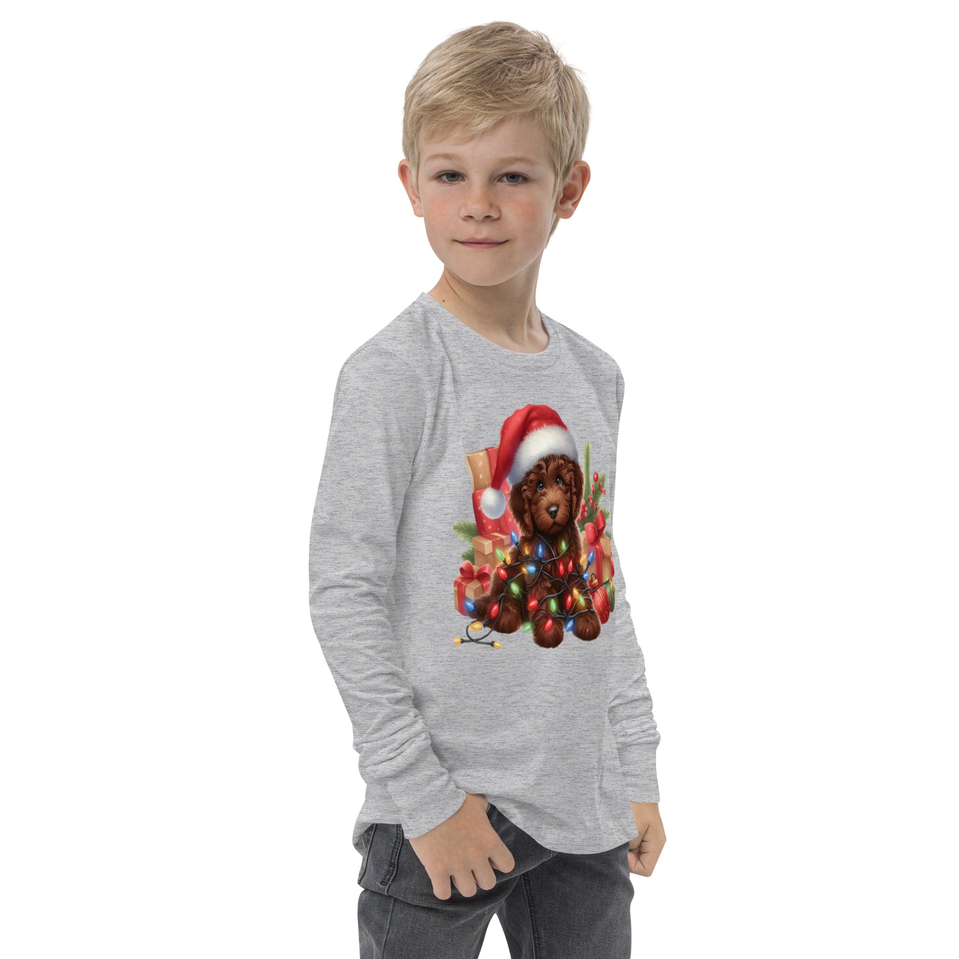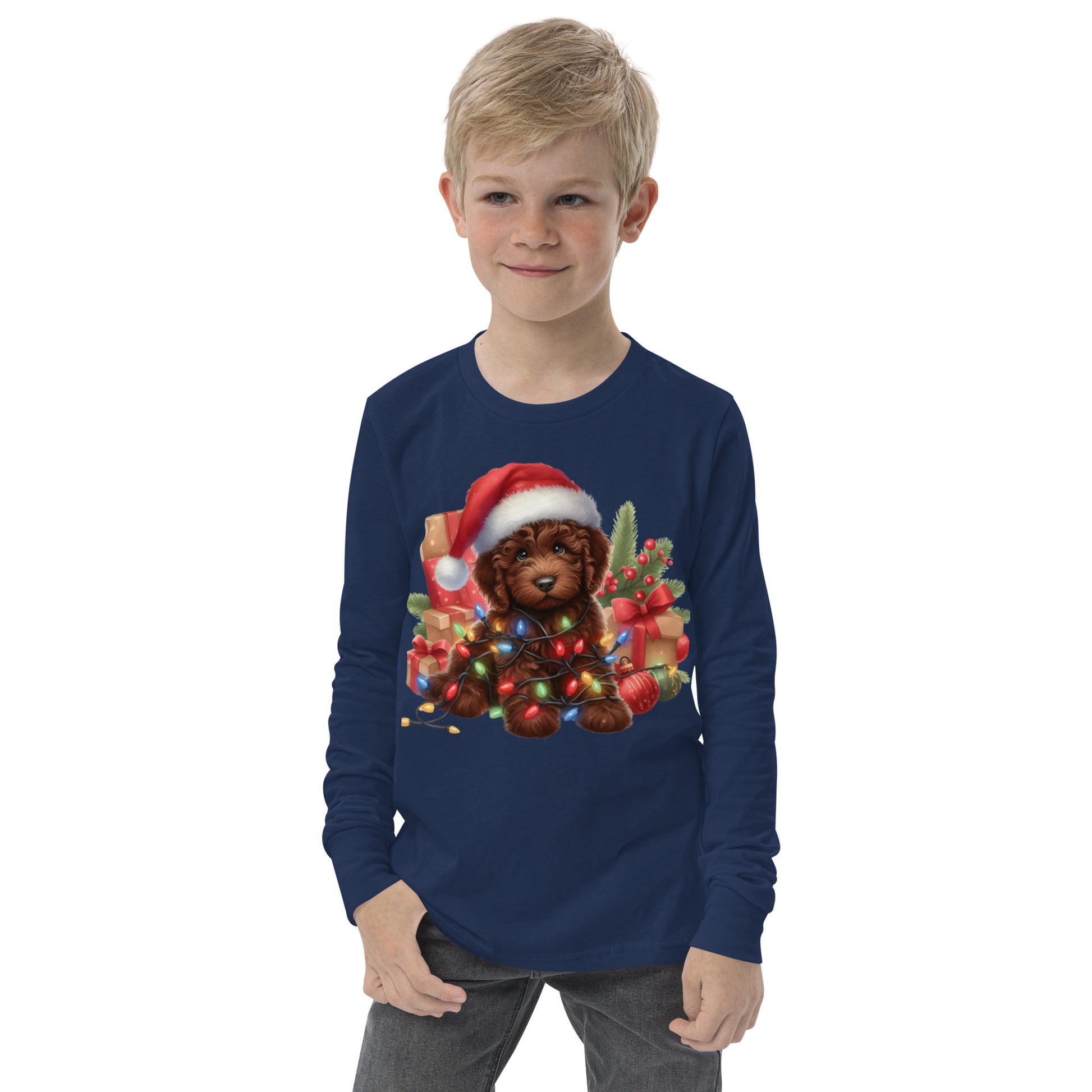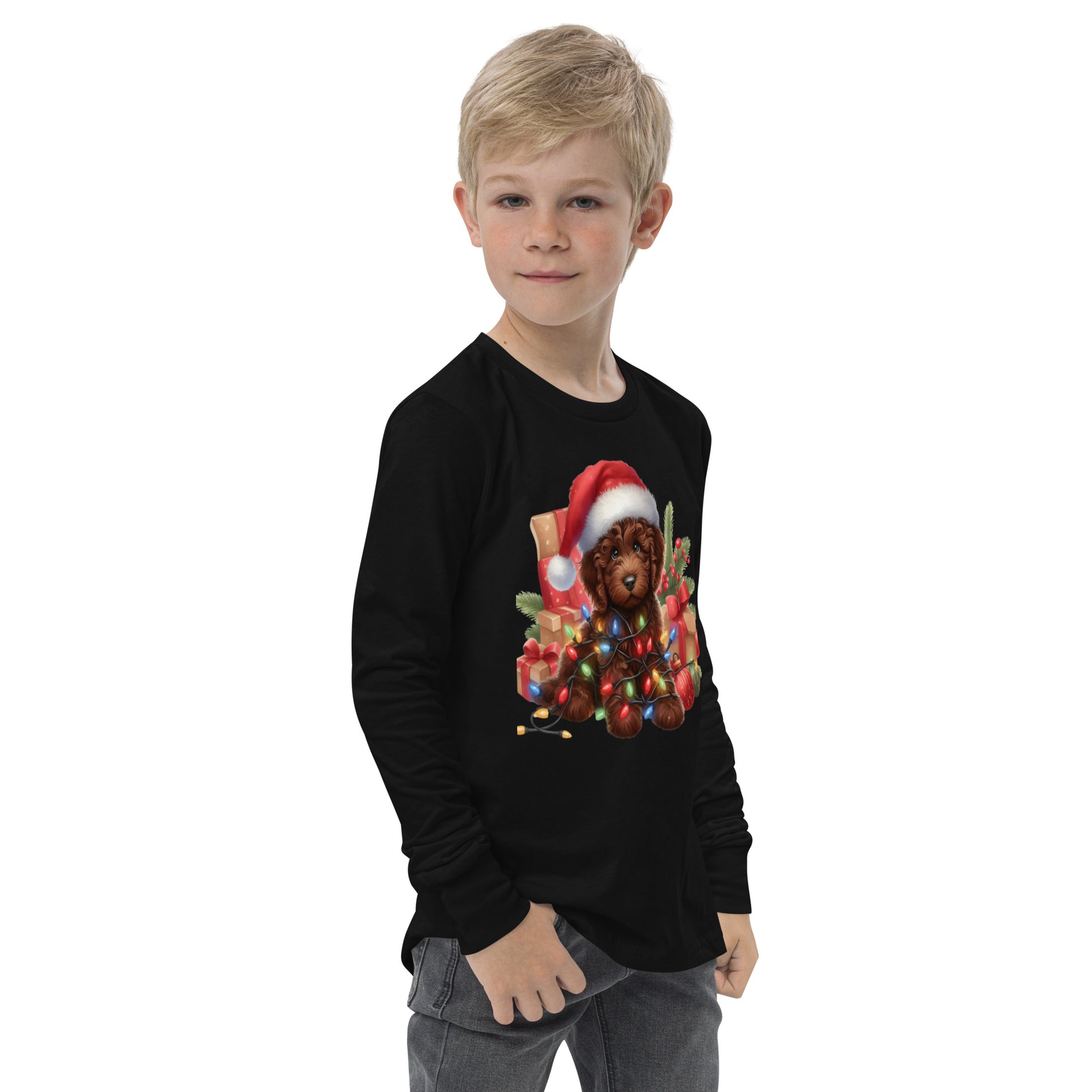 Chocolate Brown Christmas Light Doodle - Unisex Youth Long Sleeve T Shirt