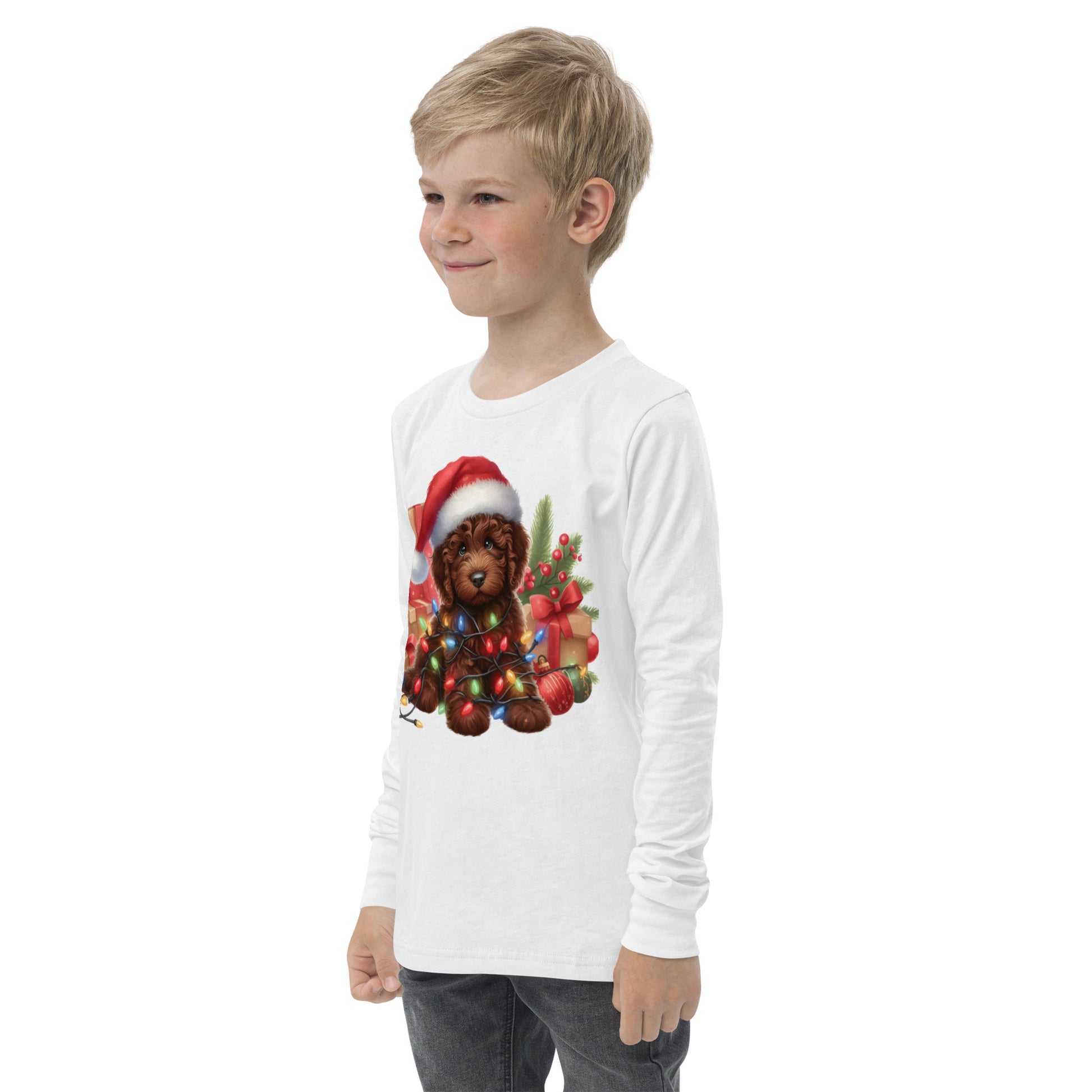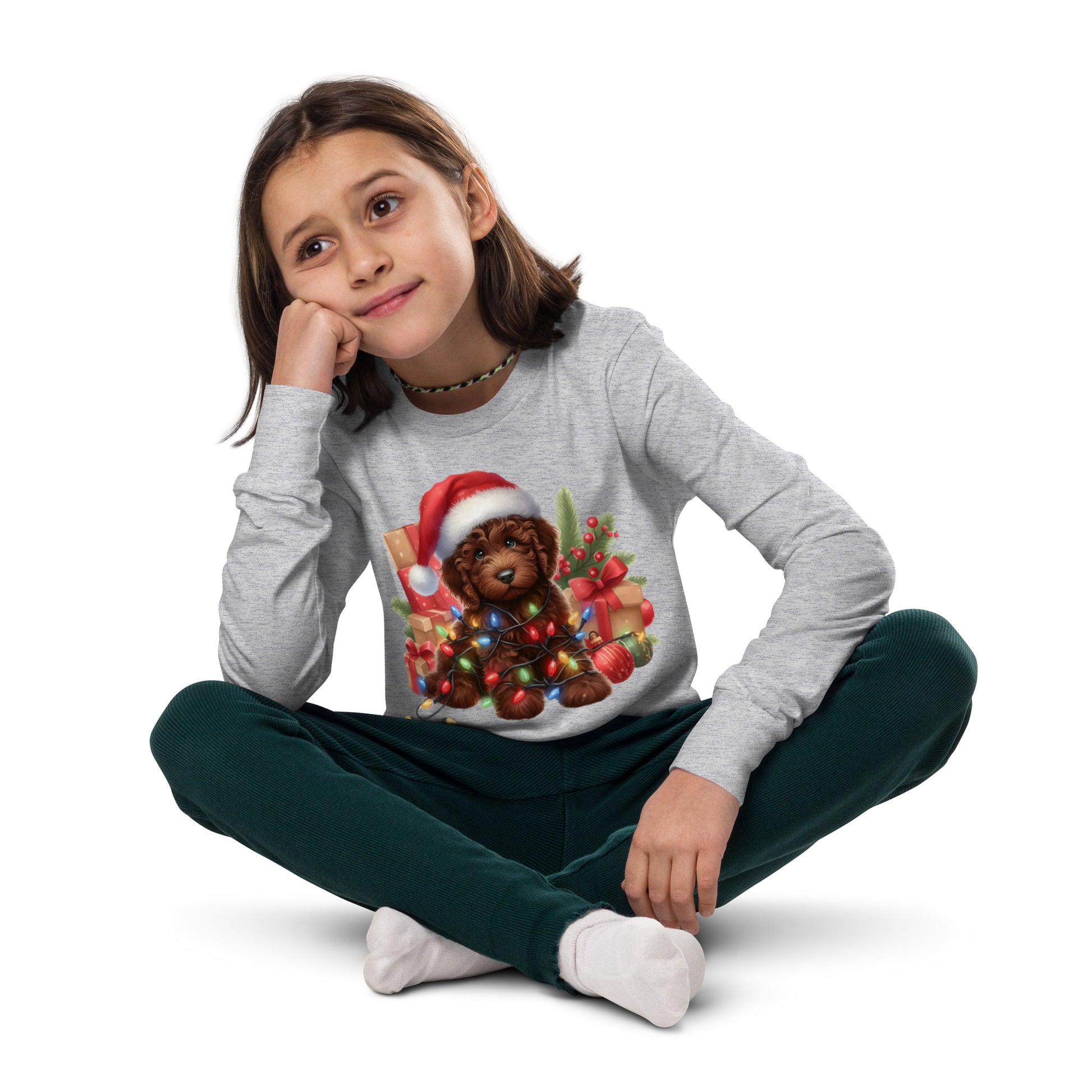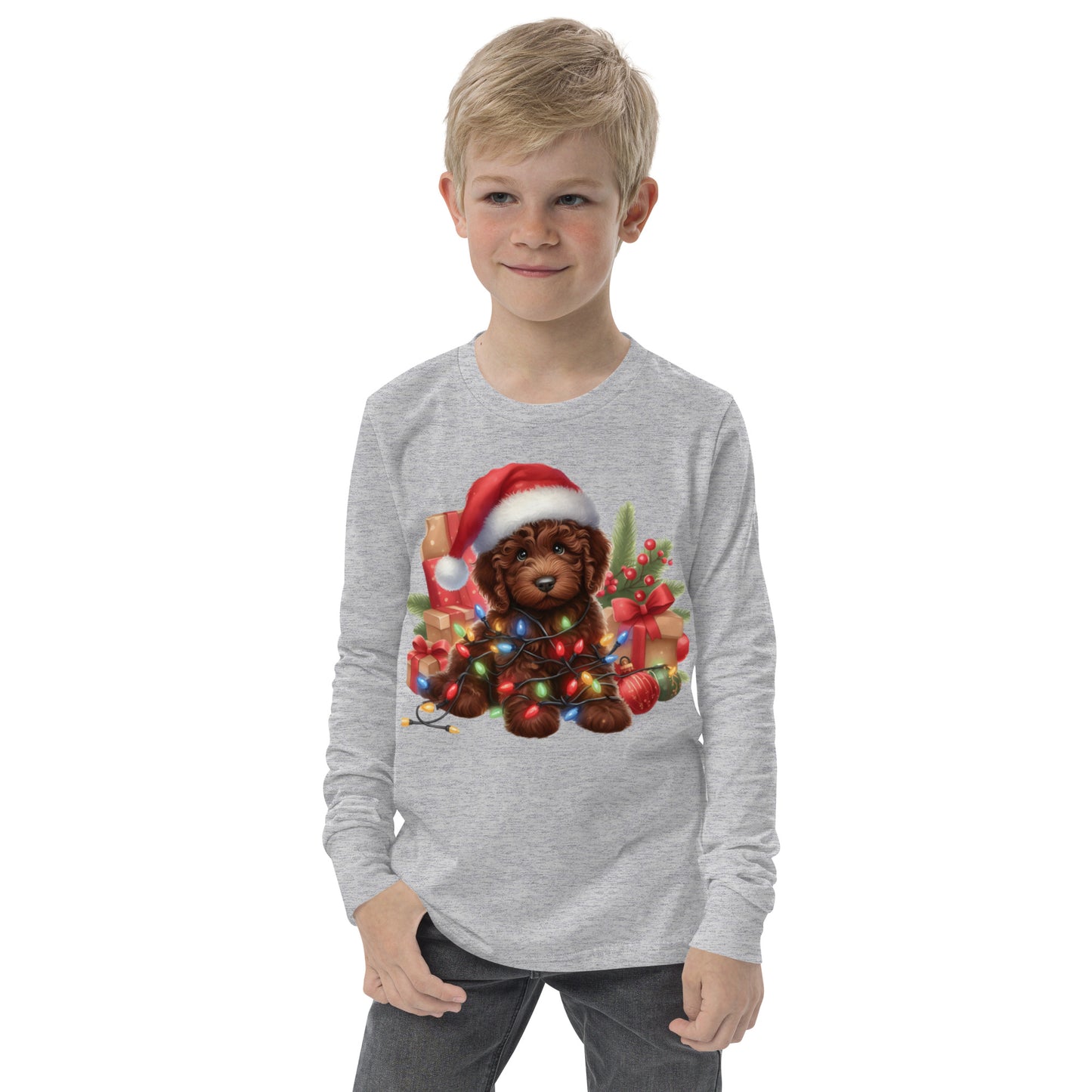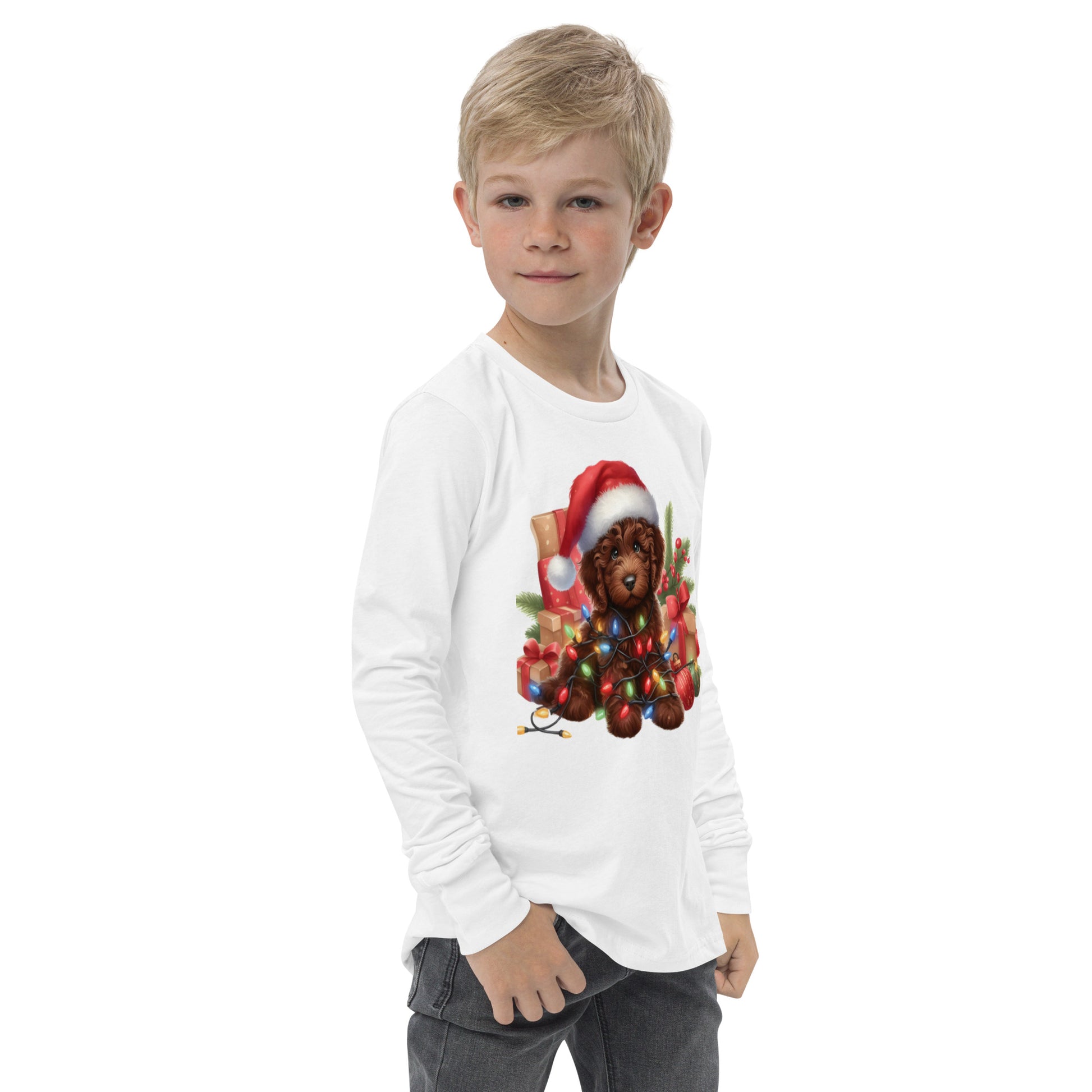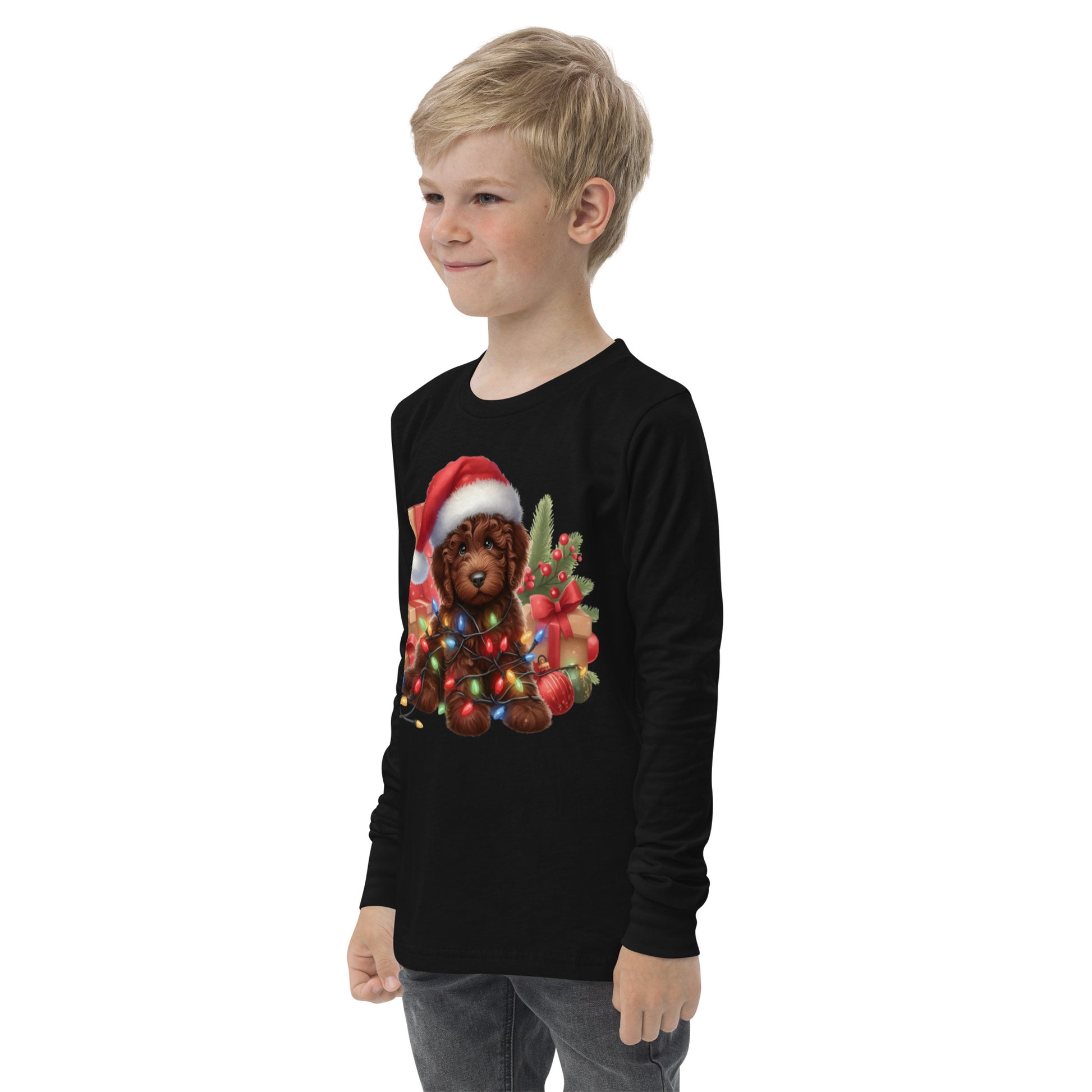Chocolate Brown Christmas Light Doodle - Unisex Youth Long Sleeve T Shirt