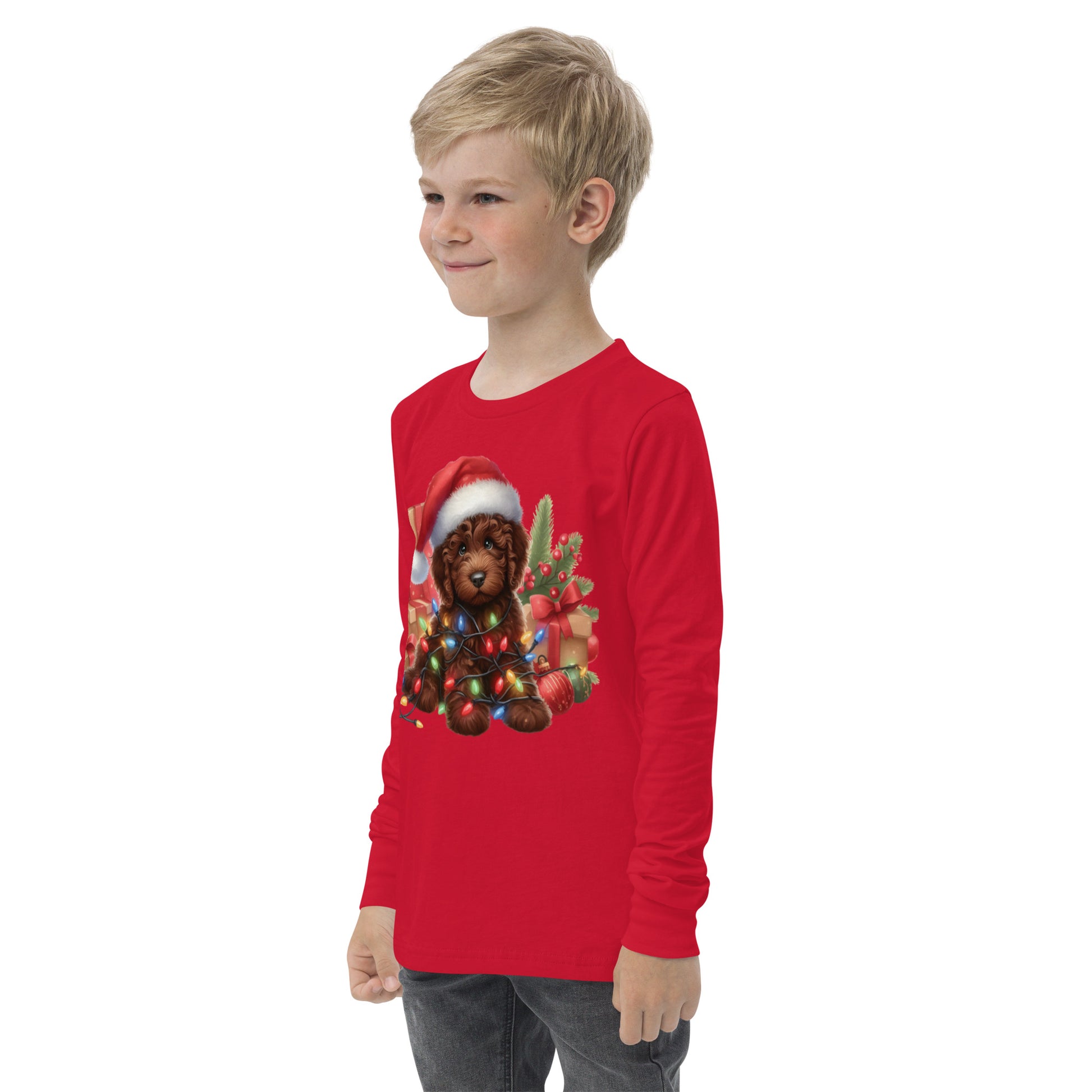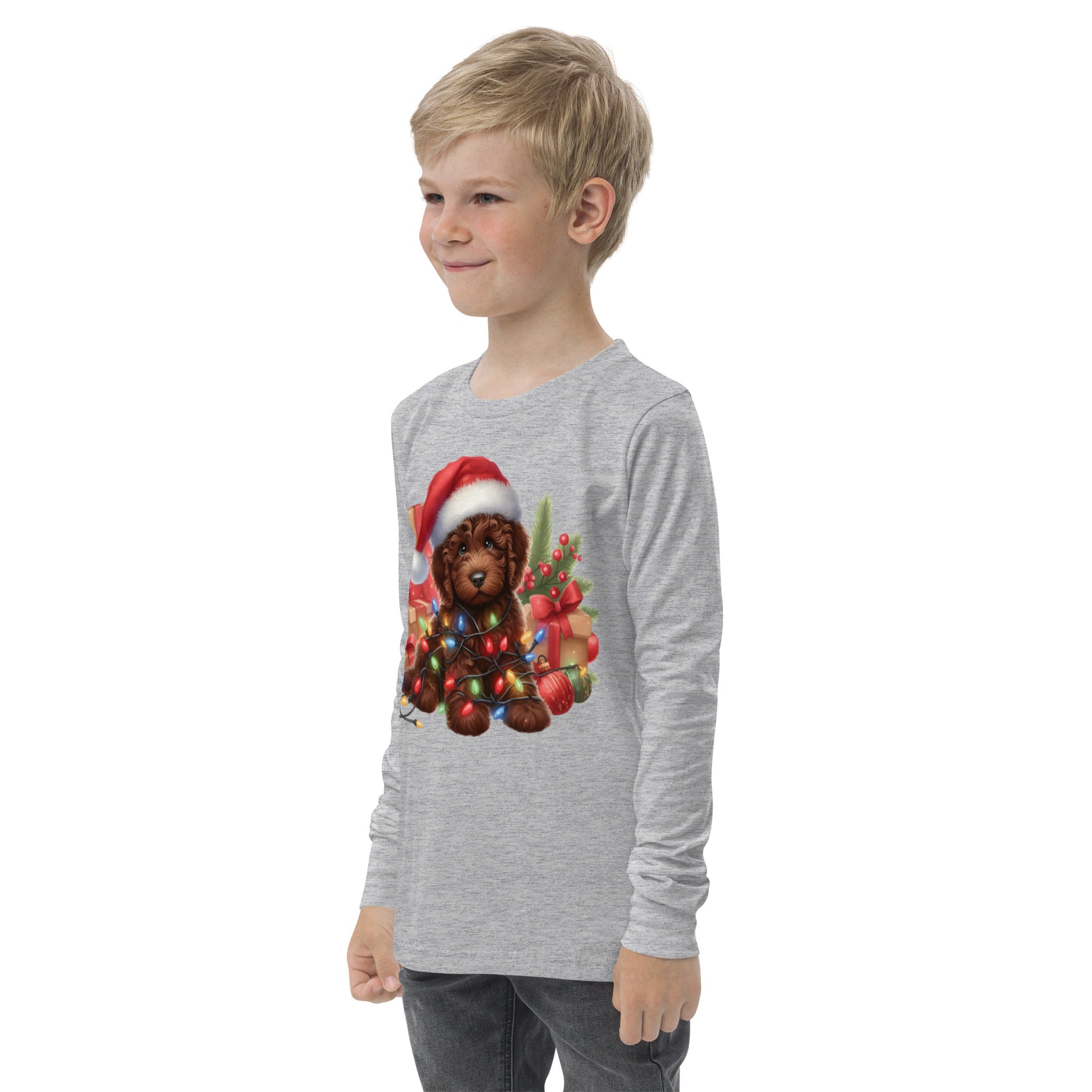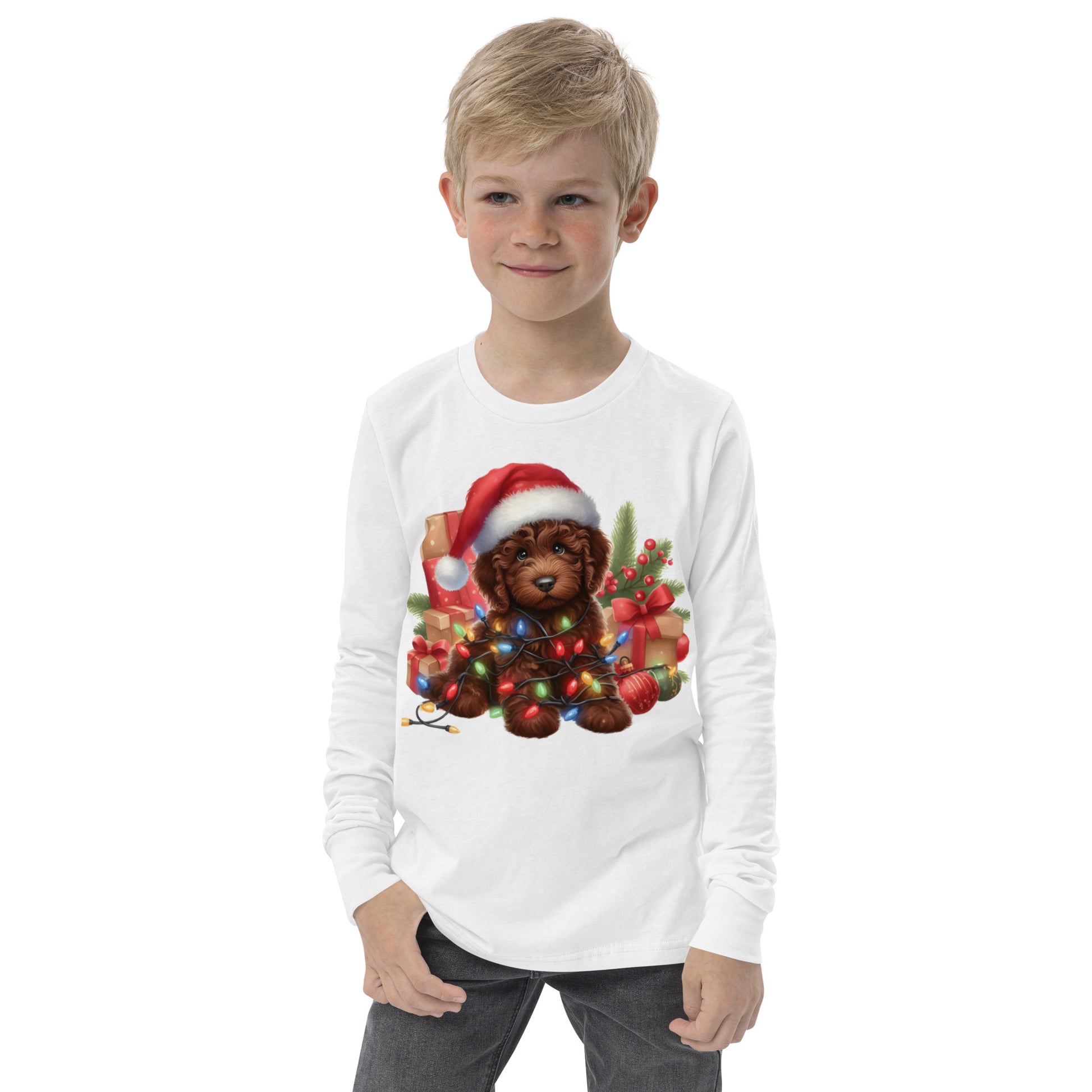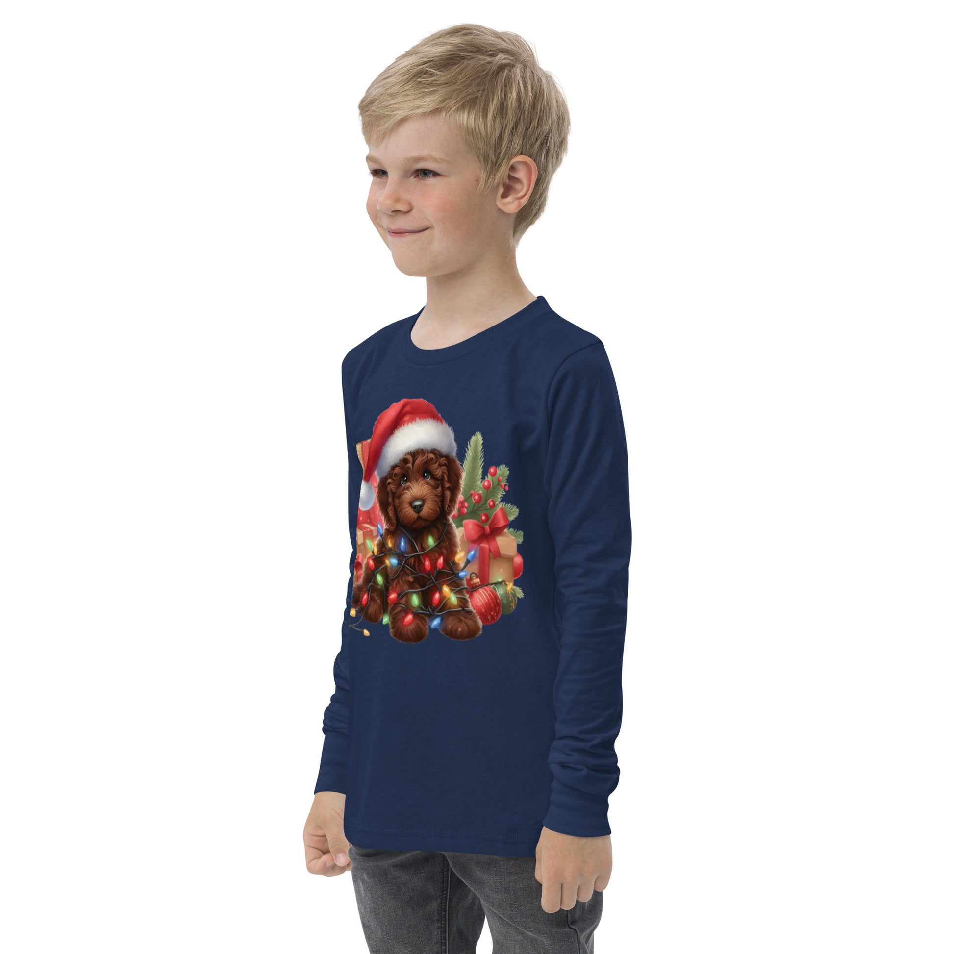 Chocolate Brown Christmas Light Doodle - Unisex Youth Long Sleeve T Shirt