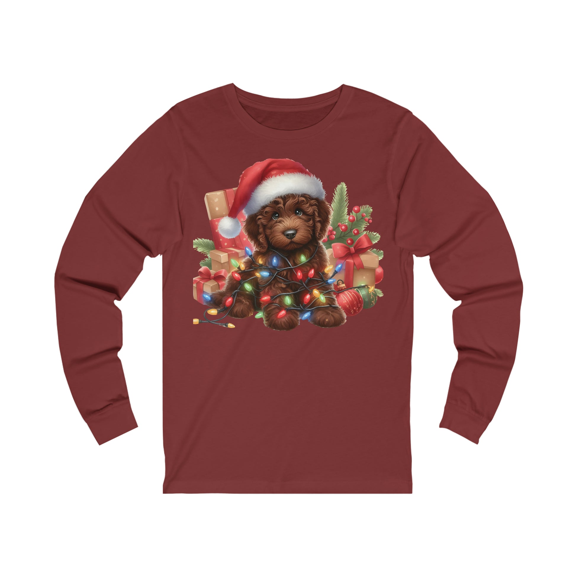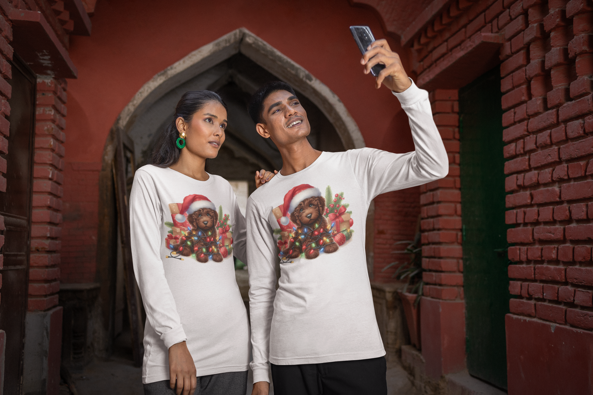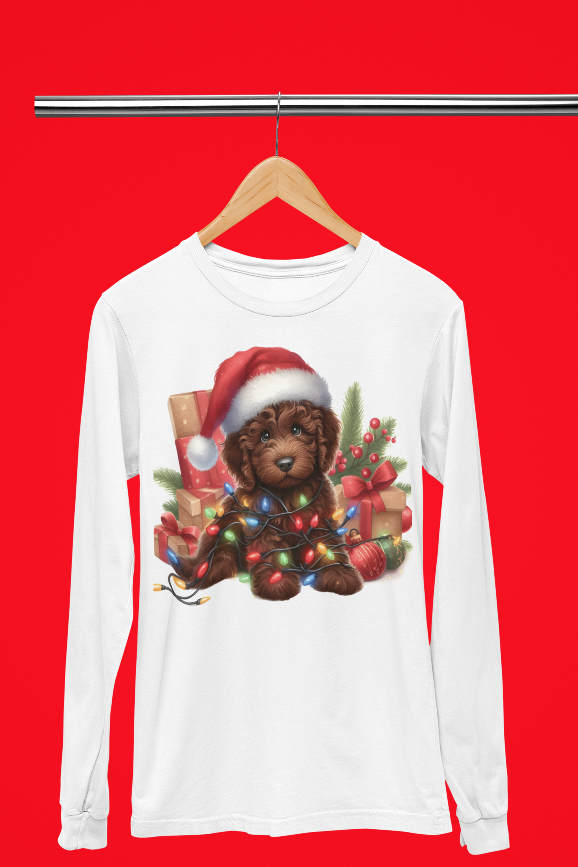 Chocolate Brown Christmas Doodle - Adult Unisex Long Sleeve T Shirt Bella + Canvas