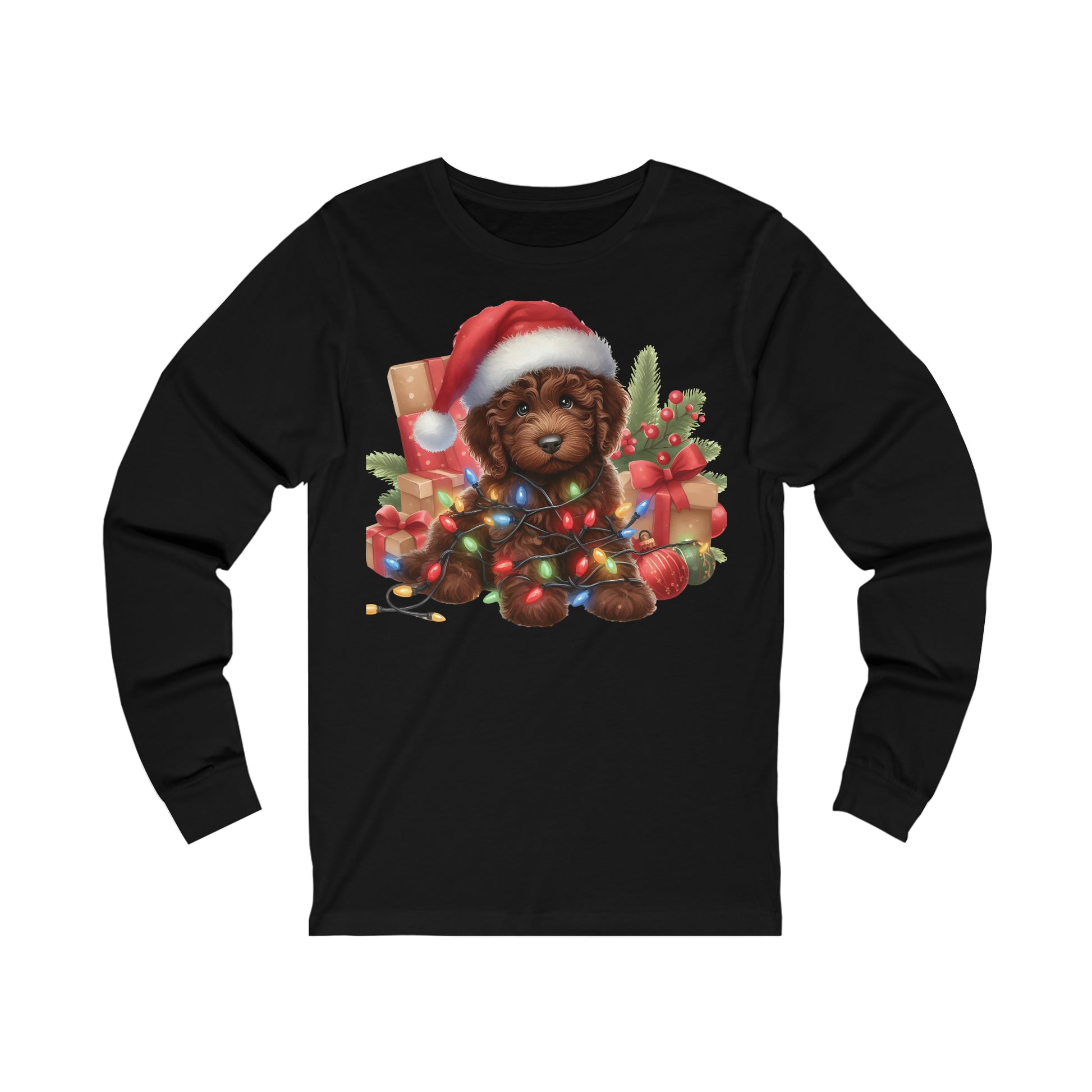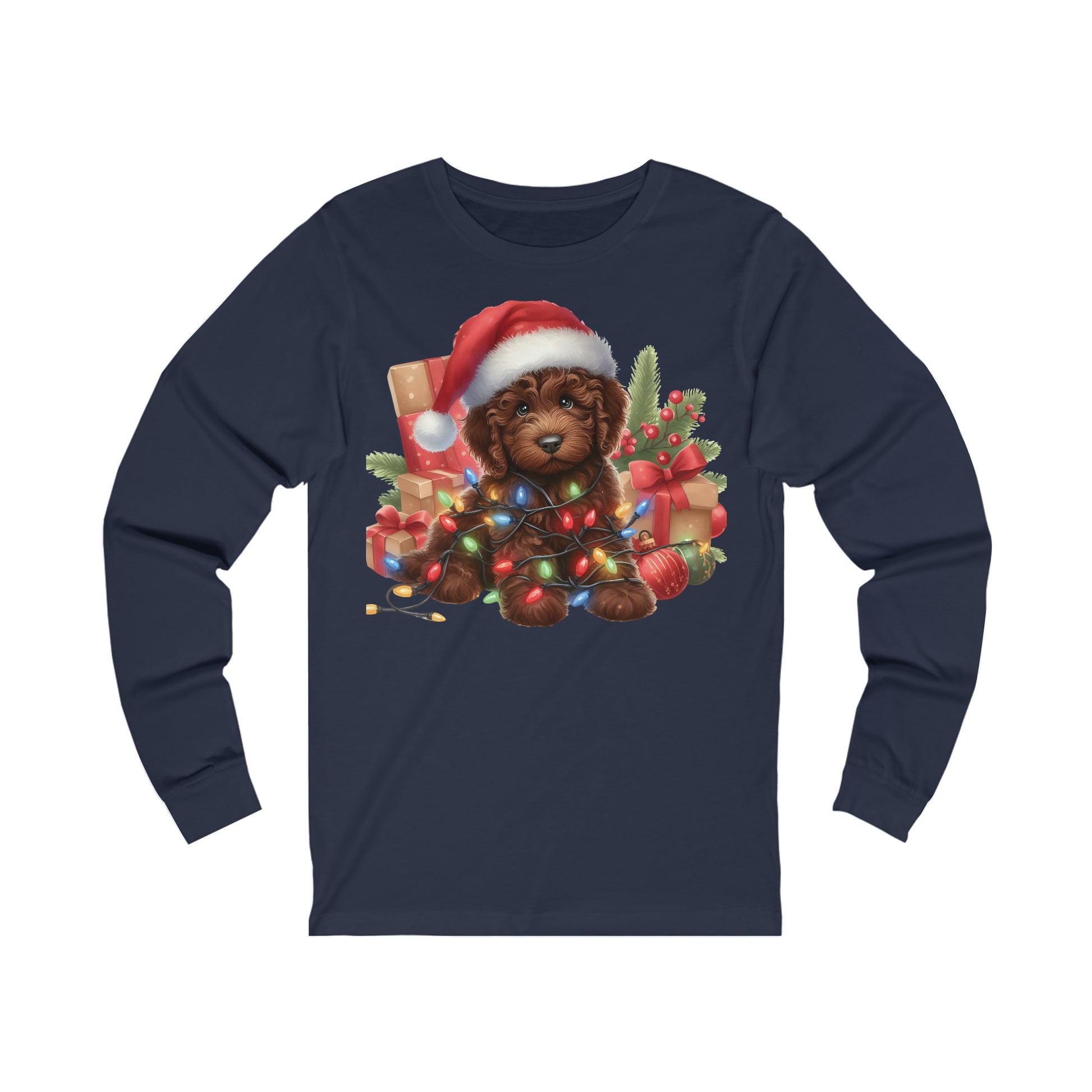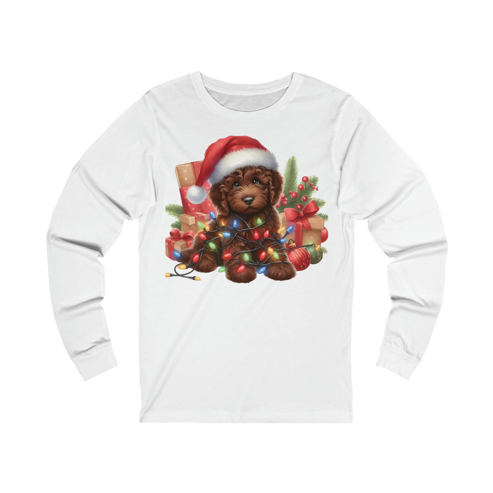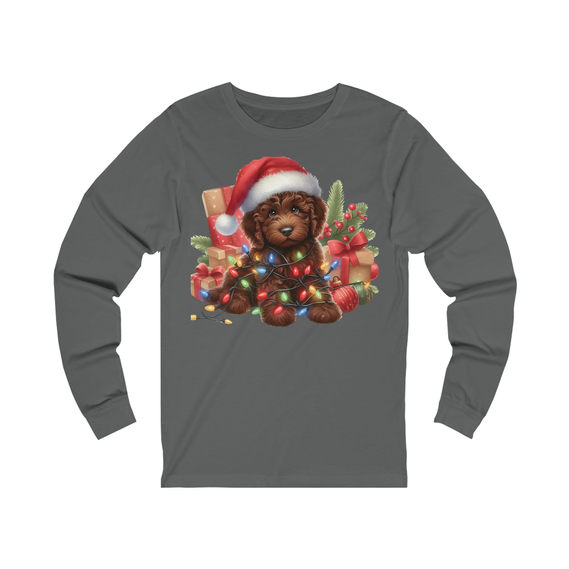 Chocolate Brown Christmas Doodle - Adult Unisex Long Sleeve T Shirt Bella + Canvas