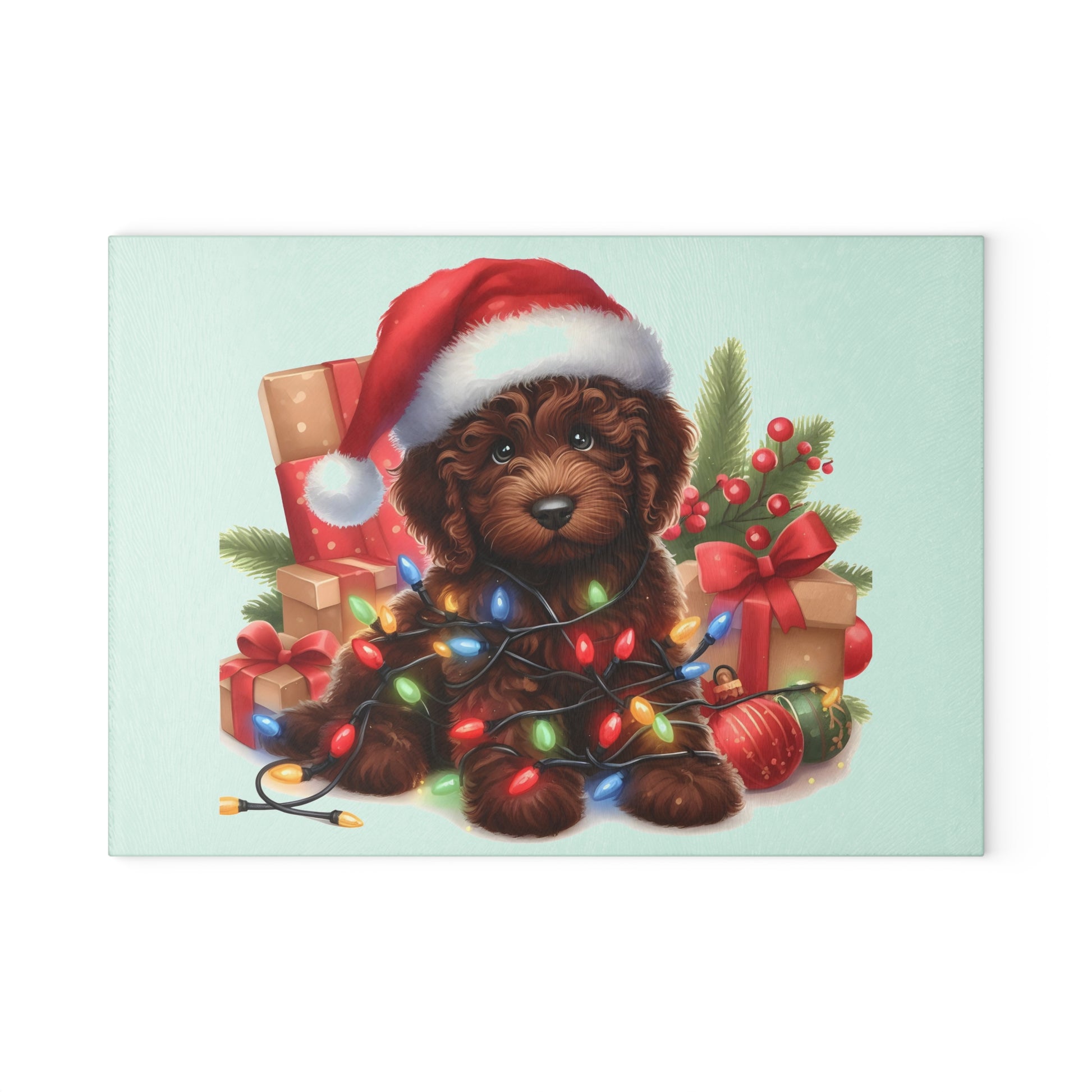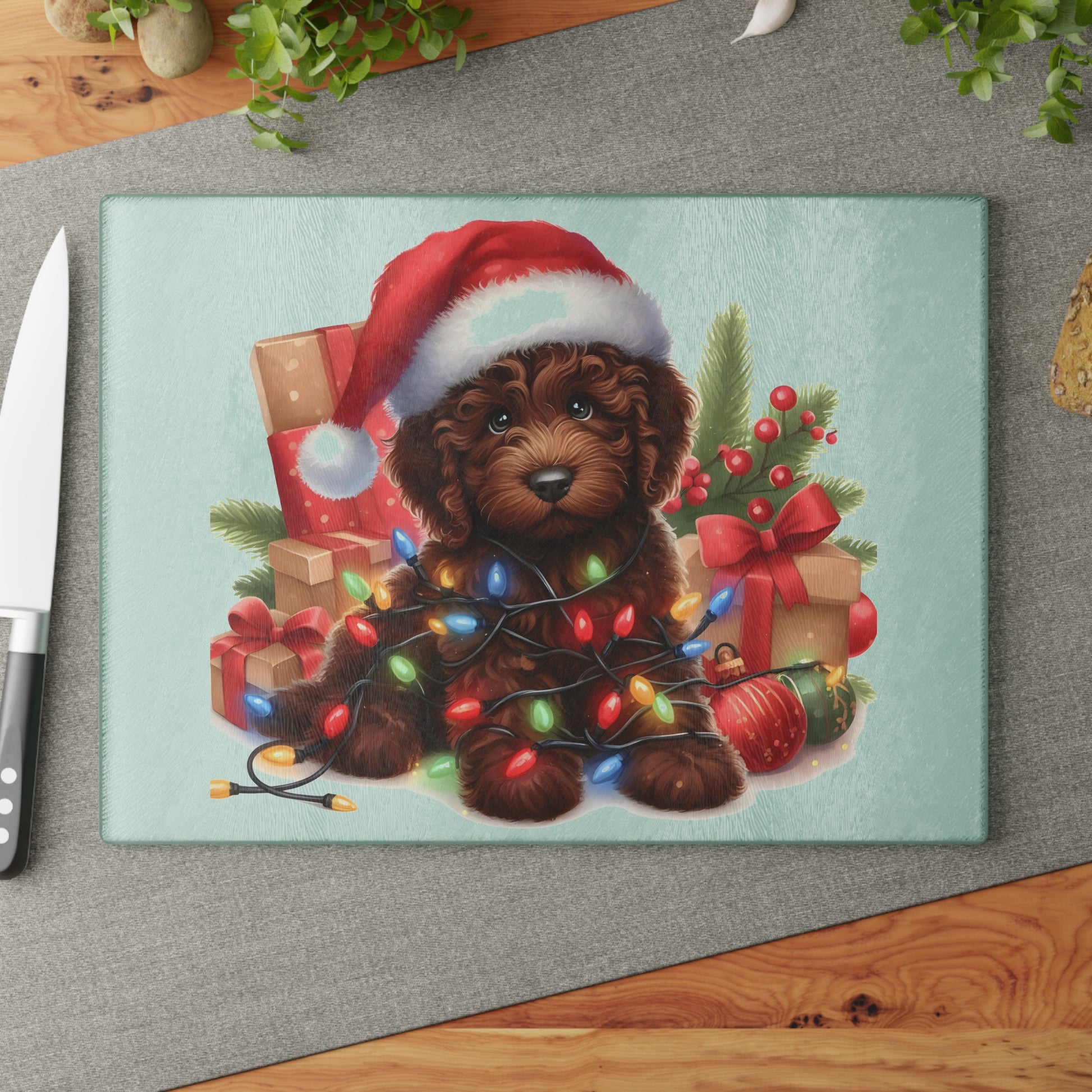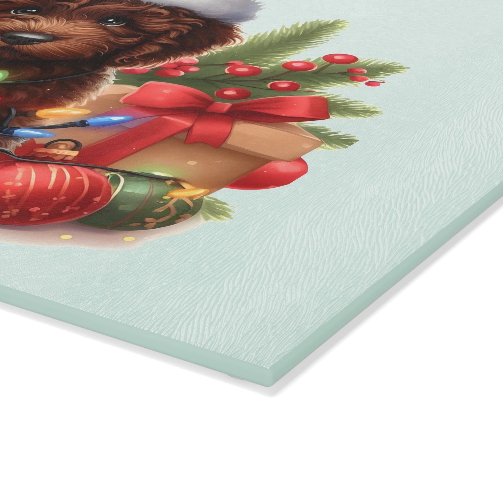 Christmas Brown Chocolate Doodle - Glass Cutting Board