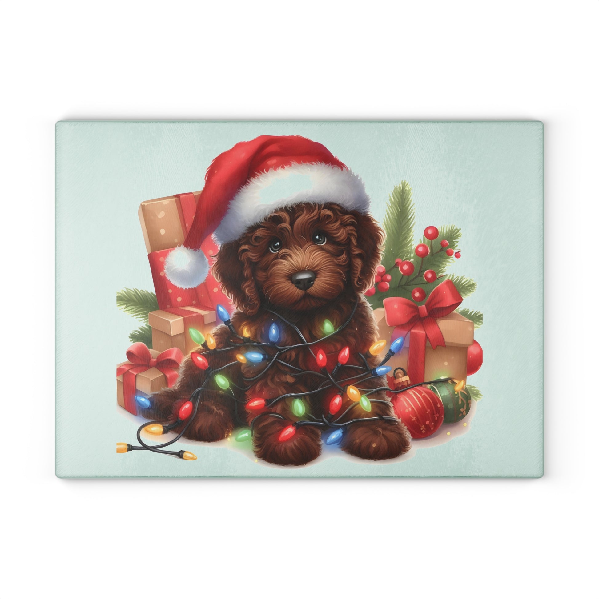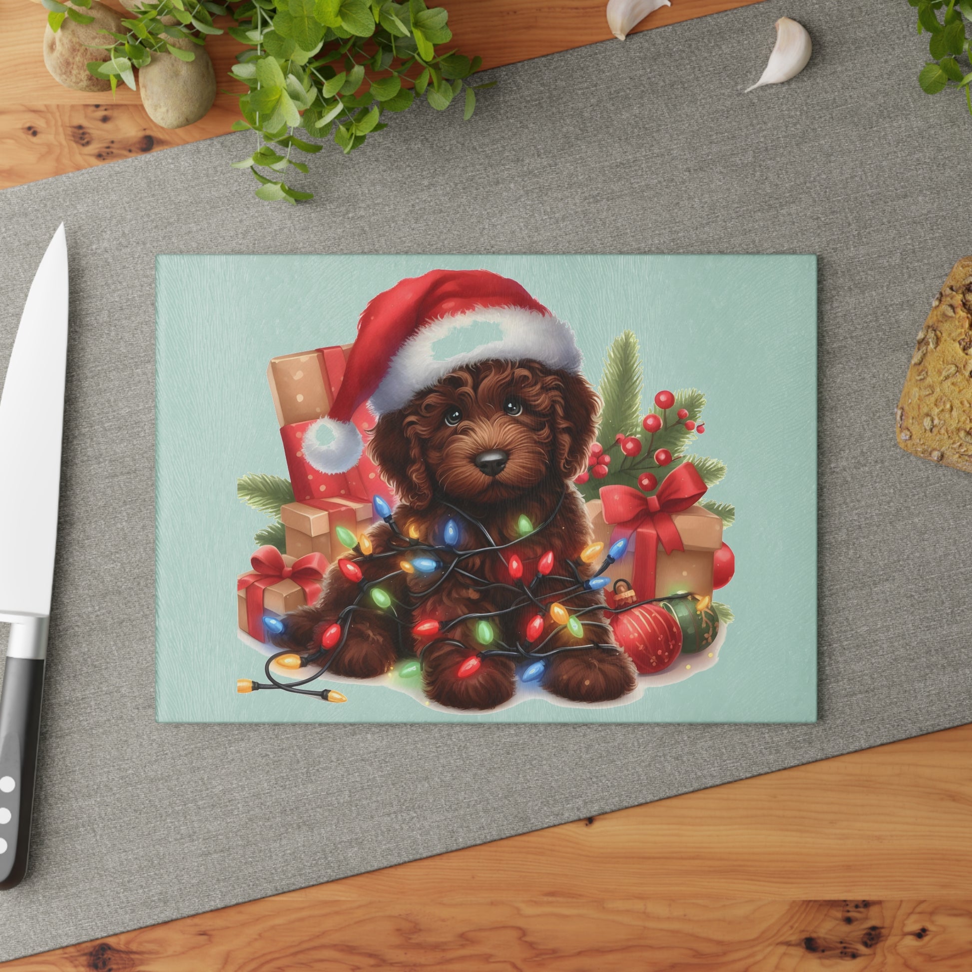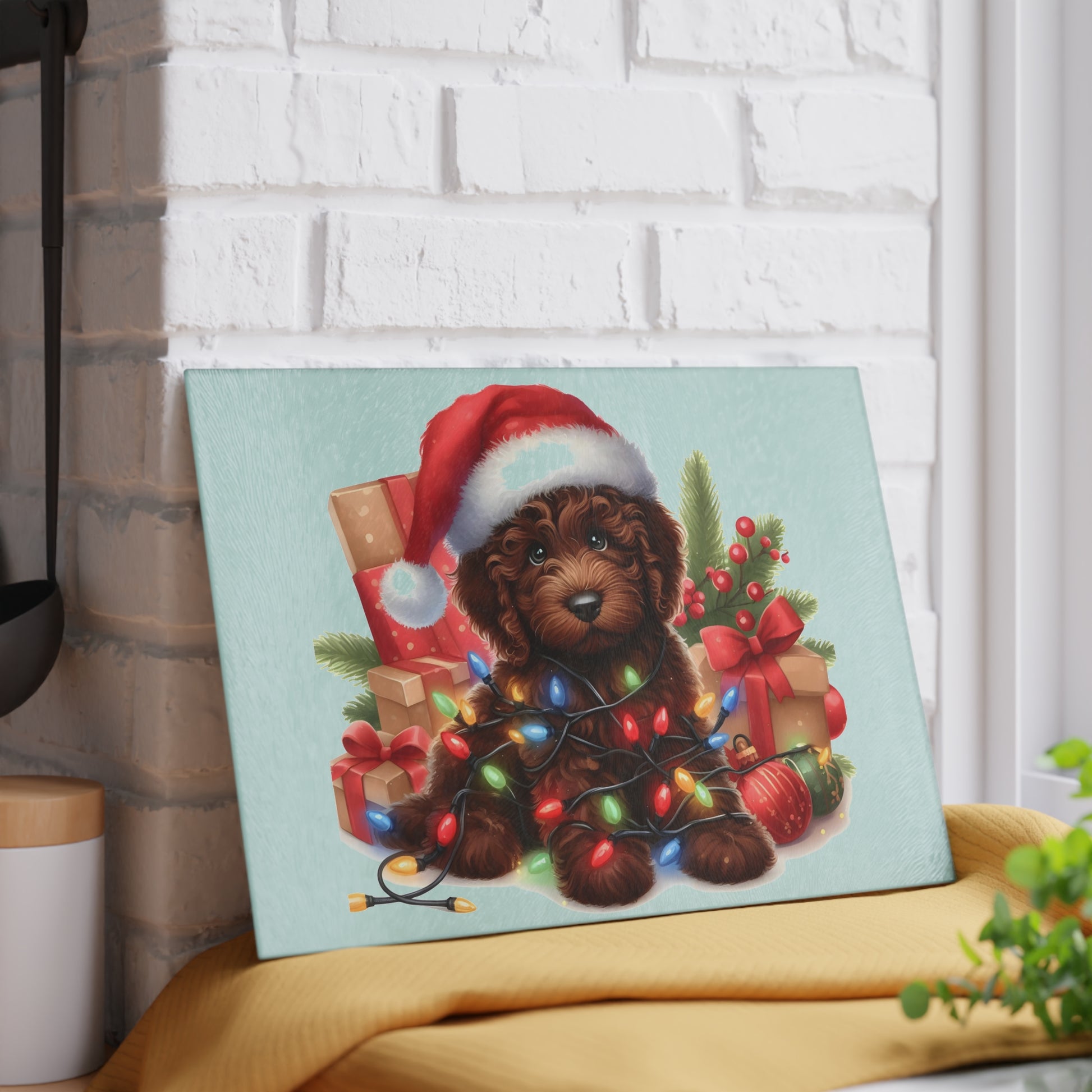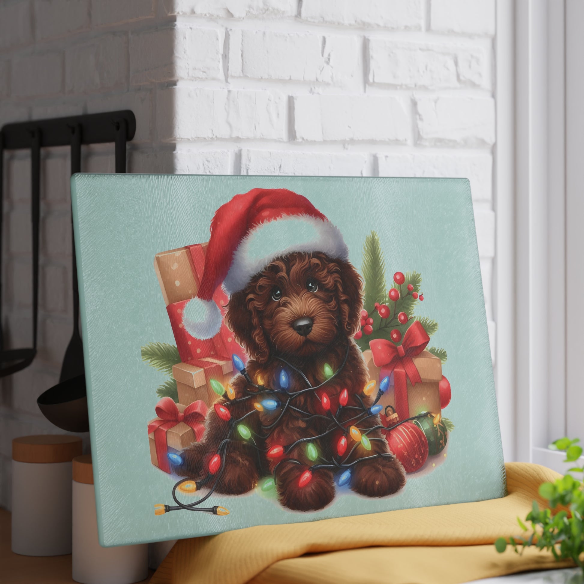 Christmas Brown Chocolate Doodle - Glass Cutting Board