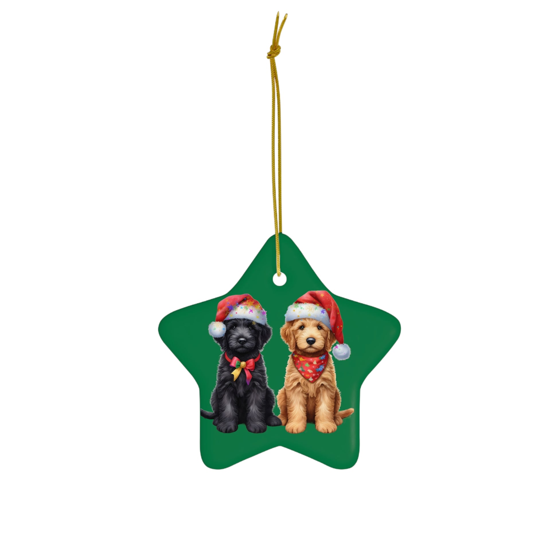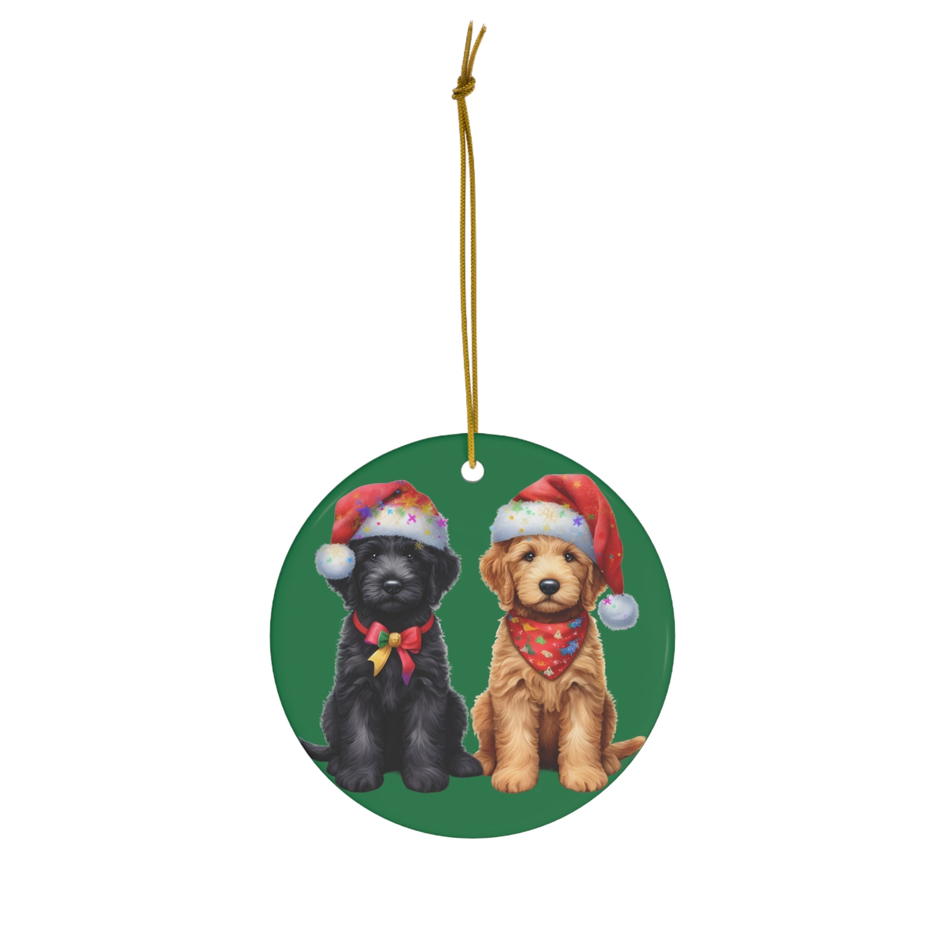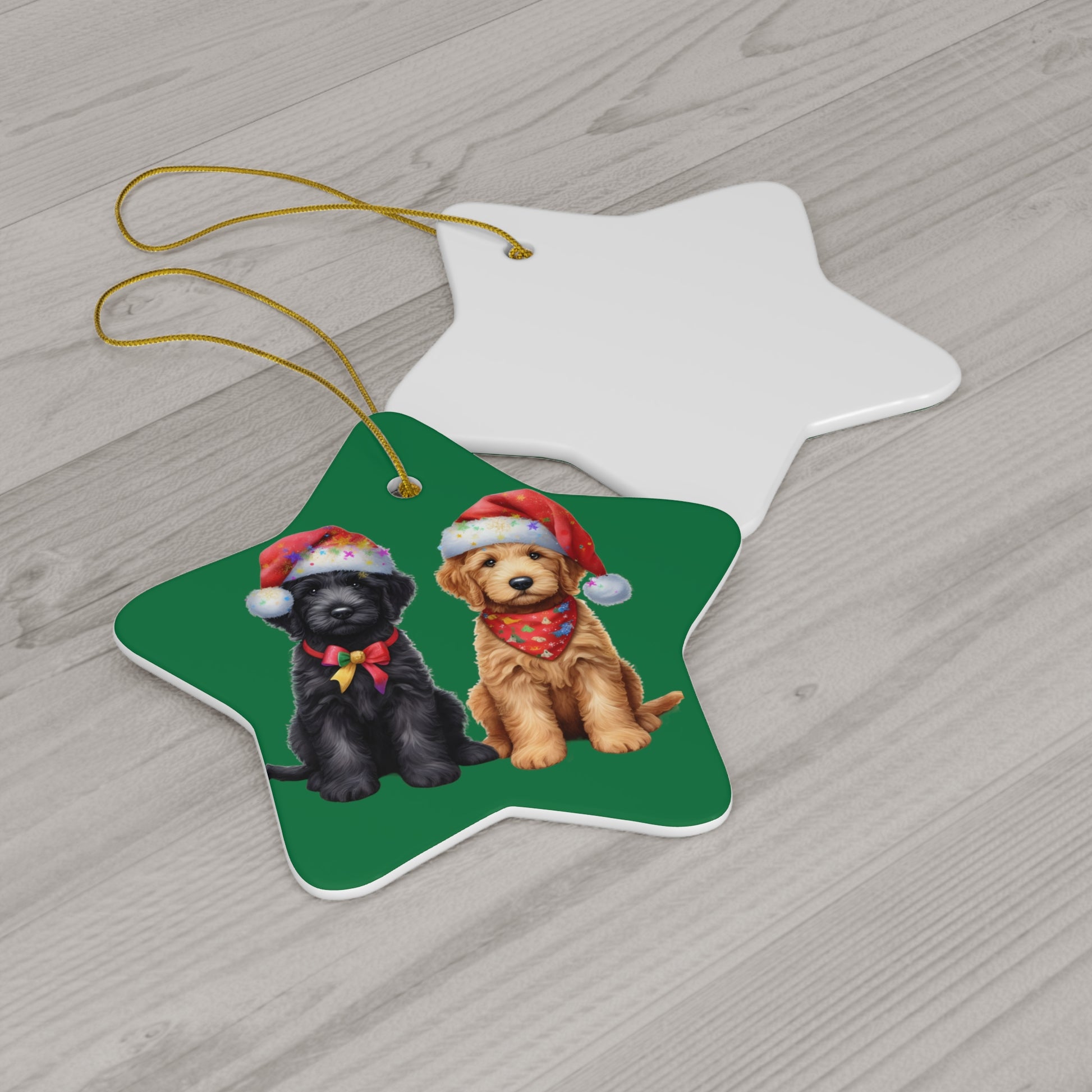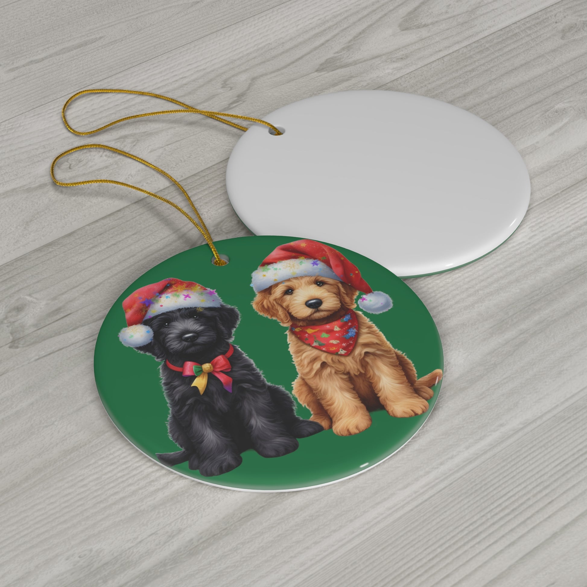 Christmas Doodle Puppies Ceramic Ornament, 2 Shapes