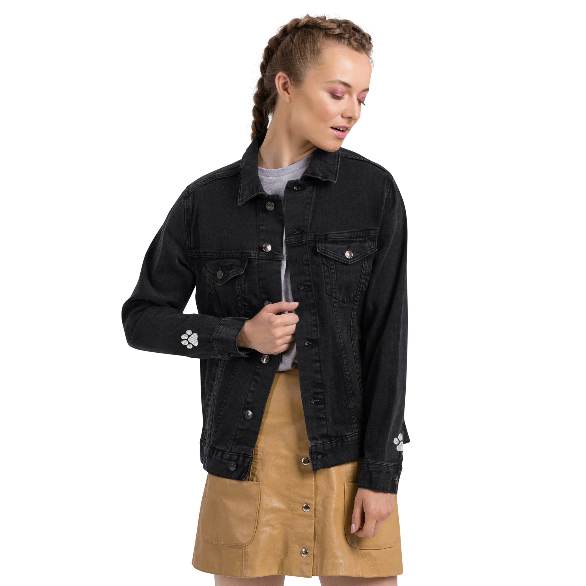Doodle Embroidered - Unisex Denim Jacket - Paw Prints on Sleeves!