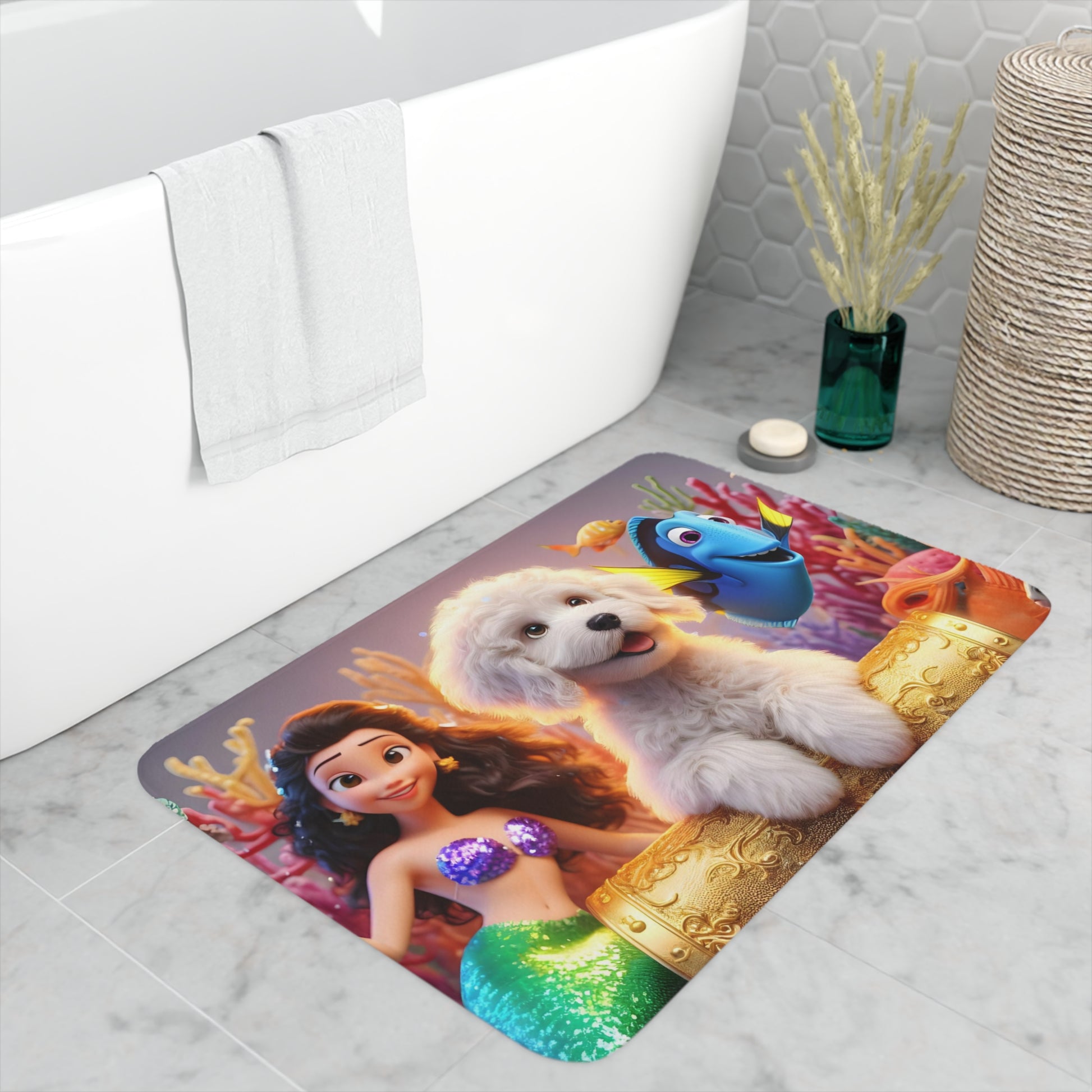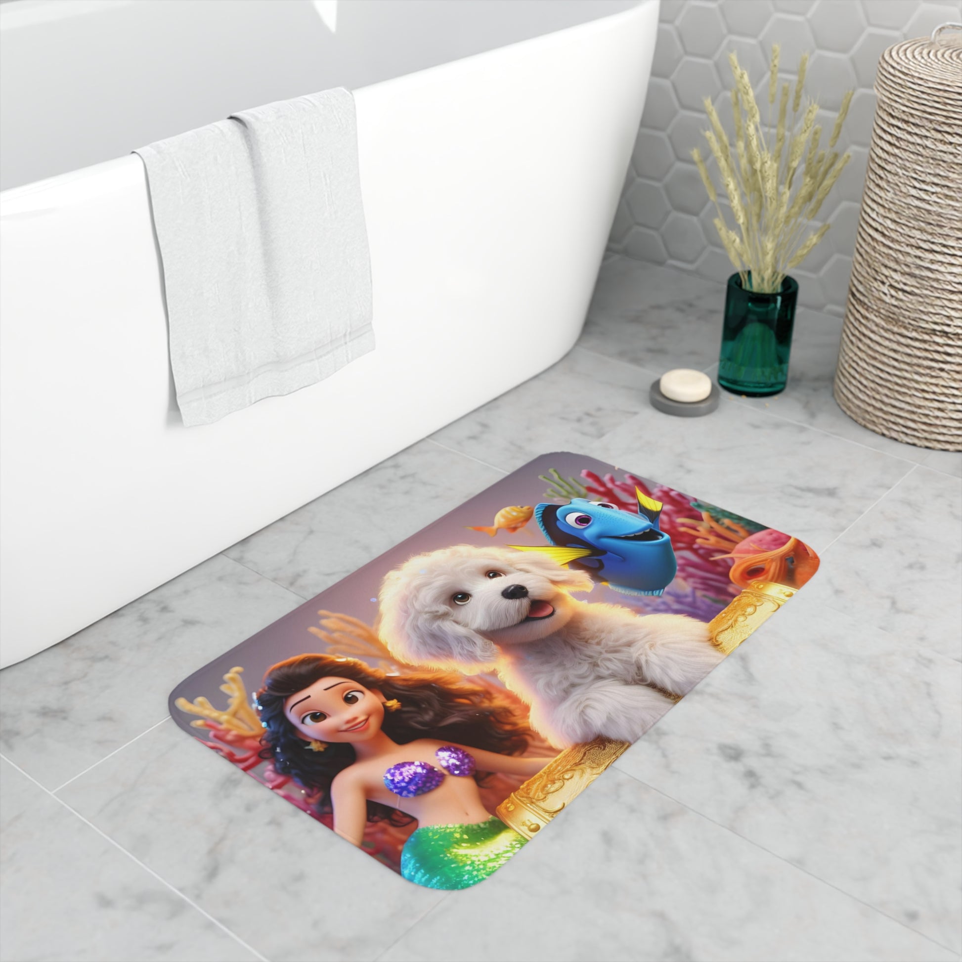 Doodle Mermaid Underwater Memory Foam Bath Mat