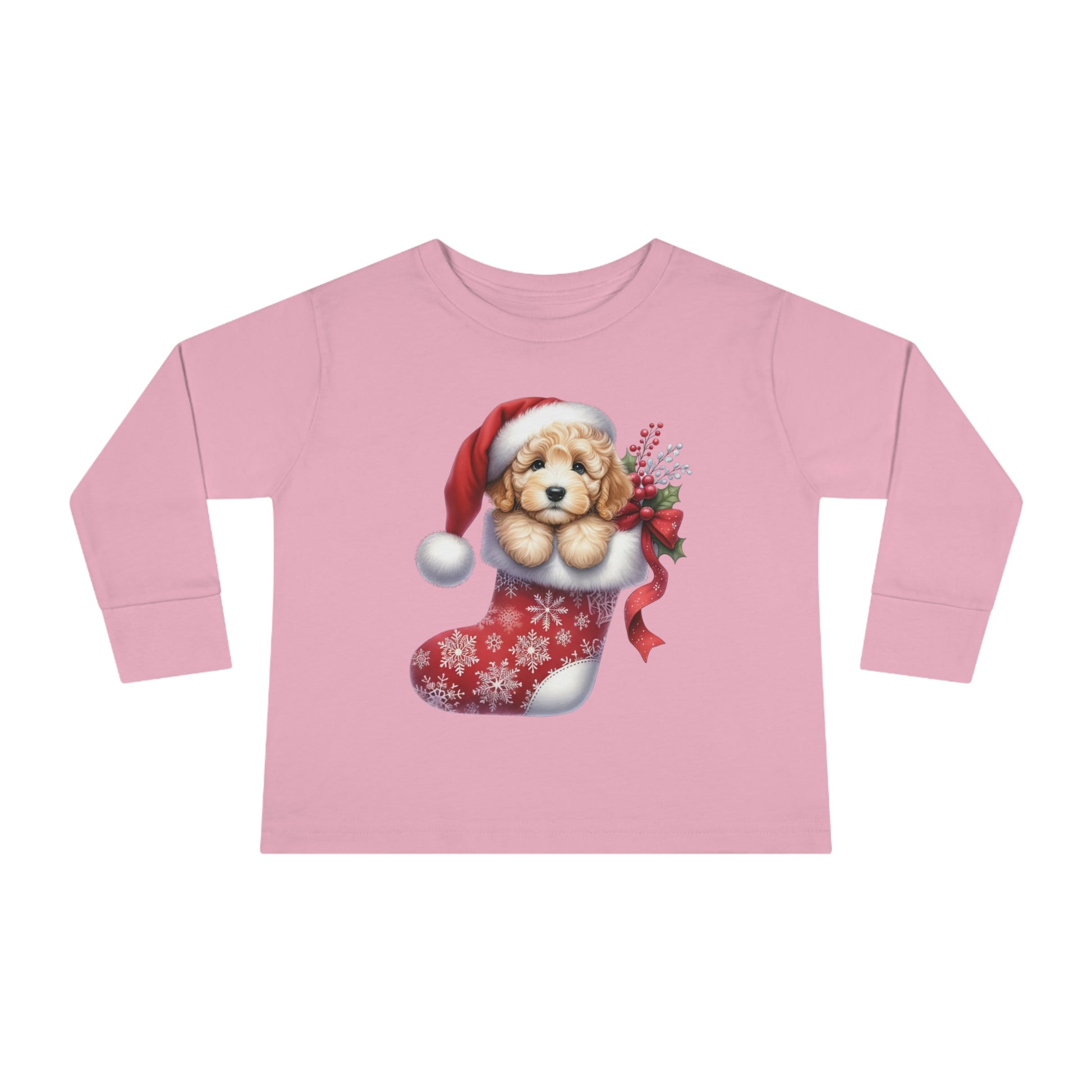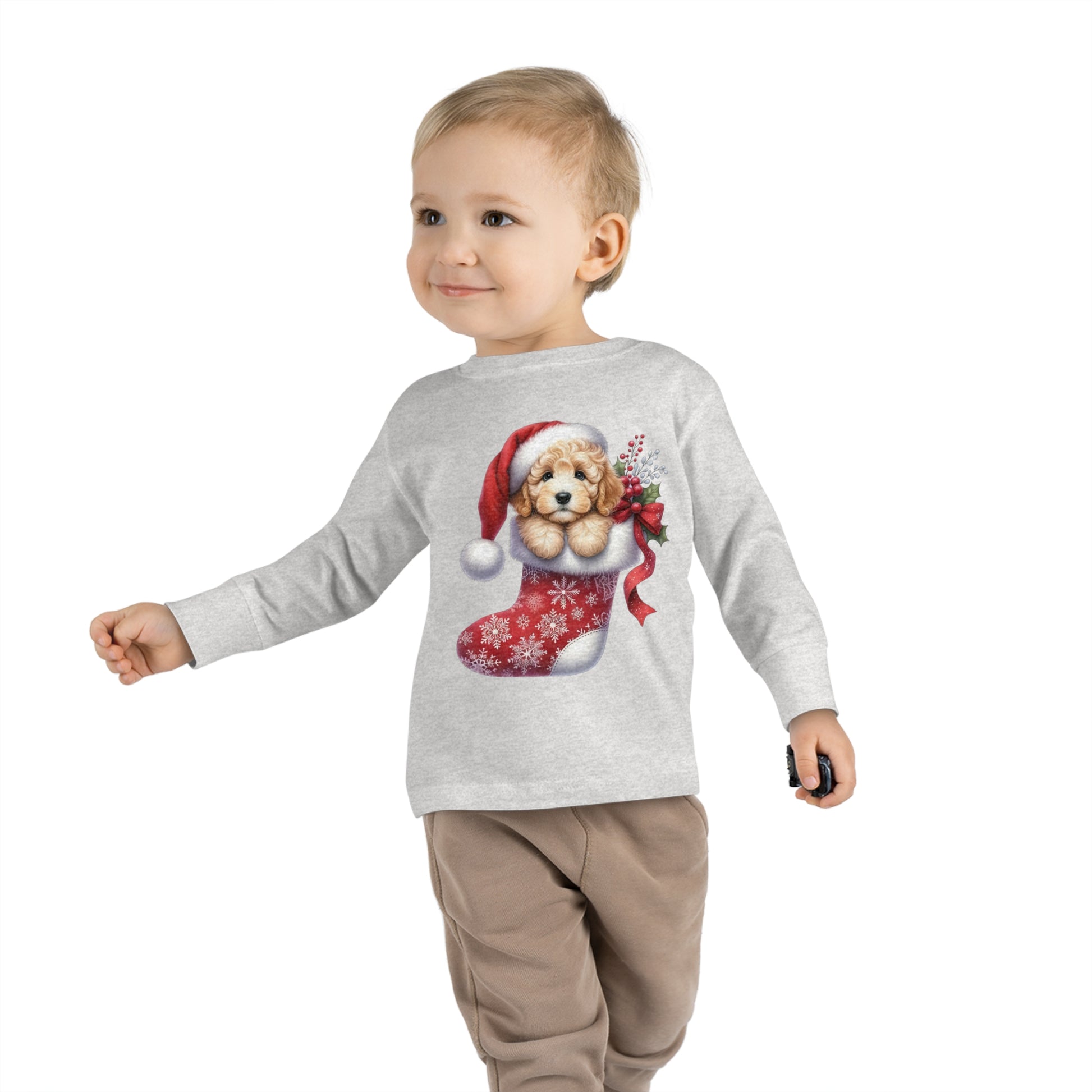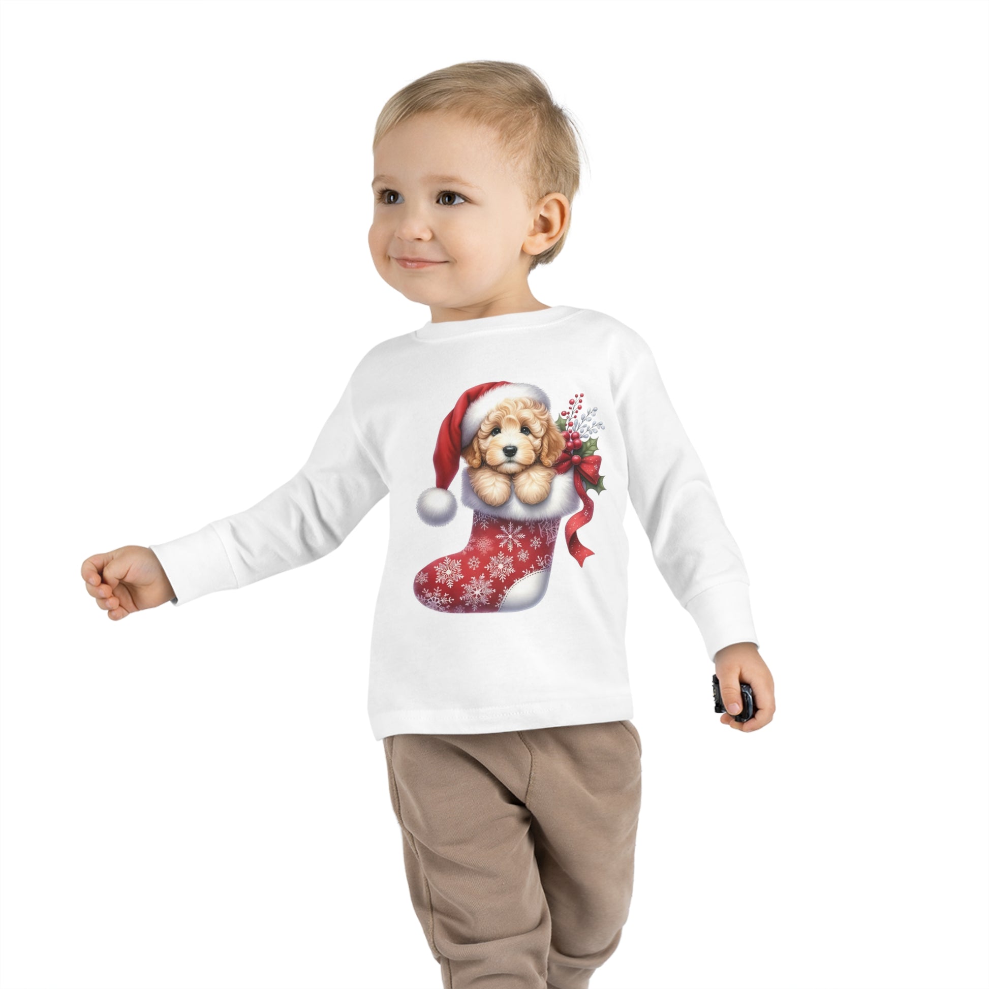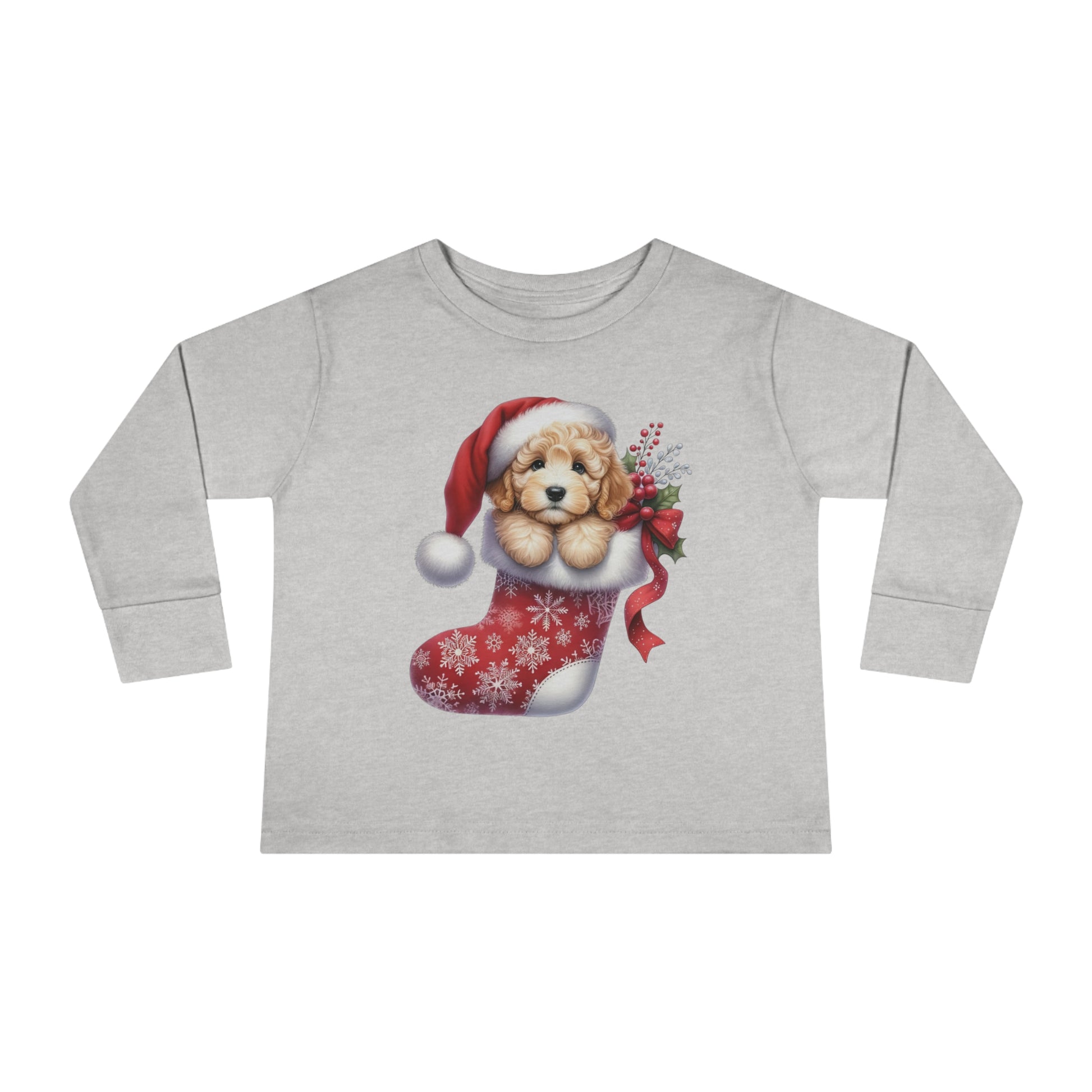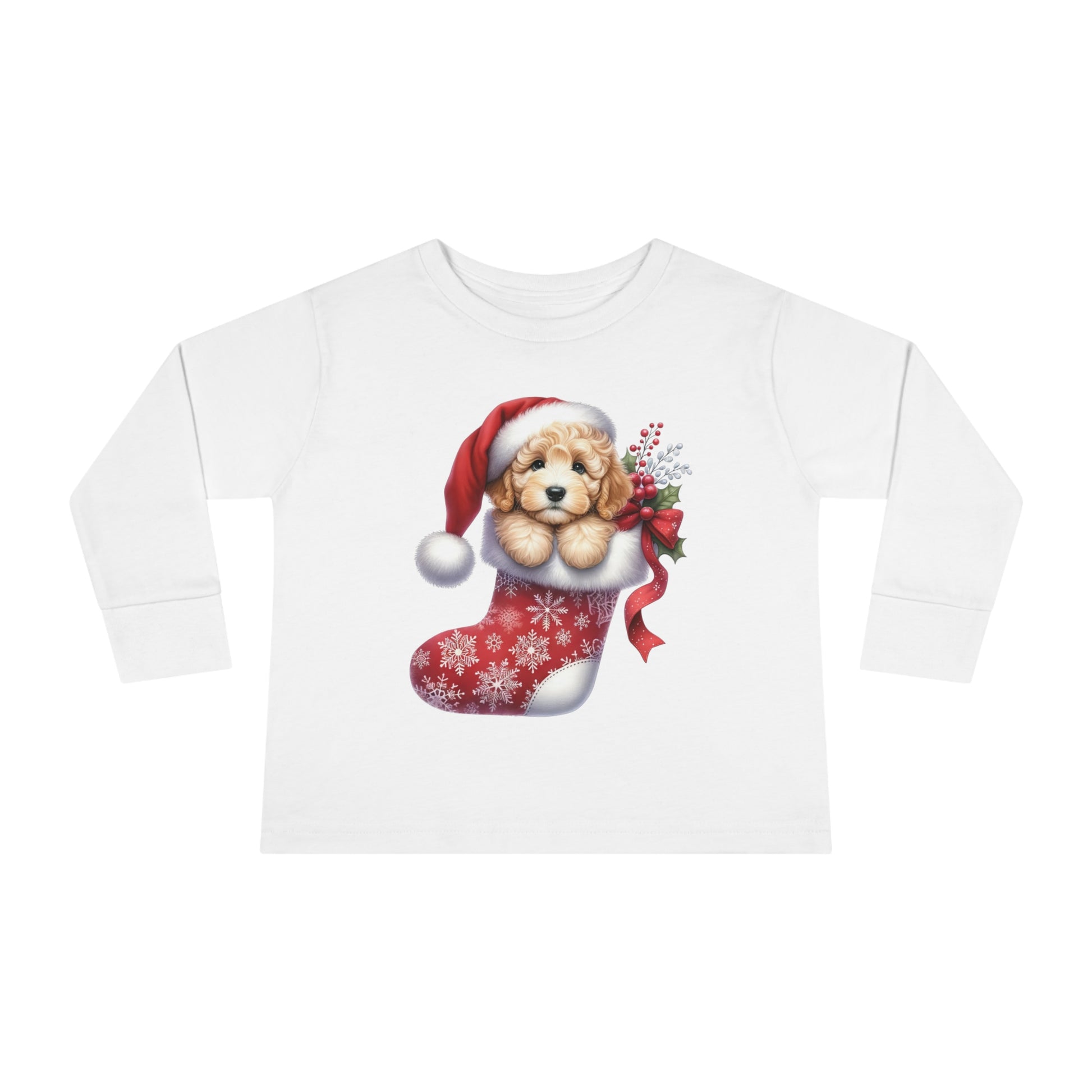 Doodle Puppy Christmas Stocking Toddler Long Sleeve Tee