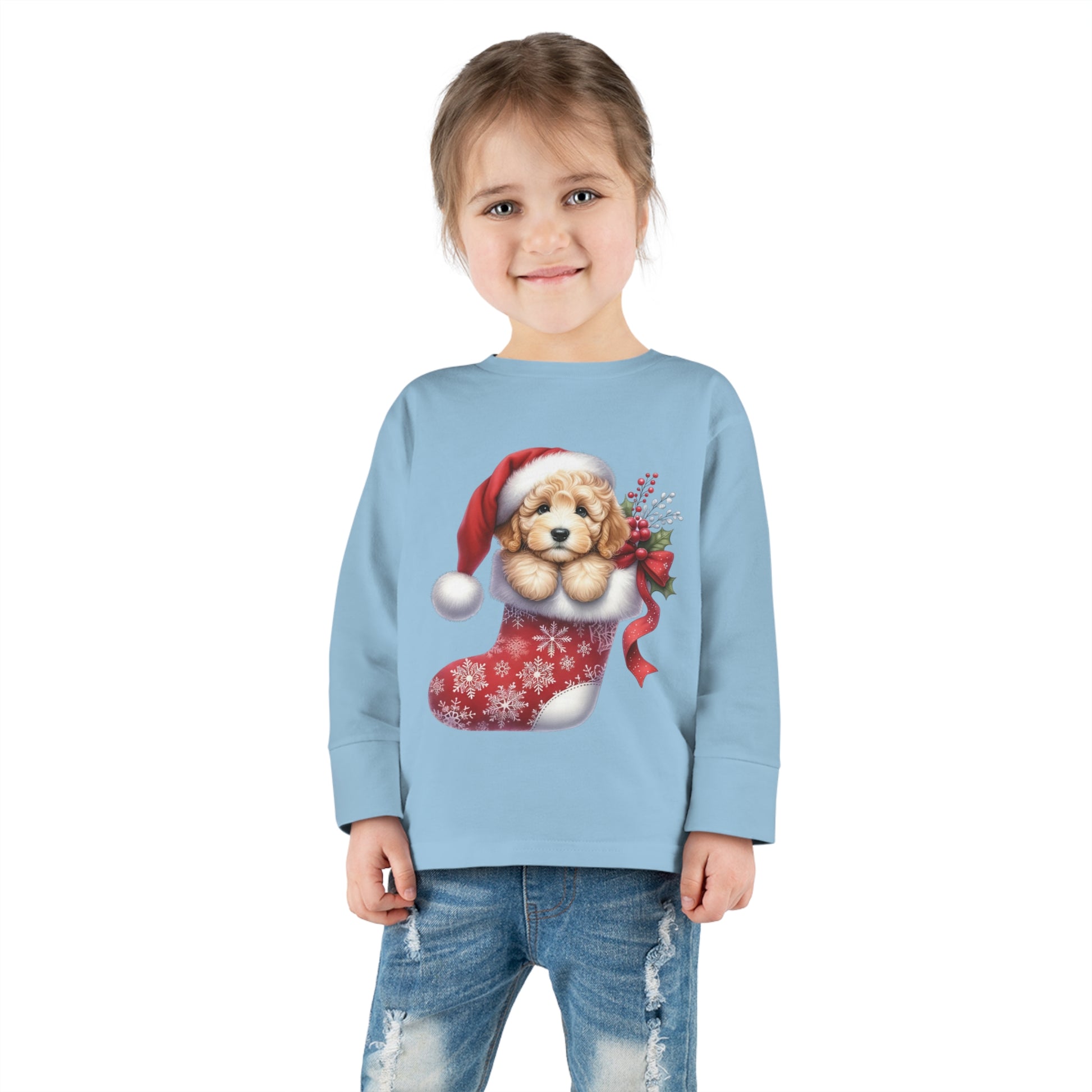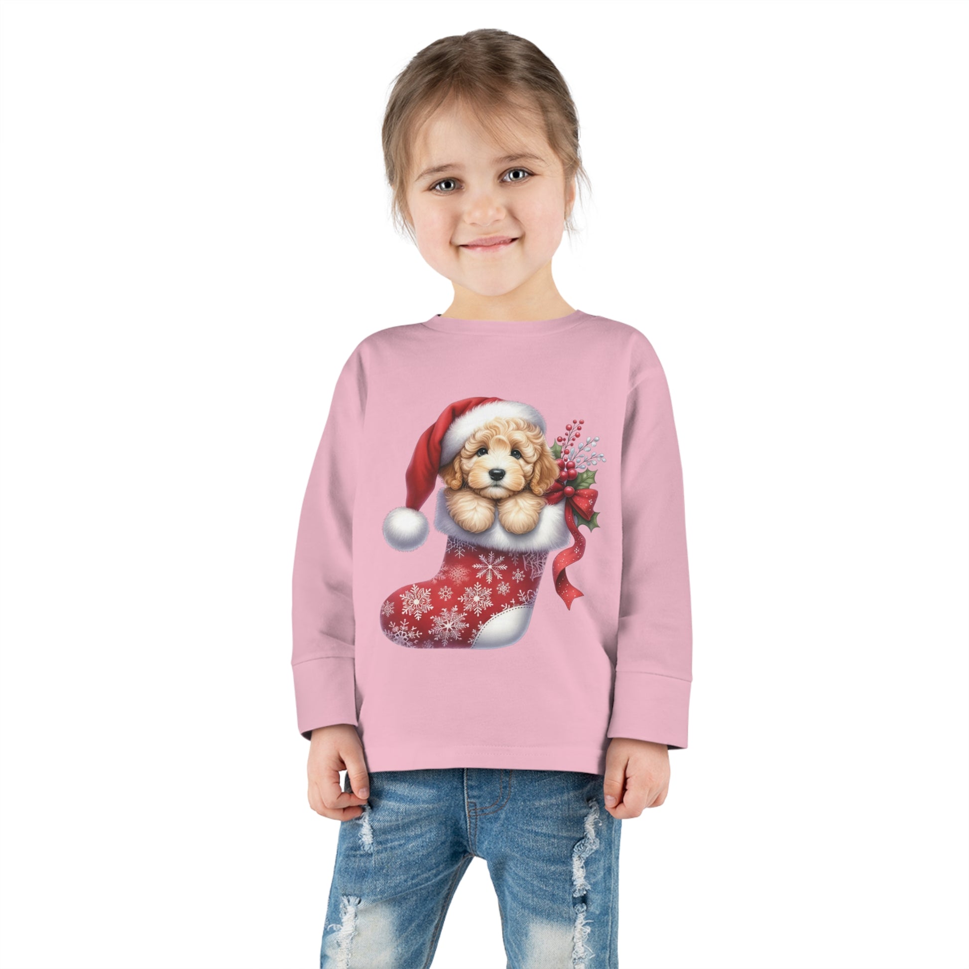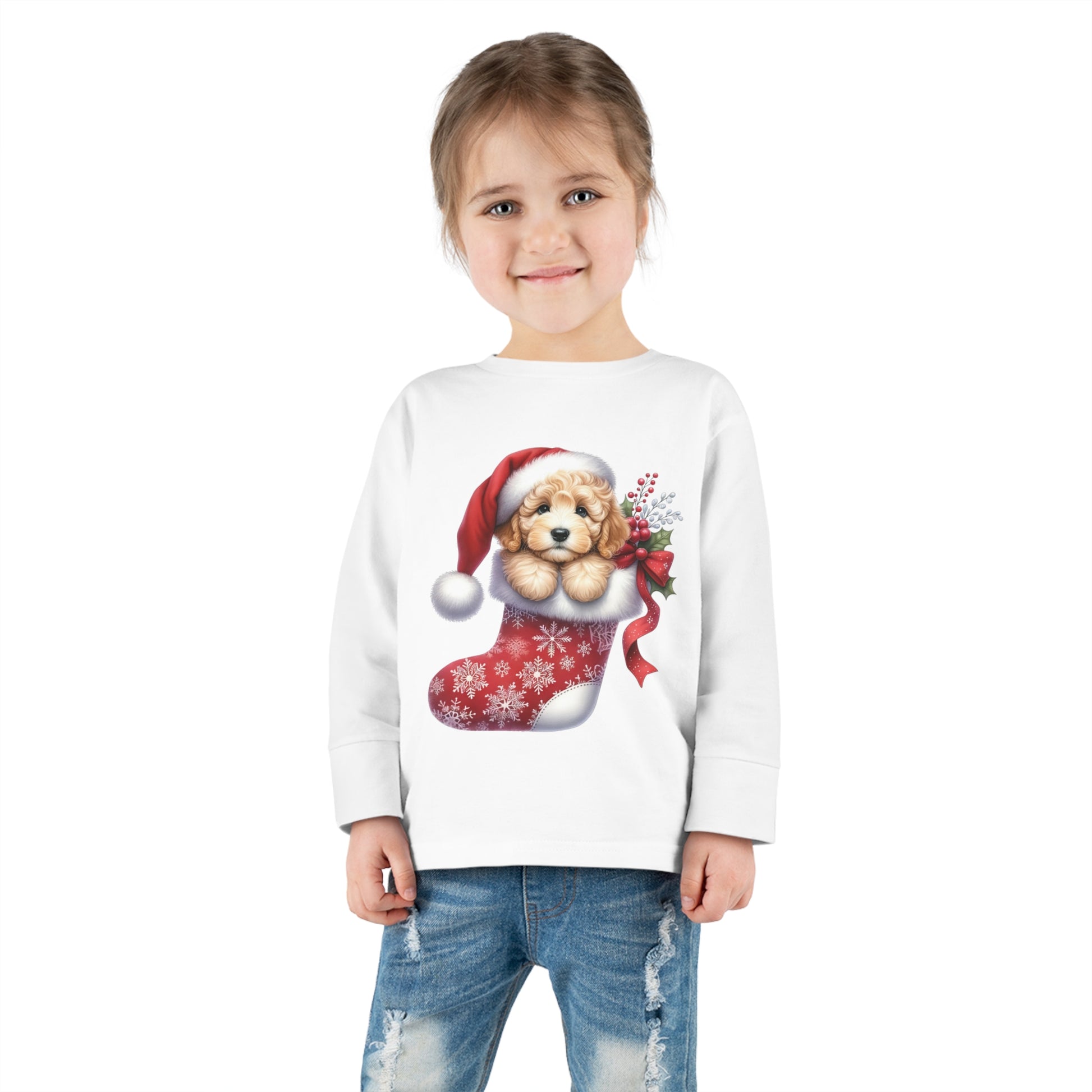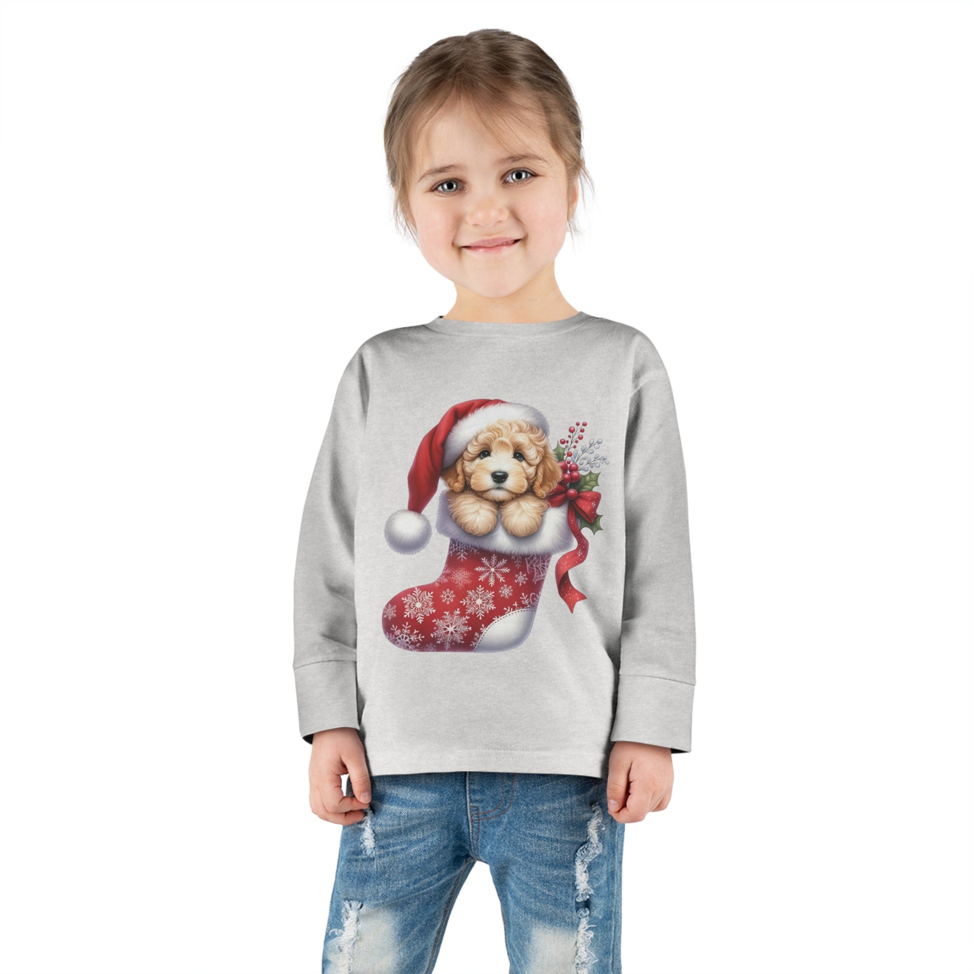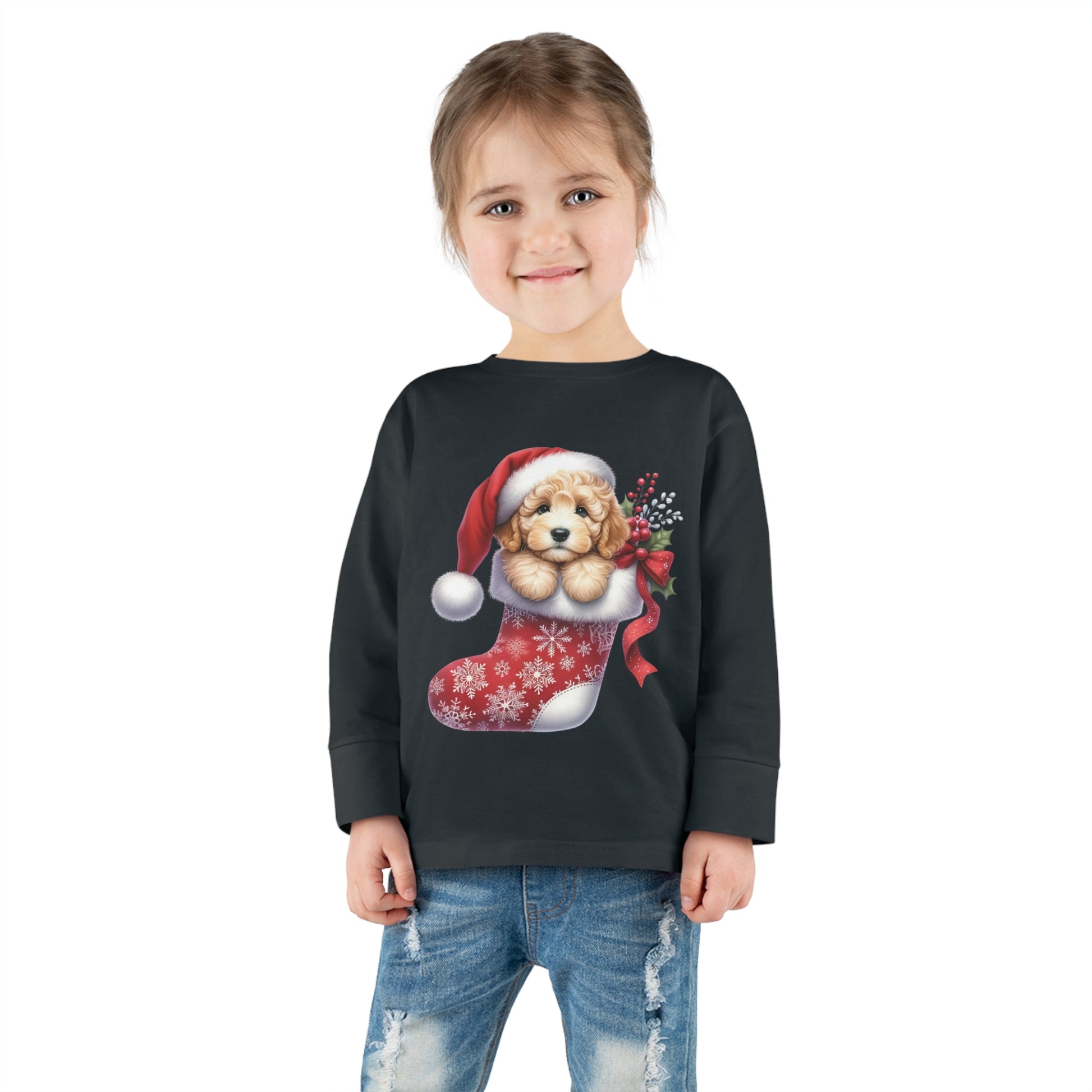 Doodle Puppy Christmas Stocking Toddler Long Sleeve Tee