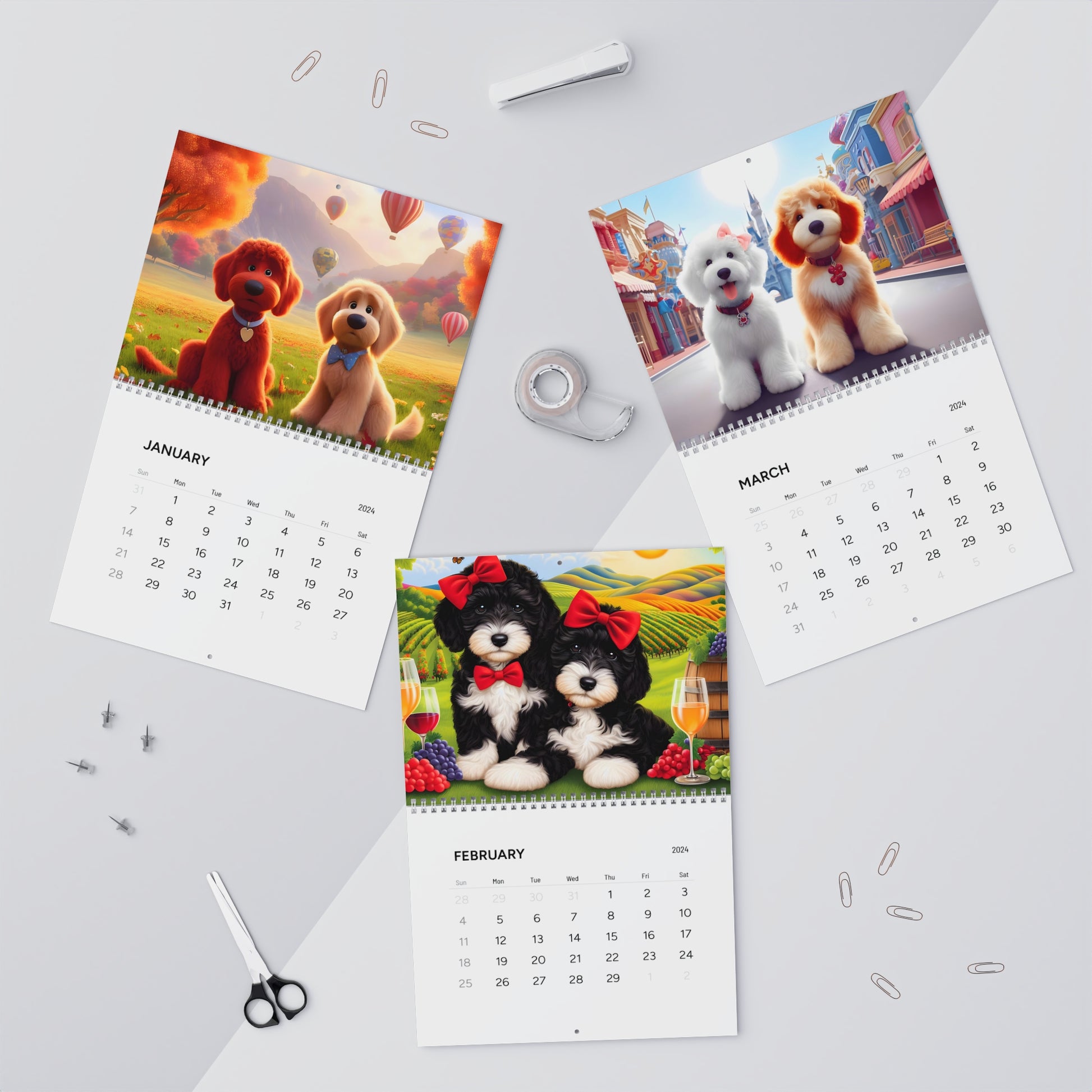 Help your customers mark the day in style with these wall calendars for 2024. Available in two sizes (11" x 8.5" and 14" x 11.5"), these calendars come with high quality paper stock and can accommodate your images in a large format, with vibrant colors. Each calendar comes with a spiral binding and a centered hole for wall hanging.