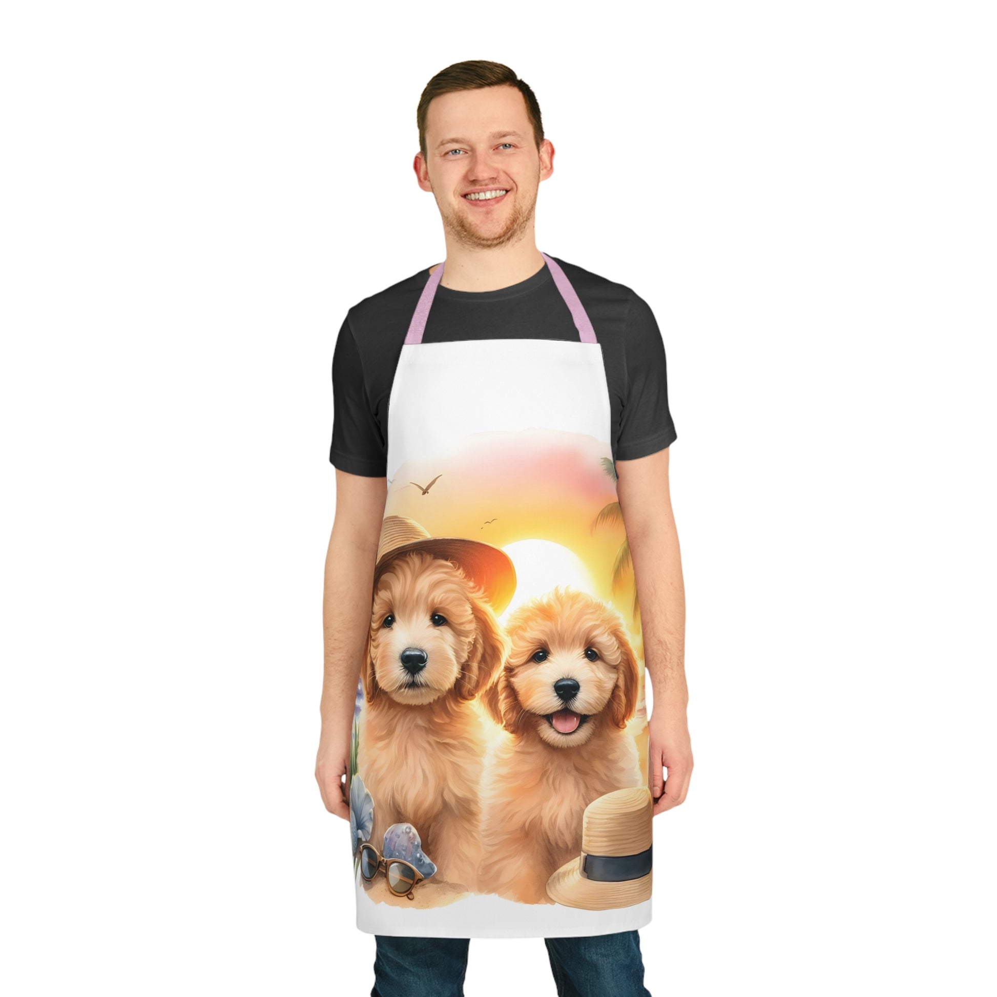 Let the home cook shine in the kitchen with a touch of character, the personalized chef's apron. This apron comes with a tie-back closure to fit securely, a sewn-in care label for guesswork-free maintenance, and a highly durable 100% polyester canvas construction for top-tier durability. Comes with black, beige, blue, pink, or white strap color, and in one size: 31.5" x 25.6".