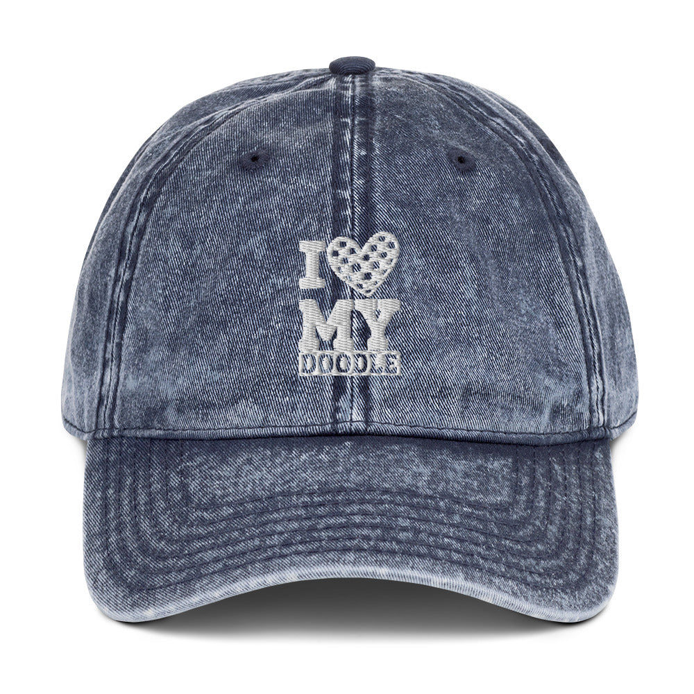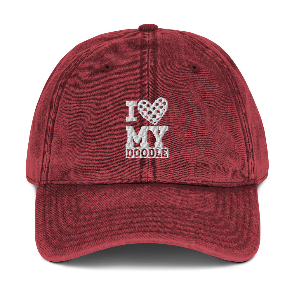 I Love My Doodle - Paw Print on Back - Embroidered Vintage Cotton Twill Cap