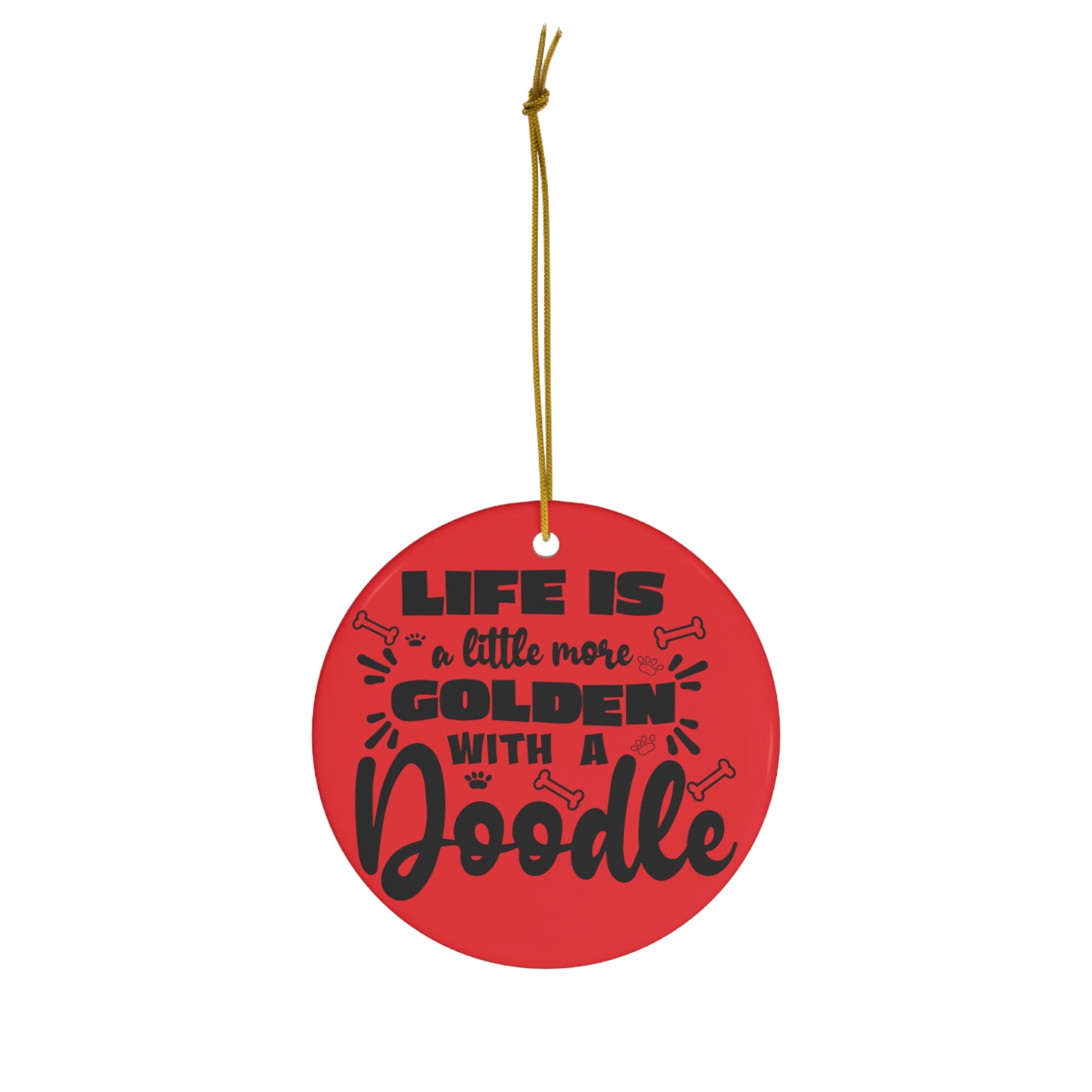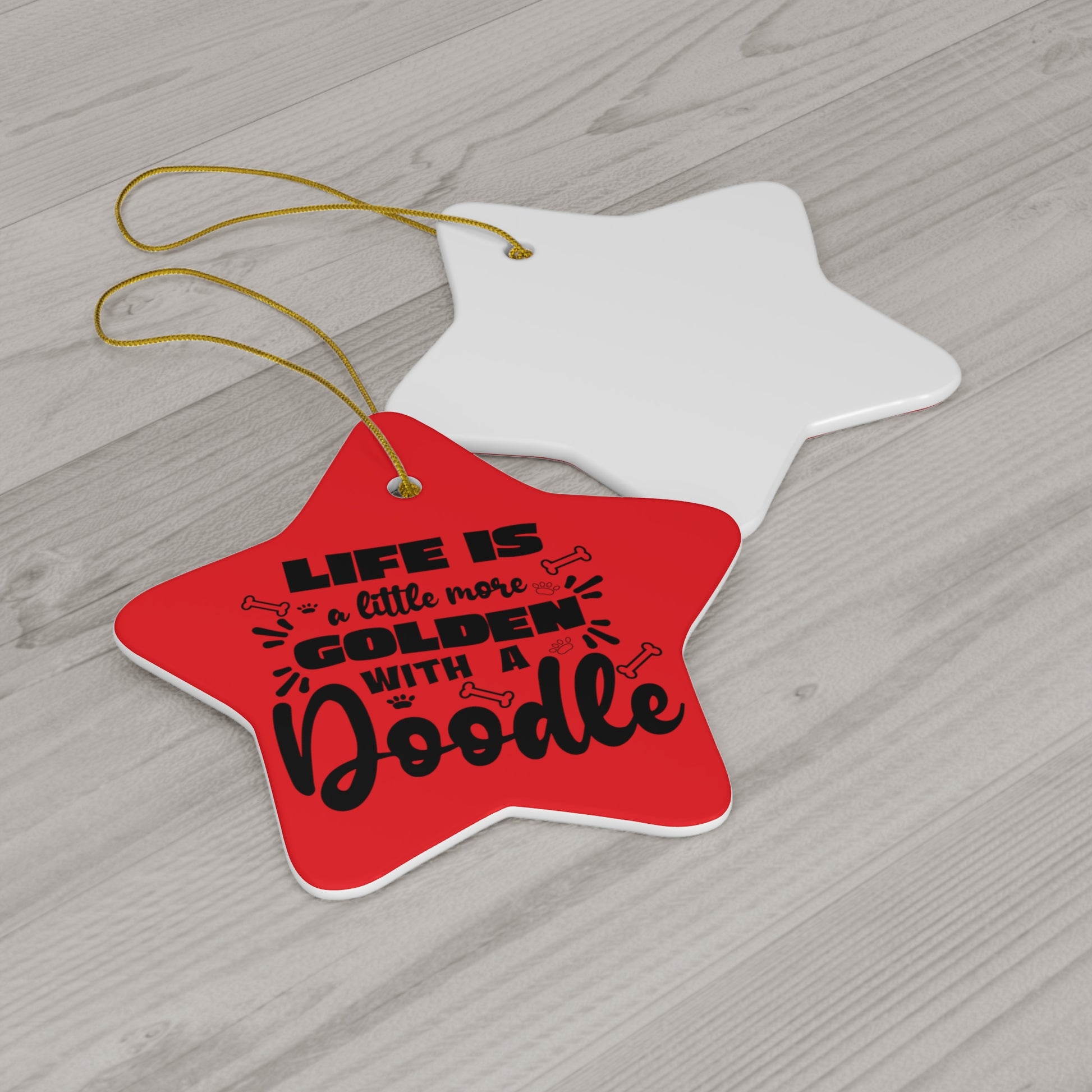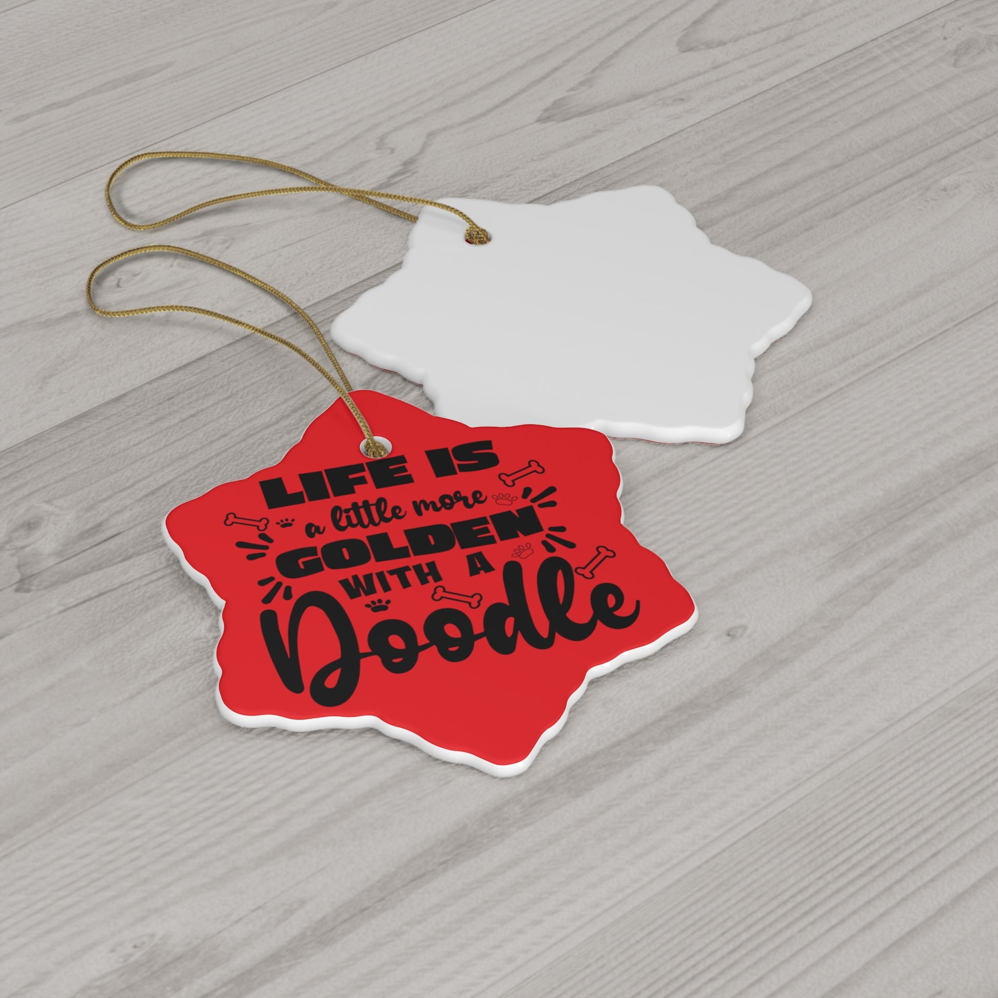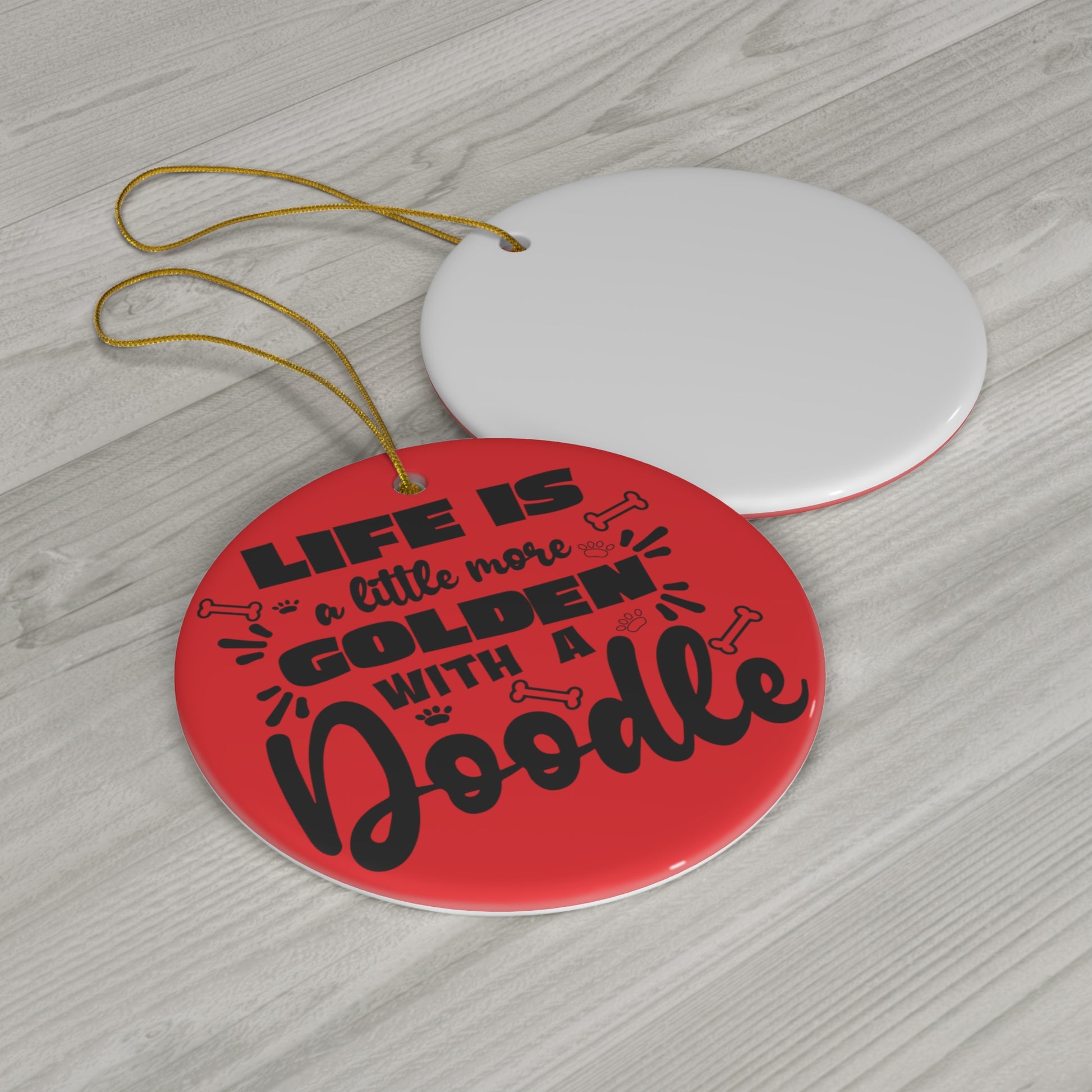 Life is a little more Golden w/a Doodle Ceramic Ornament, 4 Shapes