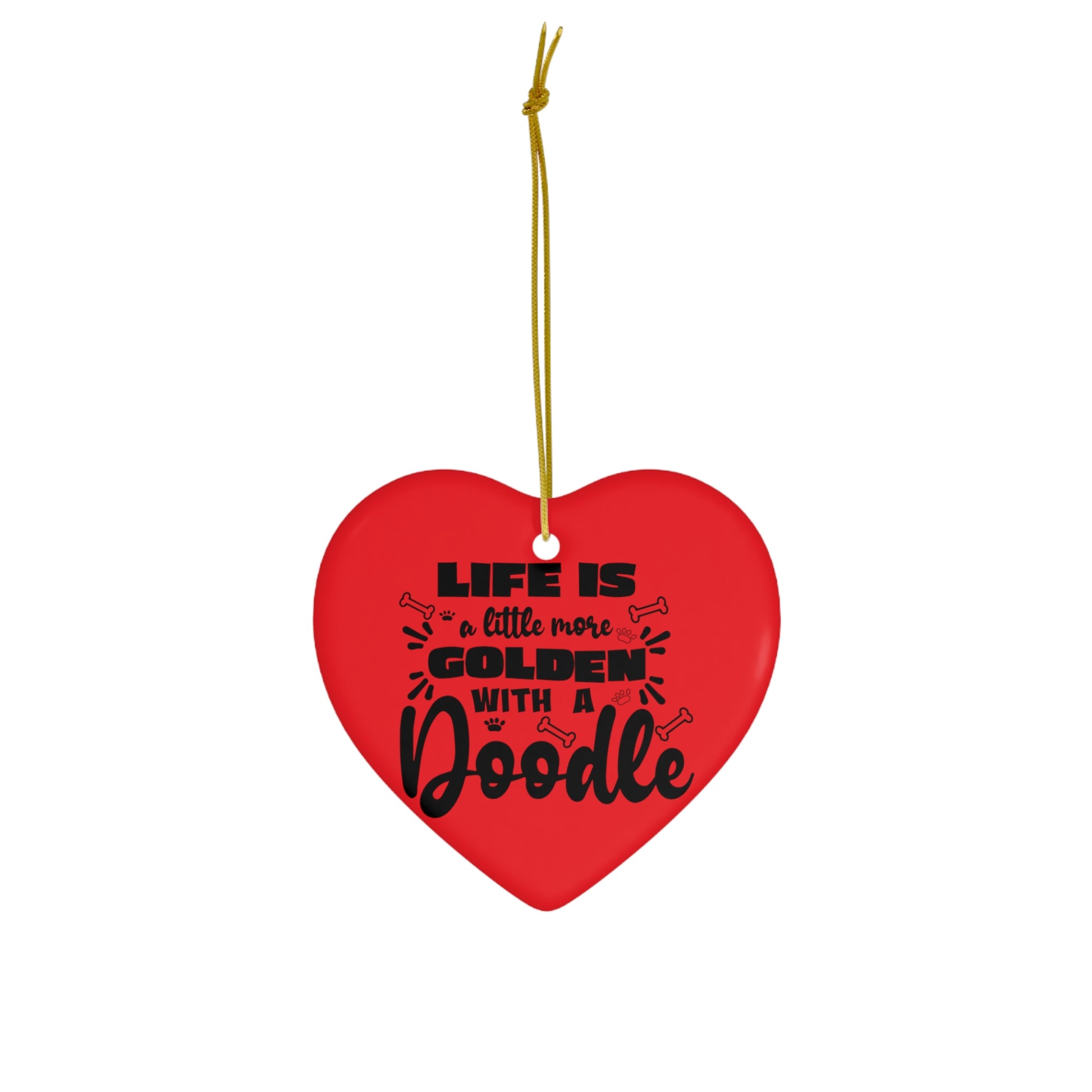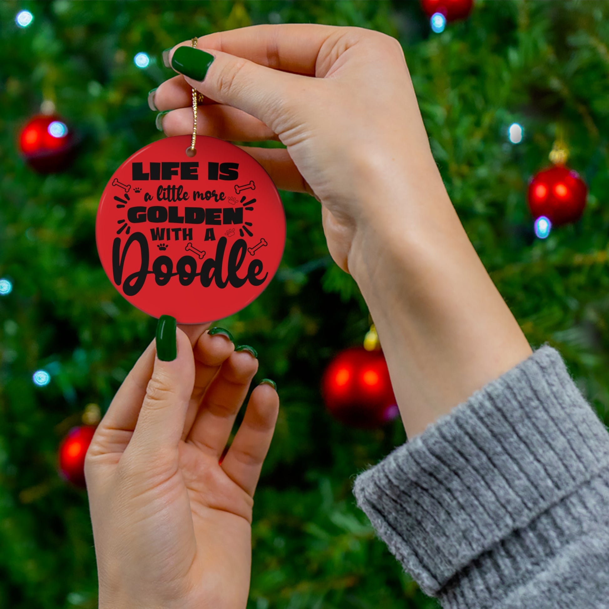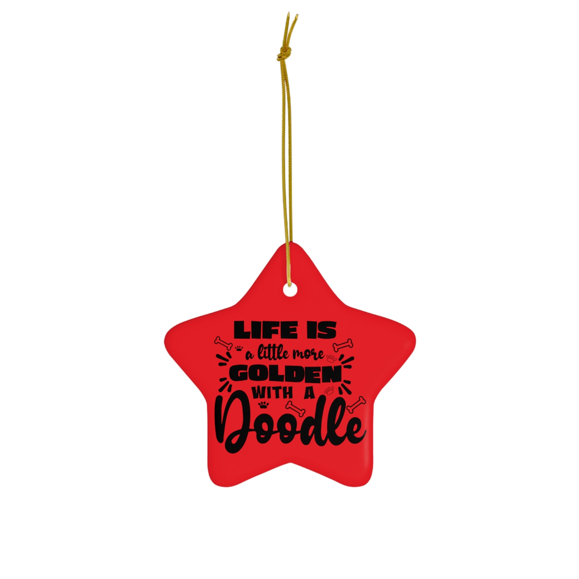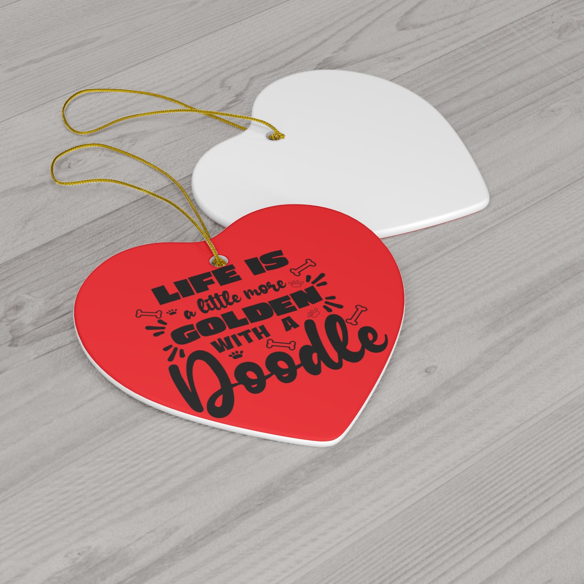 Life is a little more Golden w/a Doodle Ceramic Ornament, 4 Shapes