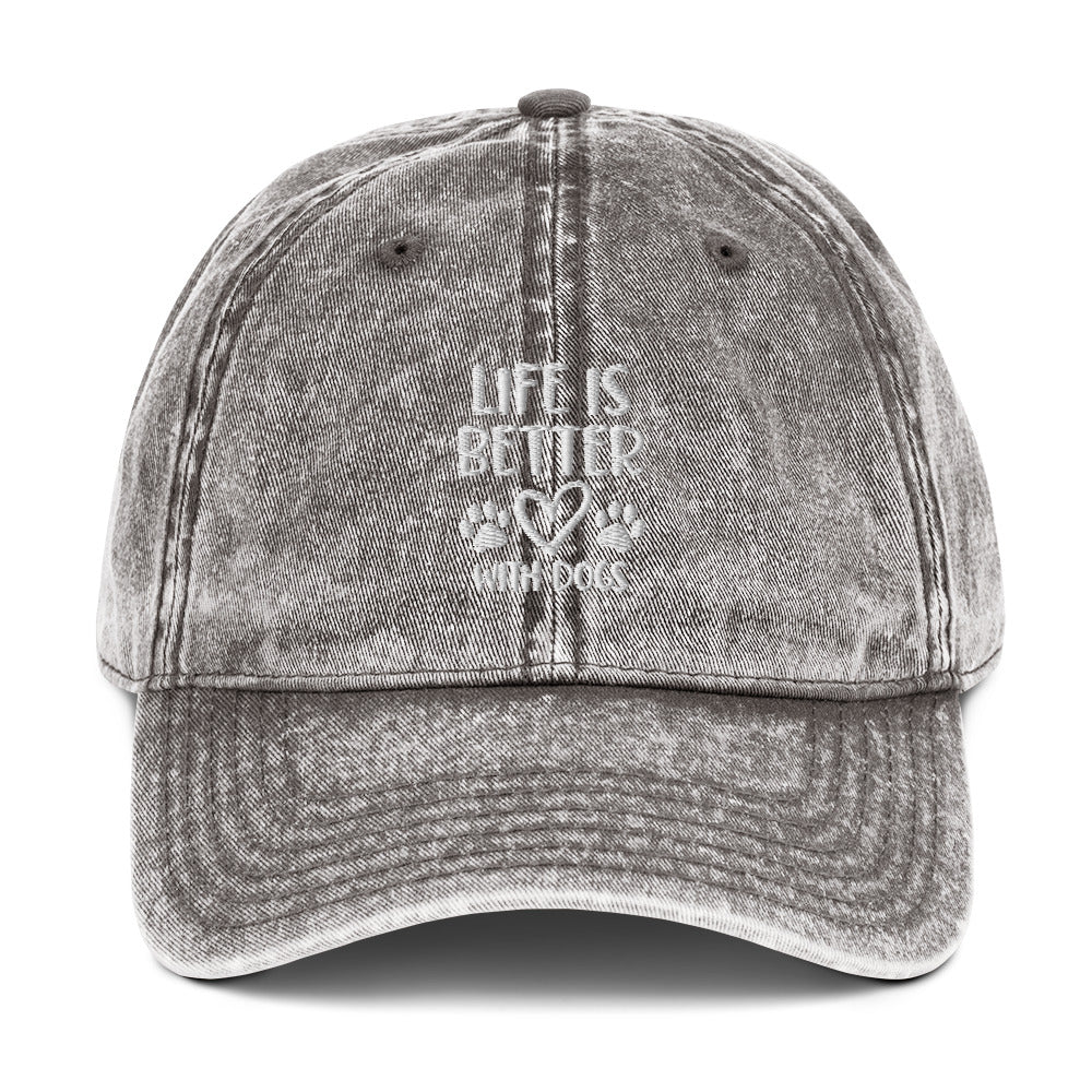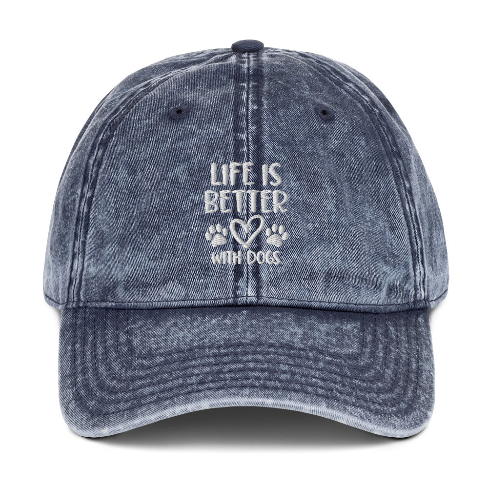 Life is Better with Dogs - Paw Print on Back - Embroidered Vintage Cotton Twill Cap