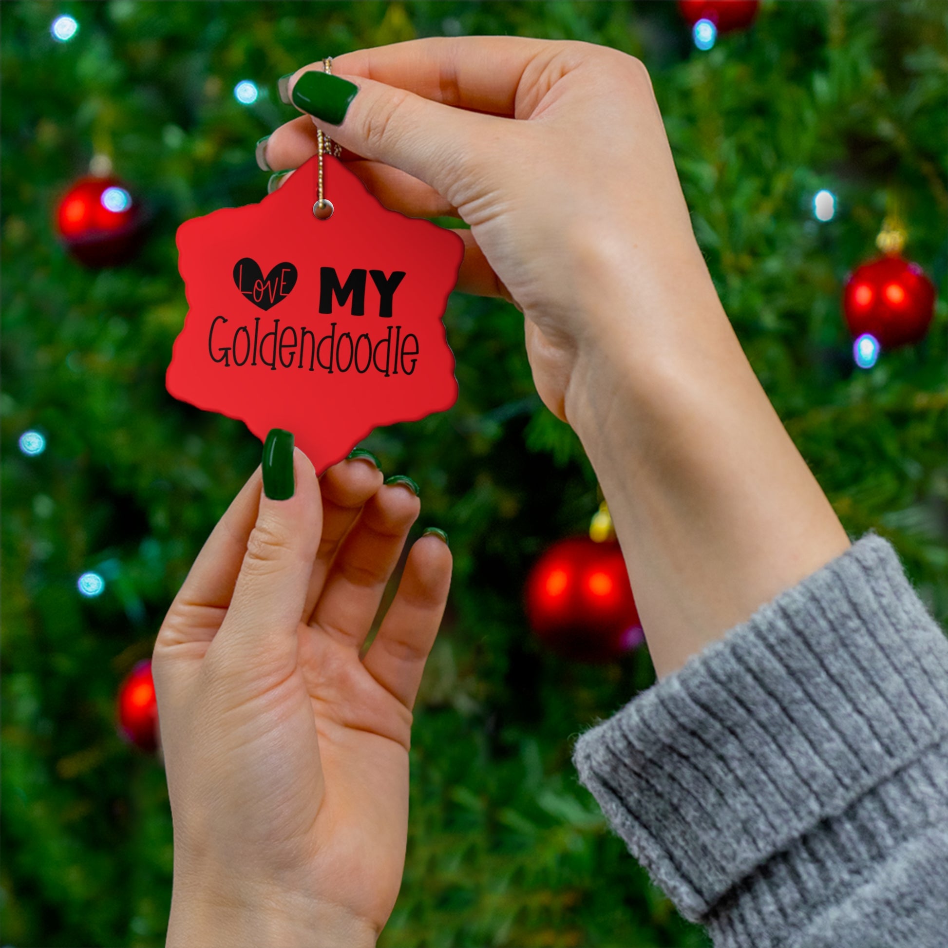 Love my Goldendoodle Ceramic Ornament, 4 Shapes