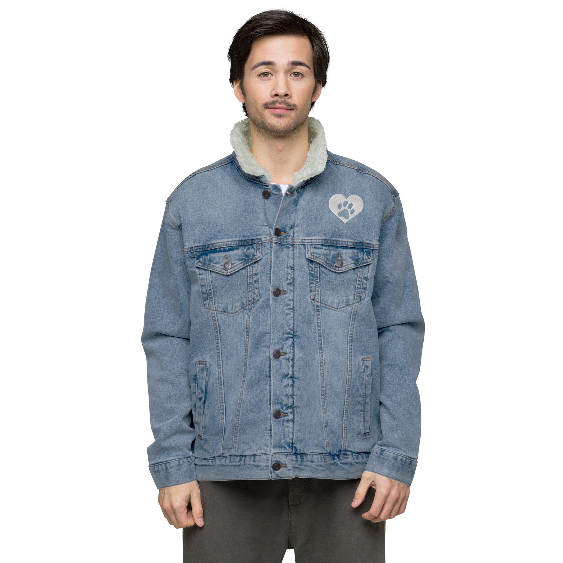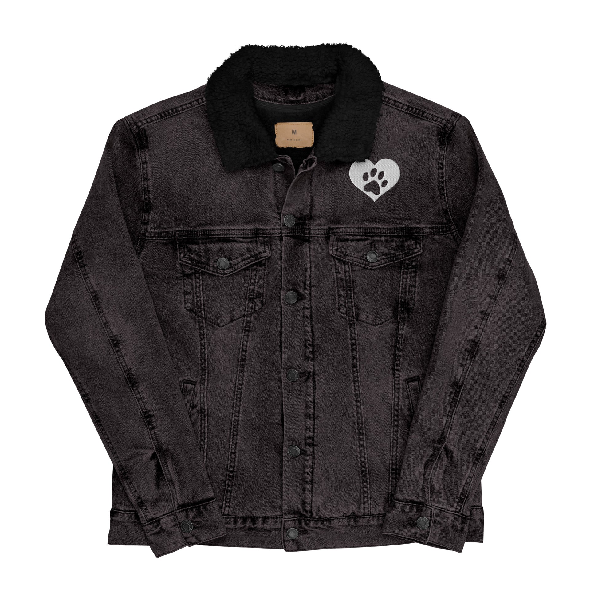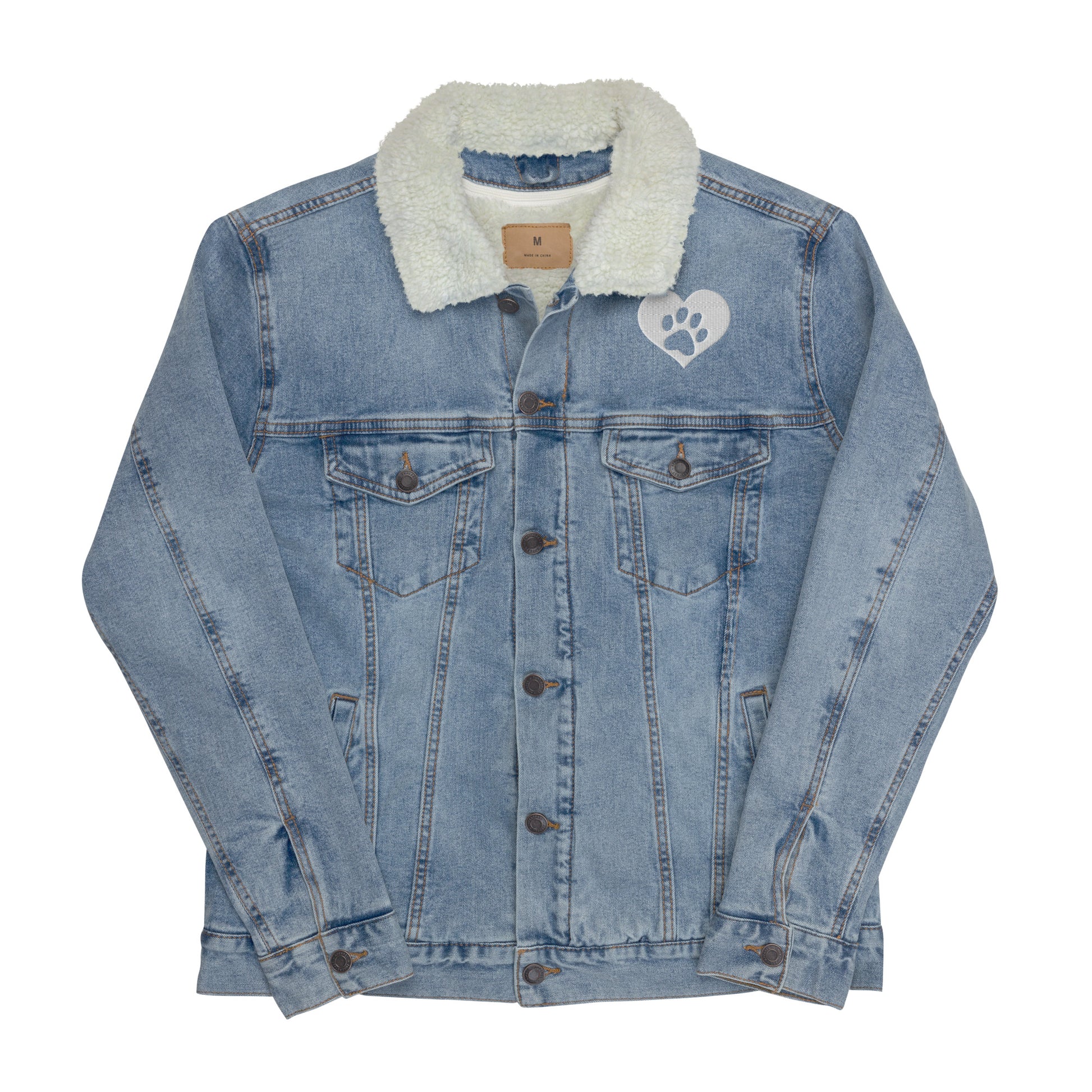 Paw Print Heart Embroidered Unisex Denim Sherpa Jacket