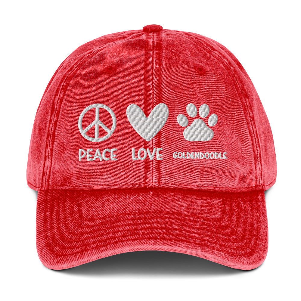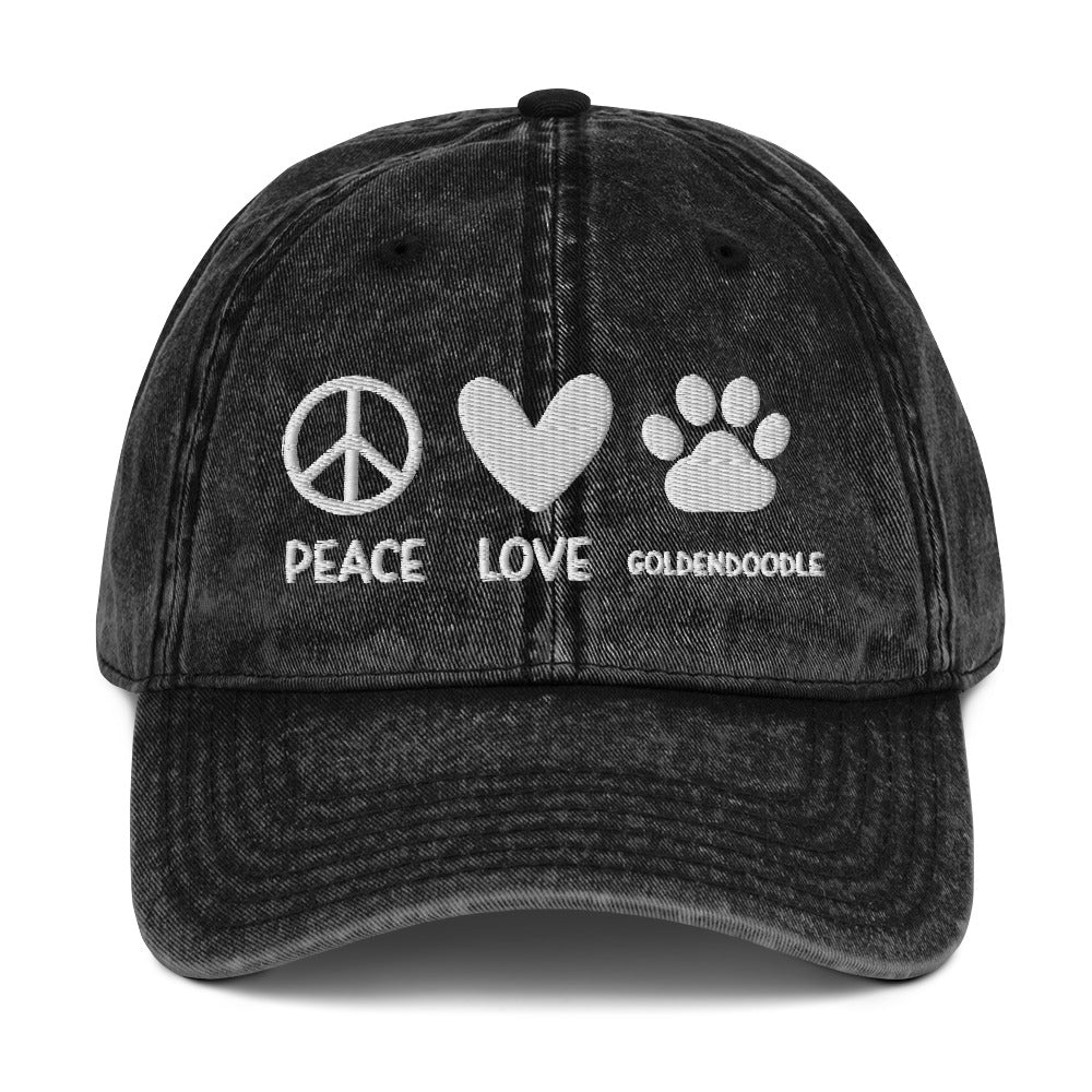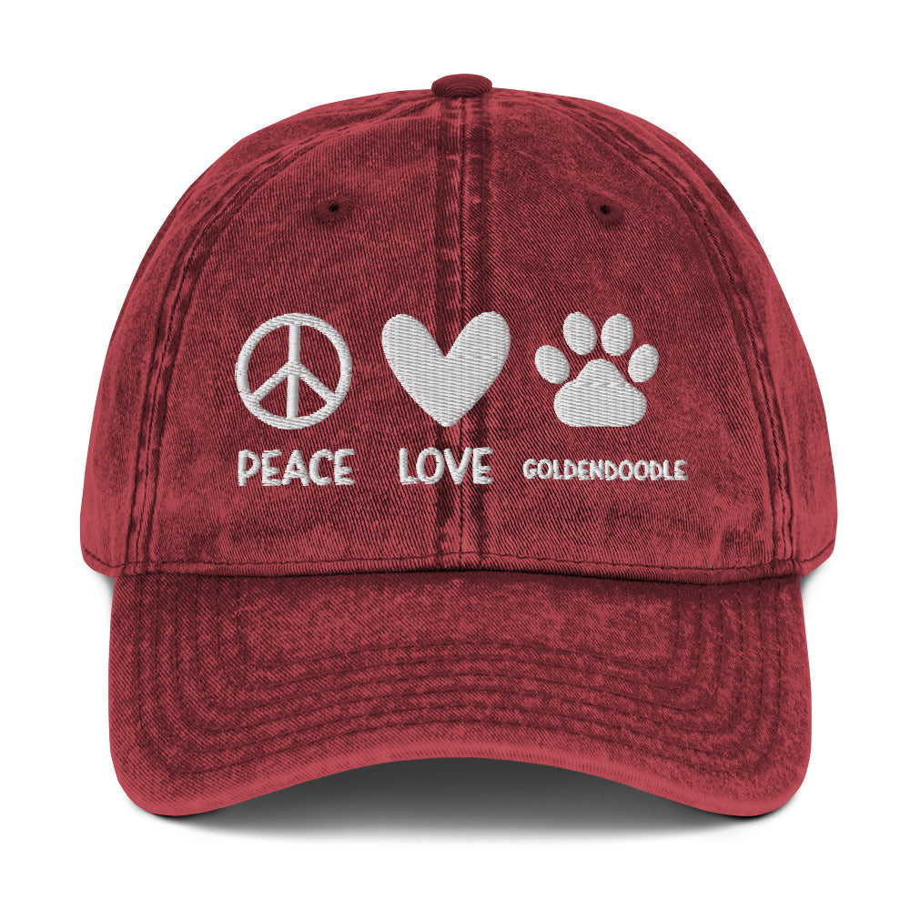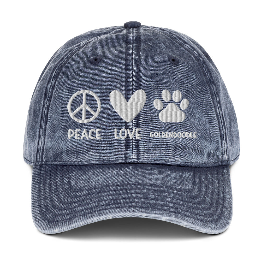 Peace Love Goldendoodle Embroidered Vintage Cotton Twill Cap