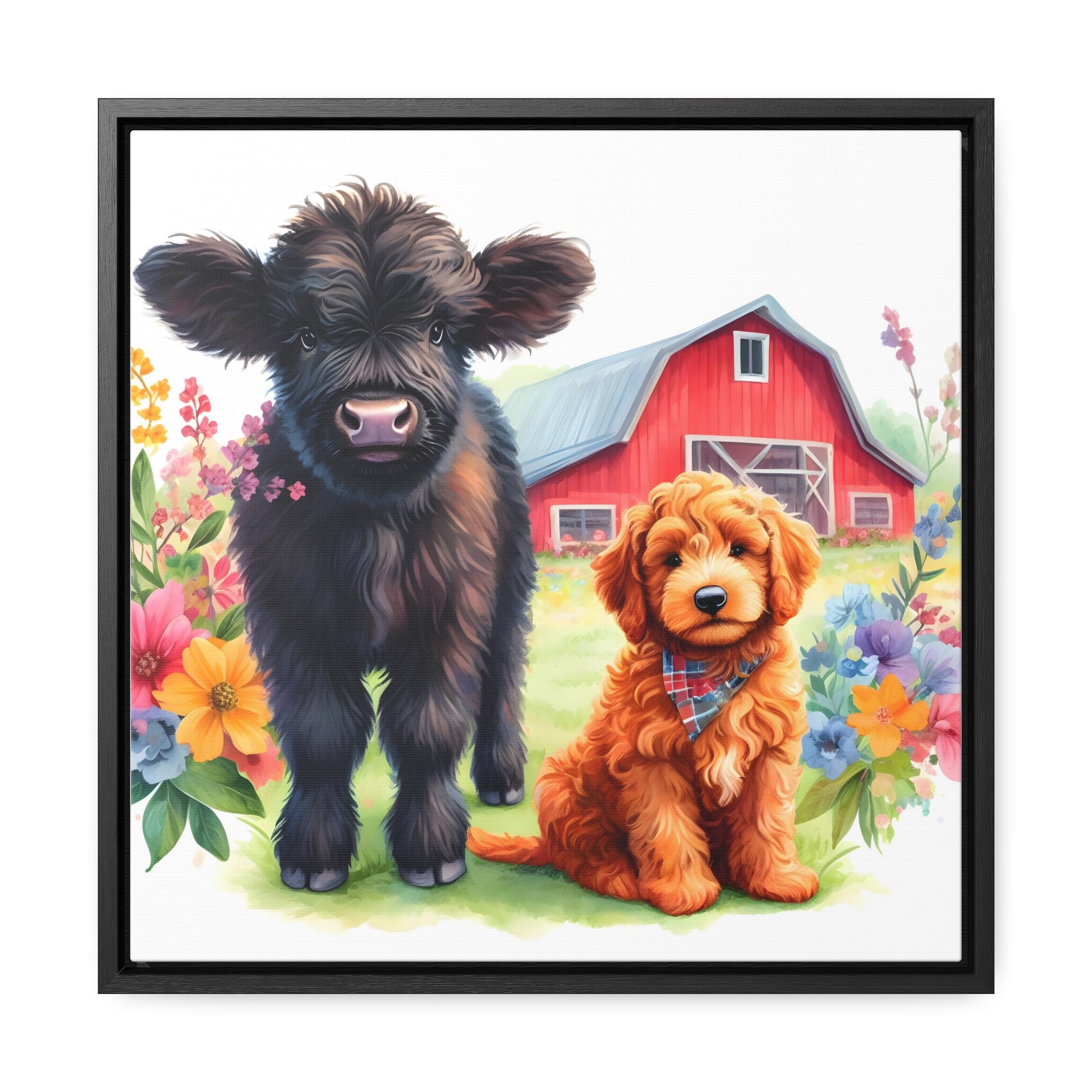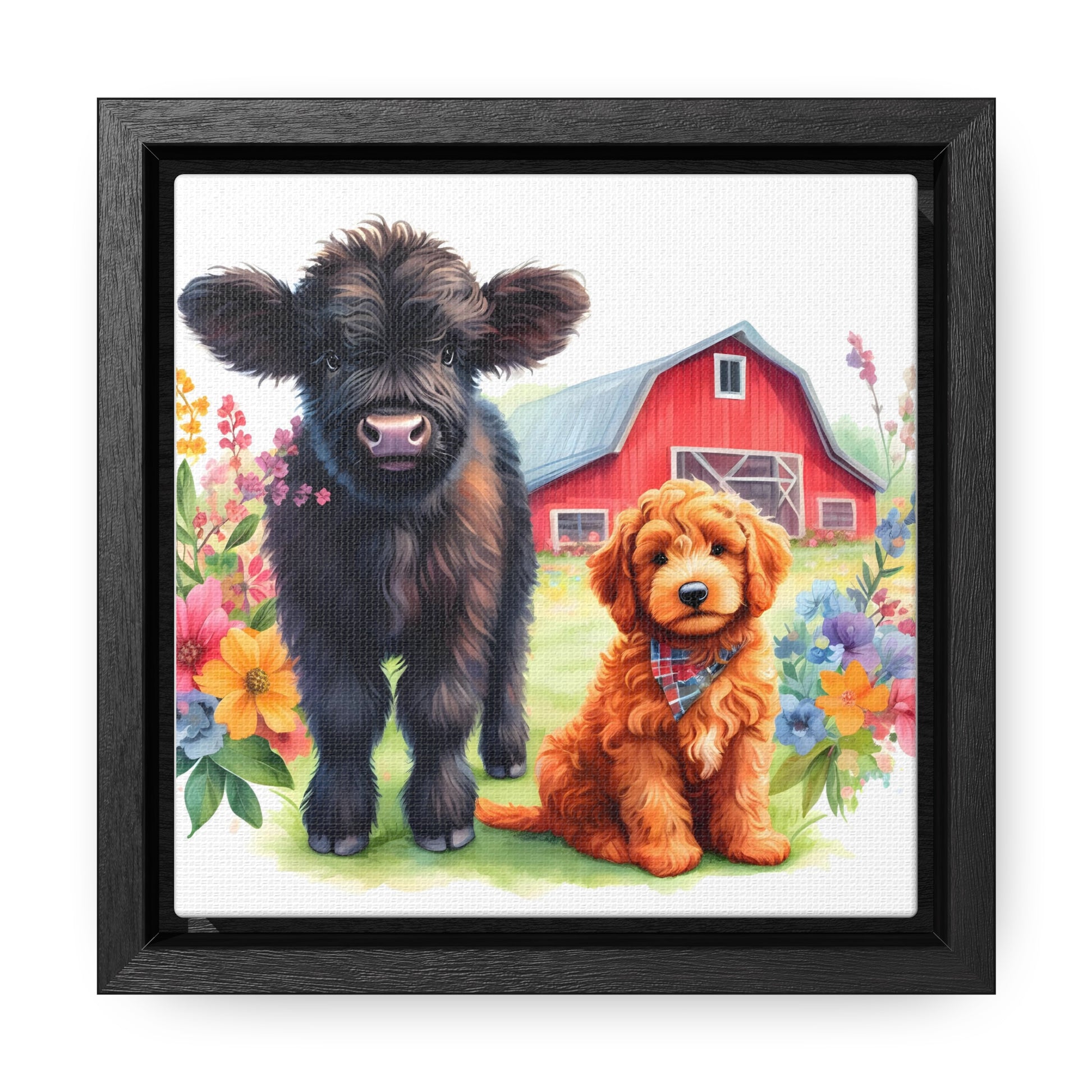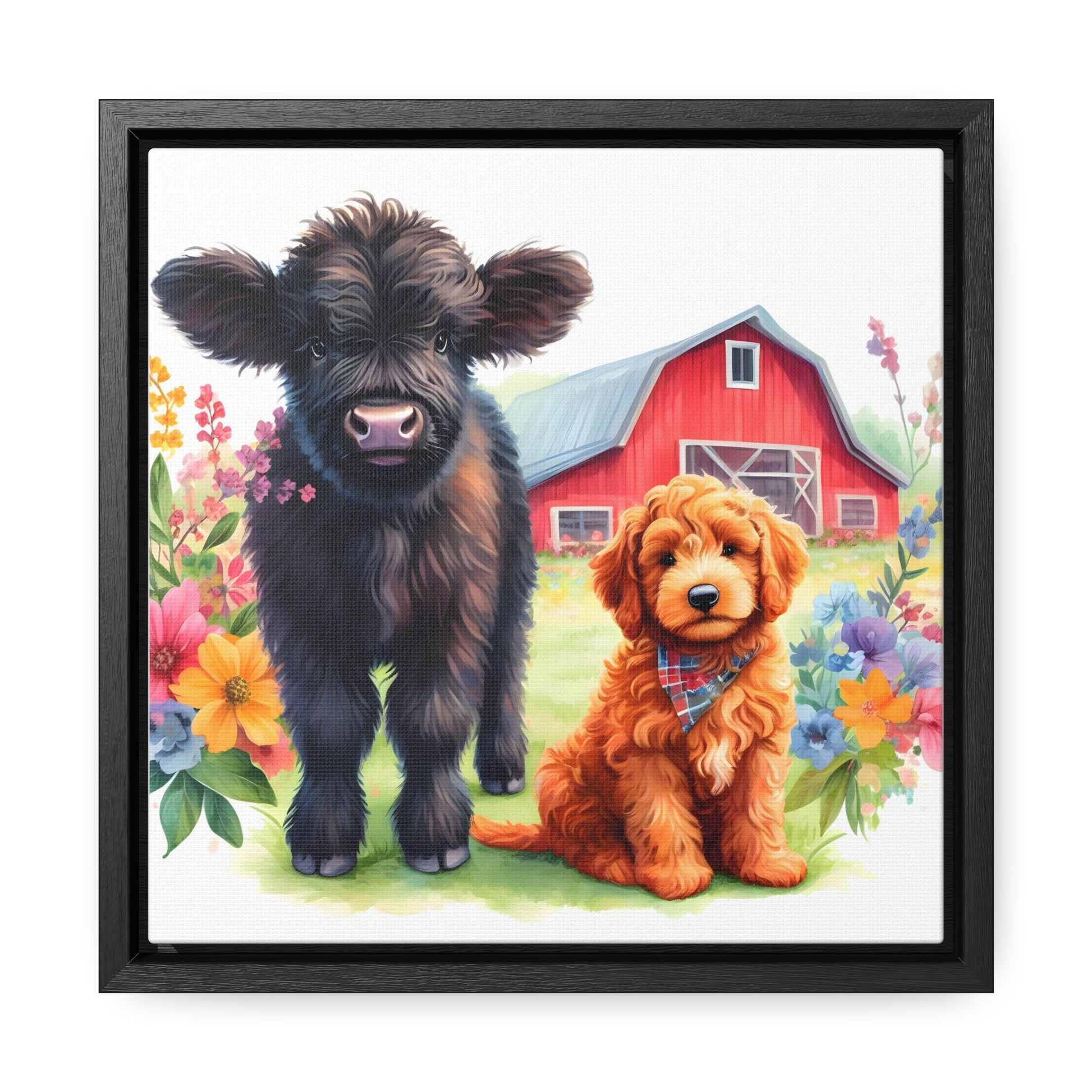 Scottish Highland Cow Doodle Gallery Canvas Picture Square Wood Frame - Nice!