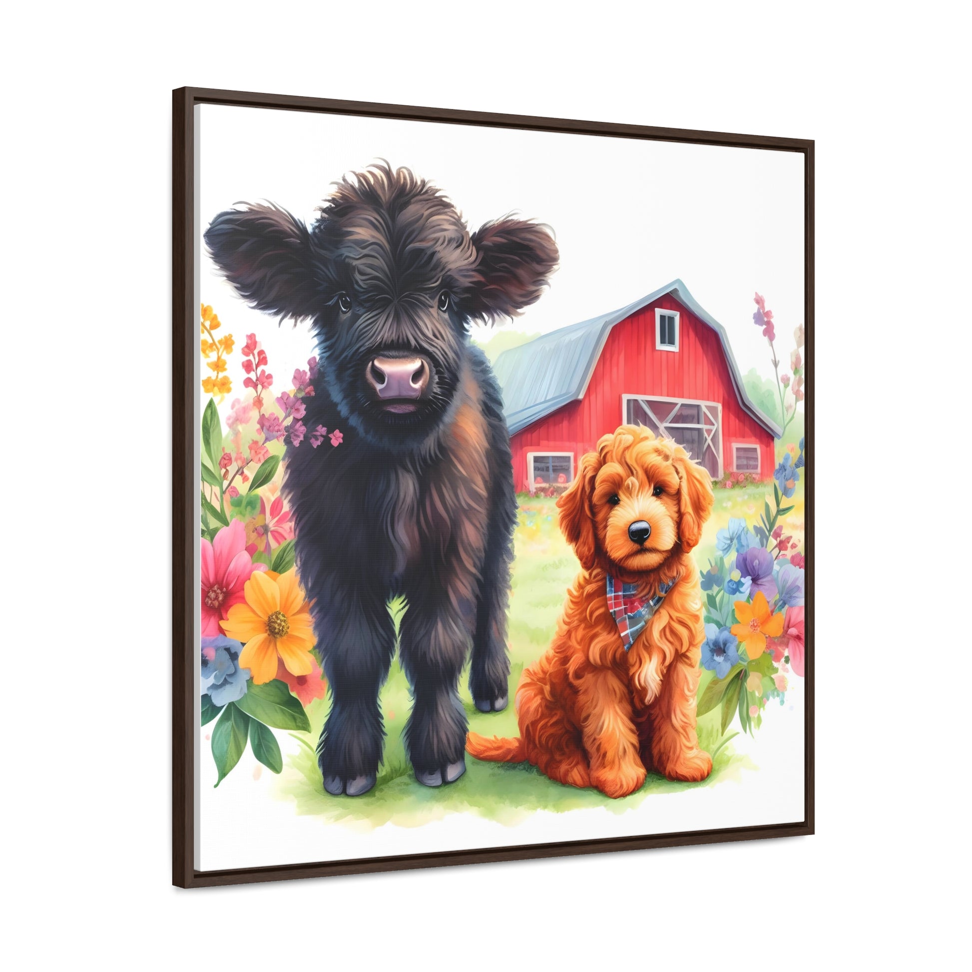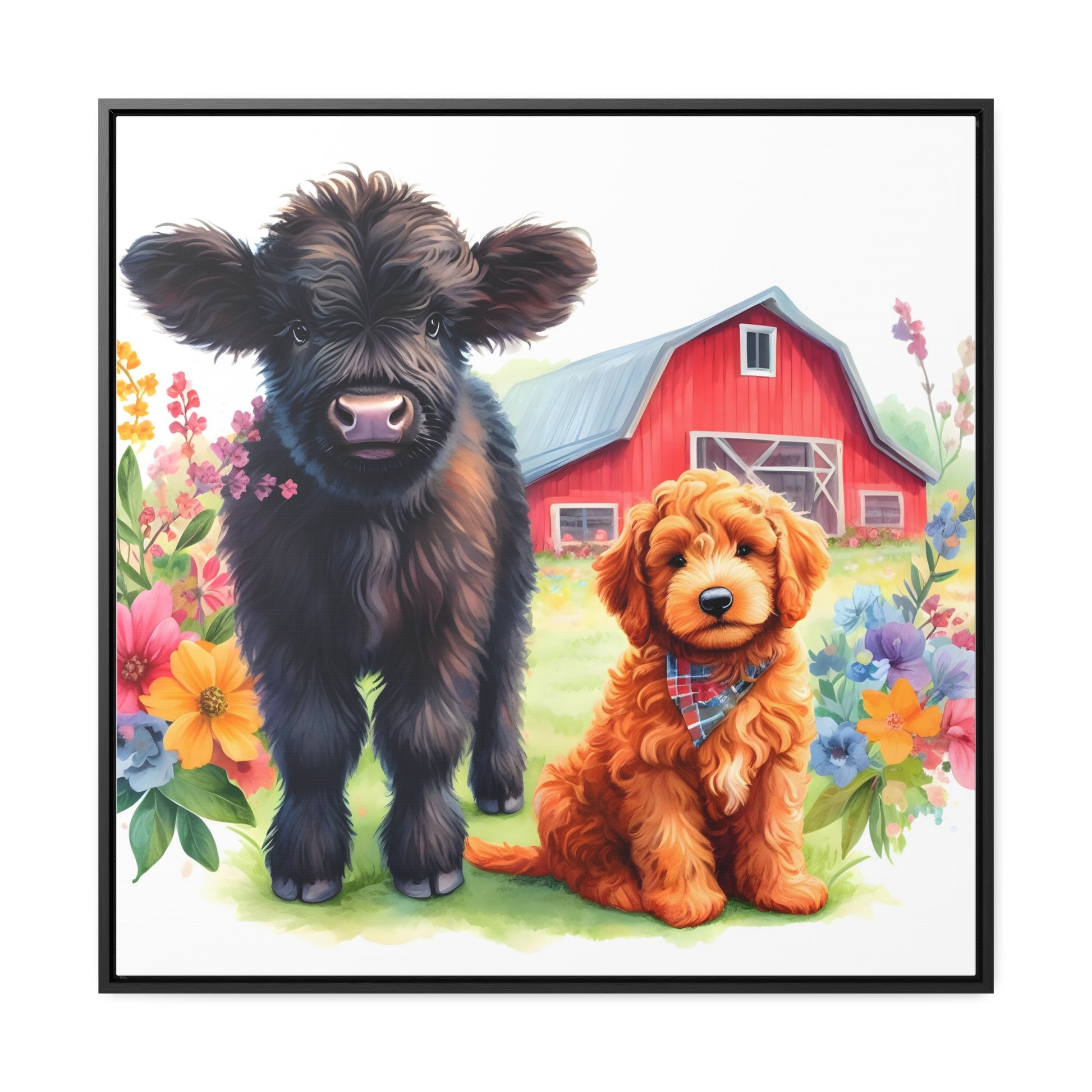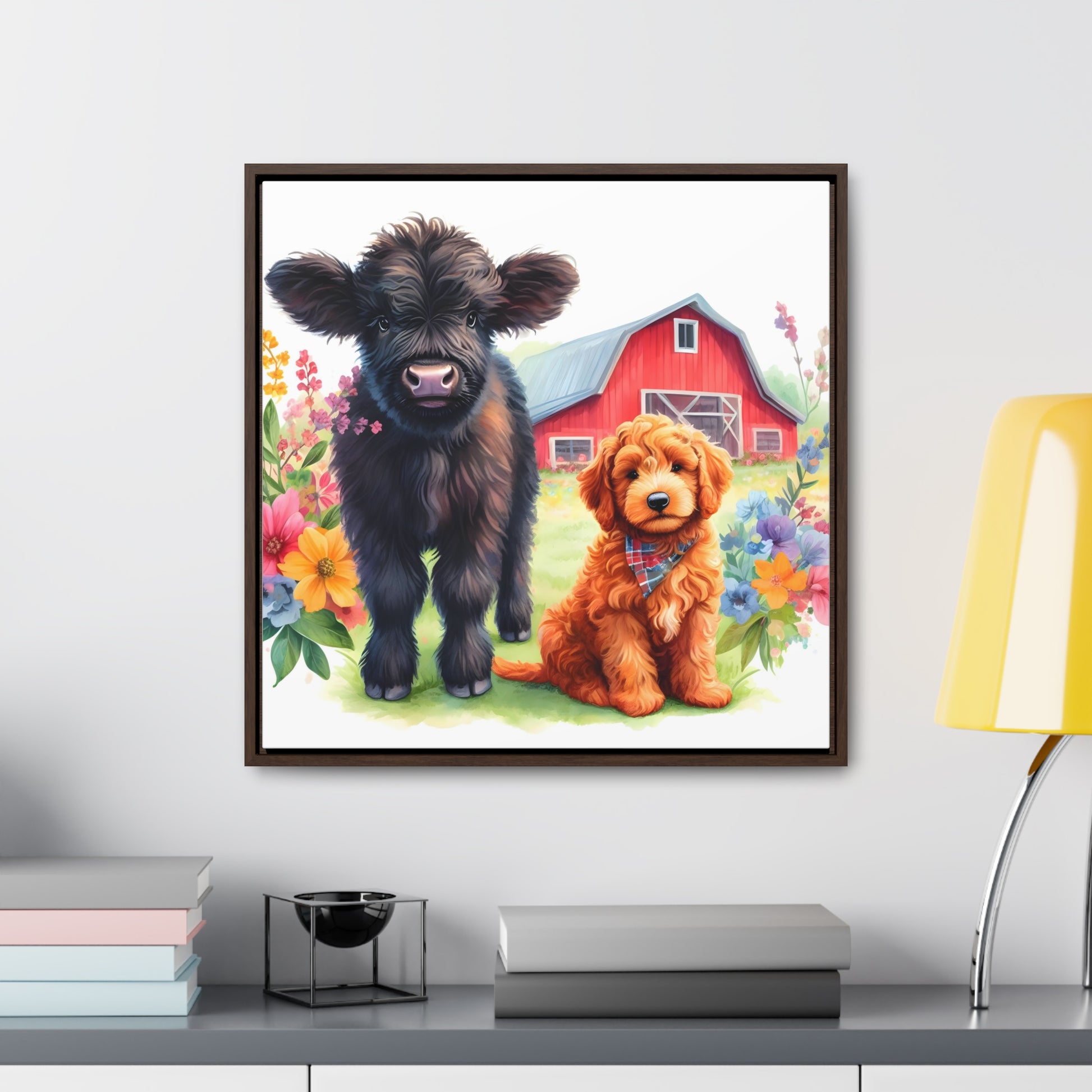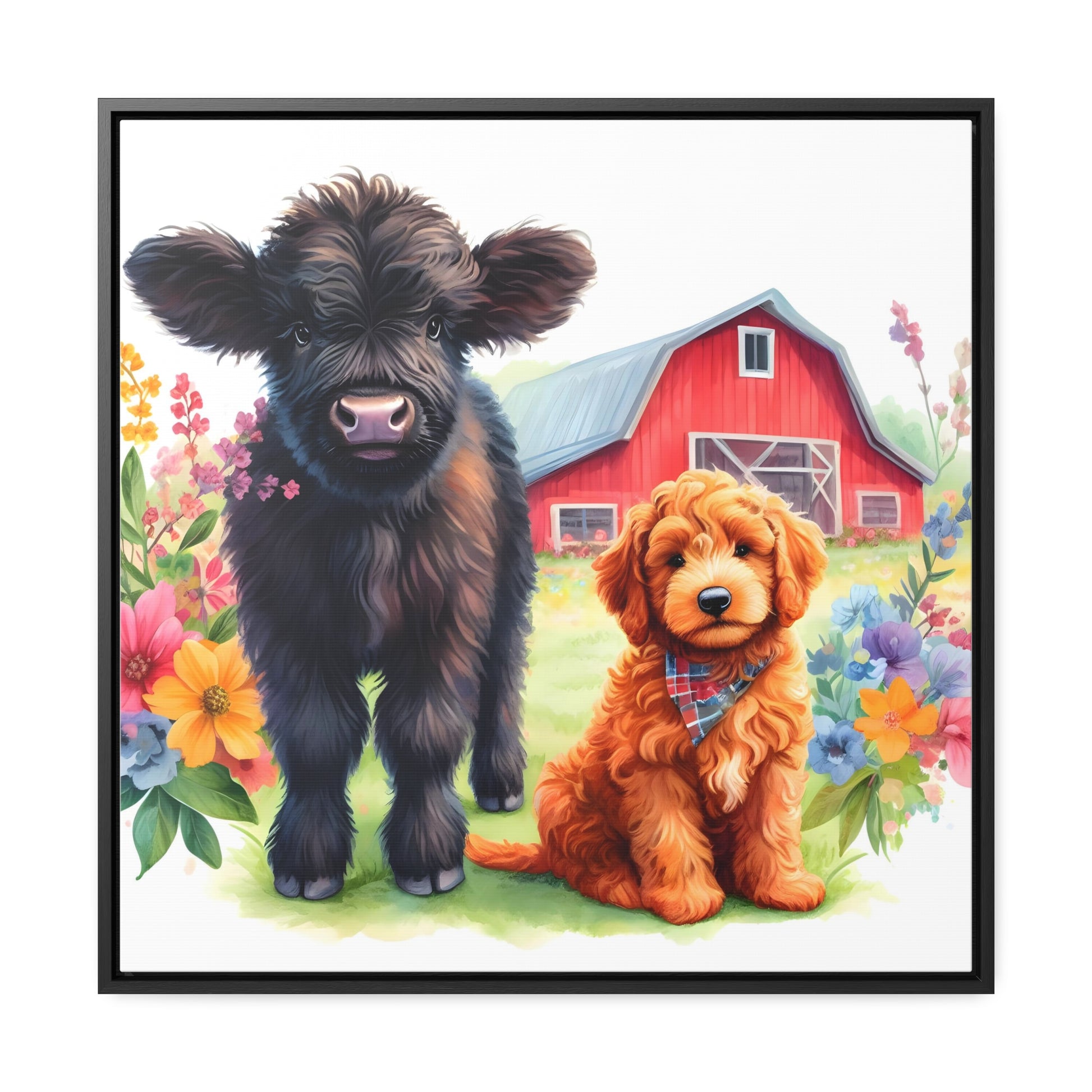Scottish Highland Cow Doodle Gallery Canvas Picture Square Wood Frame - Nice!